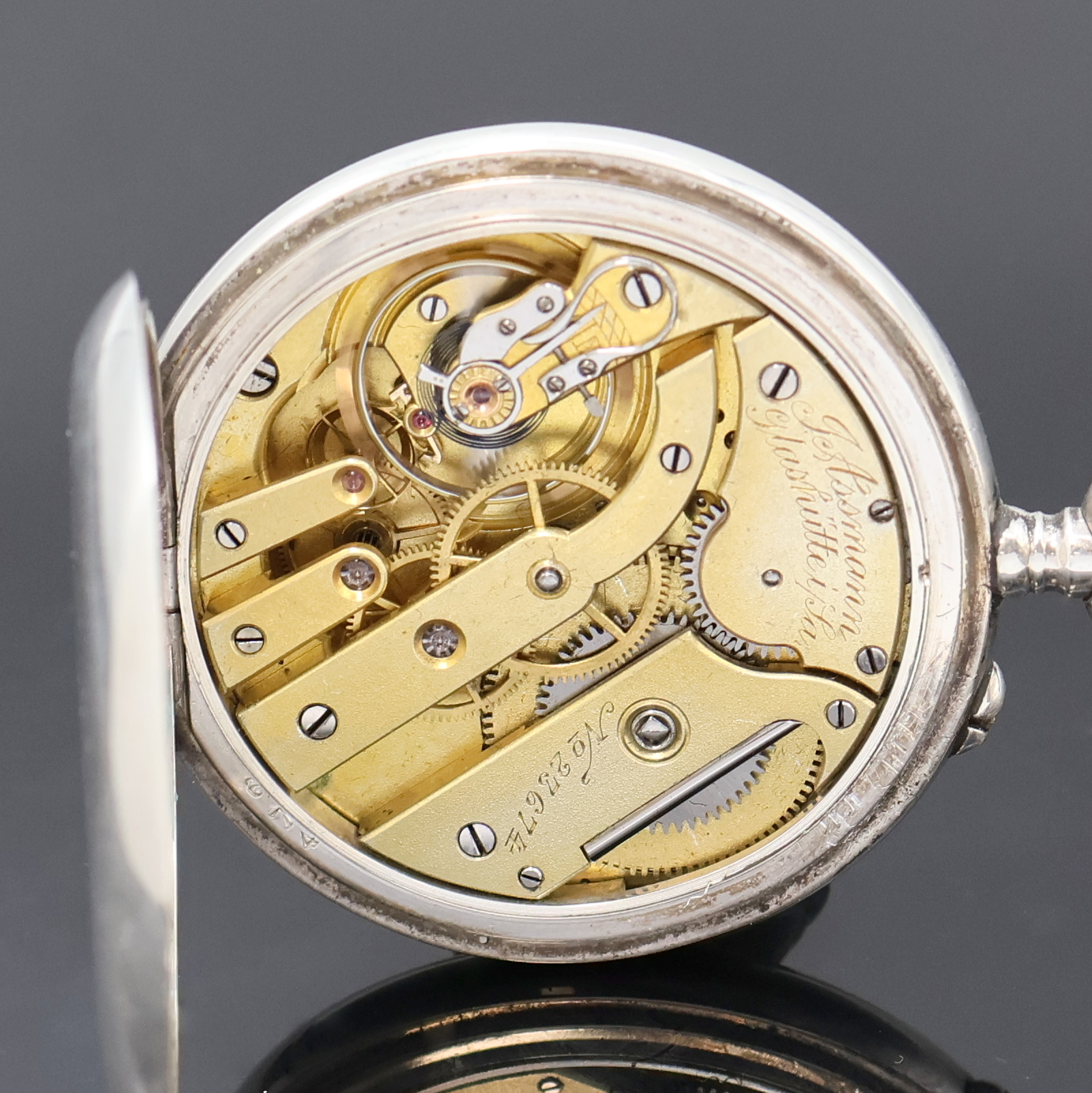J.ASSMANN Glashütte offene Taschenuhr in 900er Silber, Deutschland um 1920, glattes