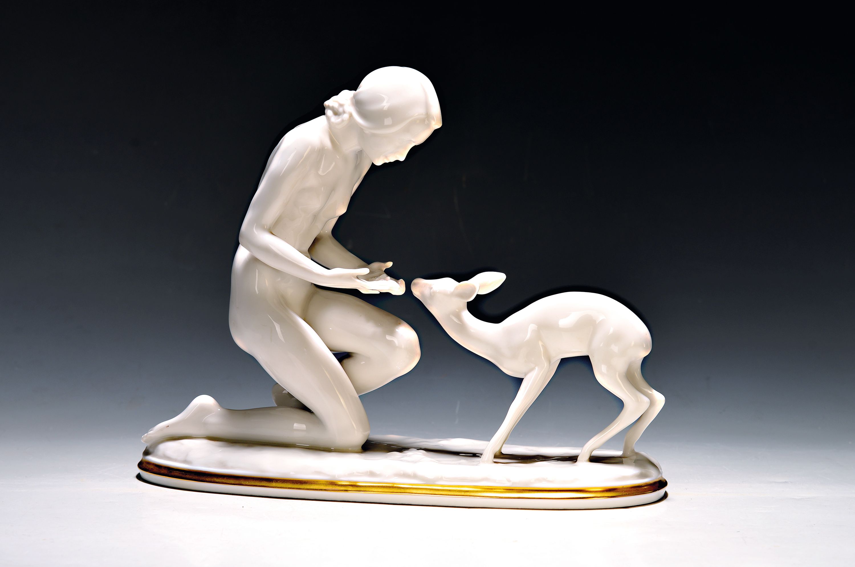 1960er Jahre, Porzellan, Sockel mit Goldrand, signiert, H. 25 cm