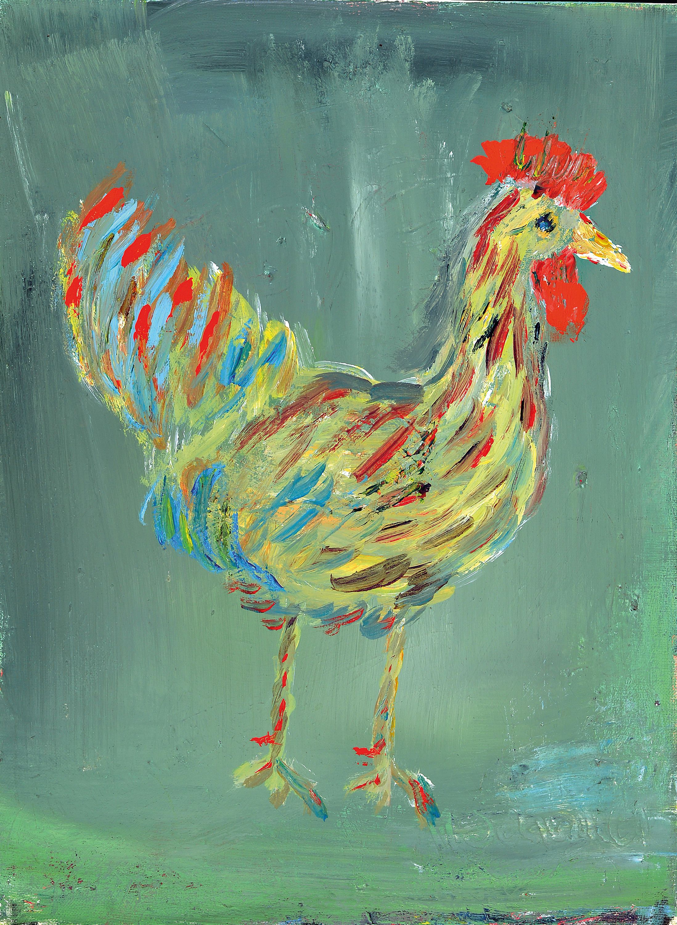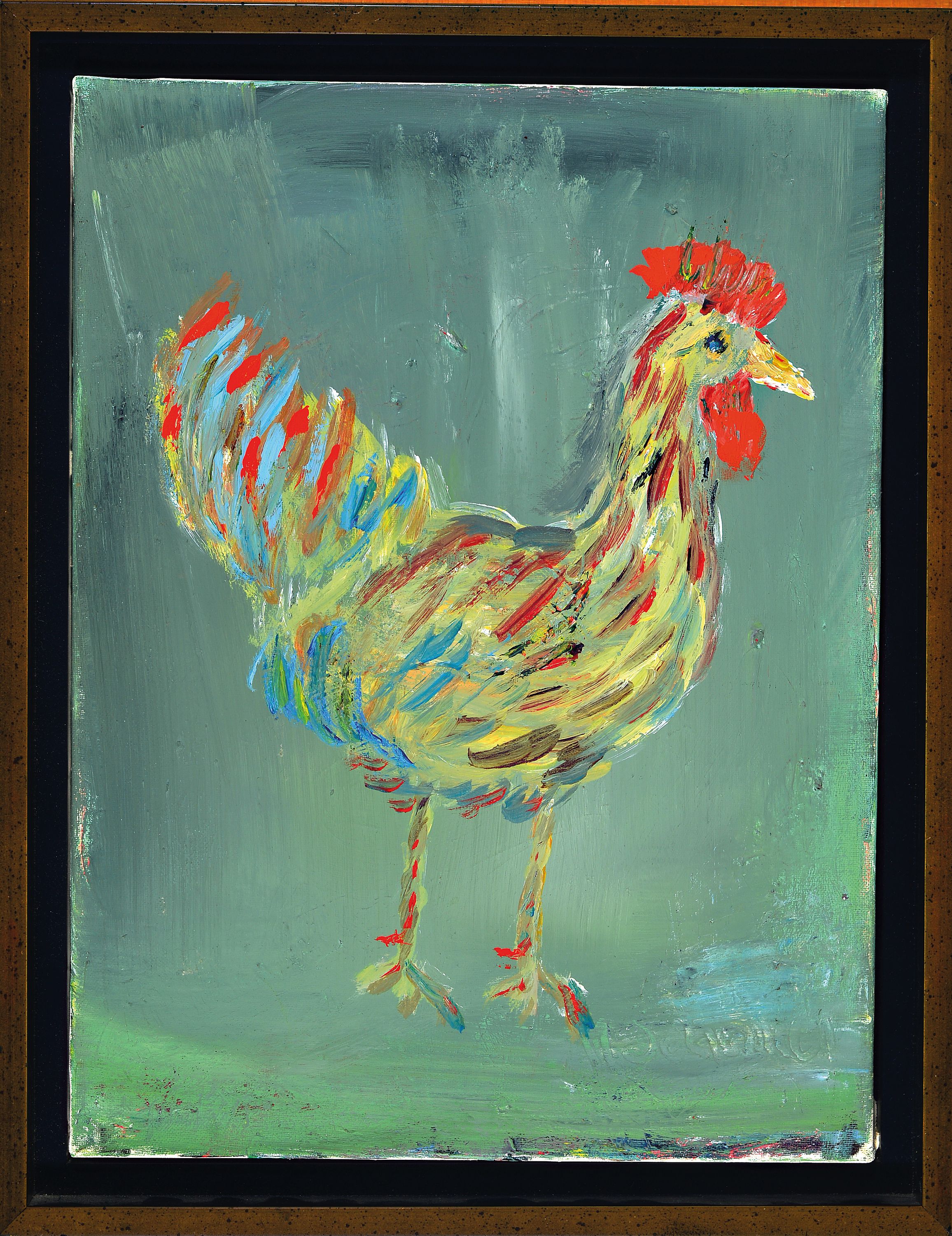 Malkarton, rechts unten sign. und dat. 1985, cay. 51x80cm, R.; 1x Hahn, Öl/Lwd,