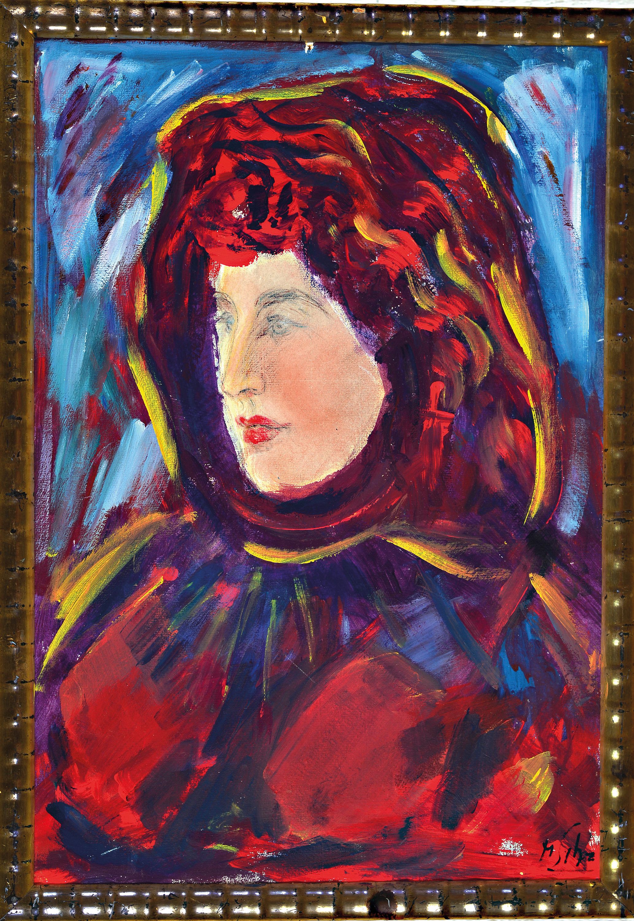 Frau mit Kapuze, Öl/Malkarton, rechts unten sign.,ca. 47x32cm, R.; 1x Gesicht, Öl/Lwd,
