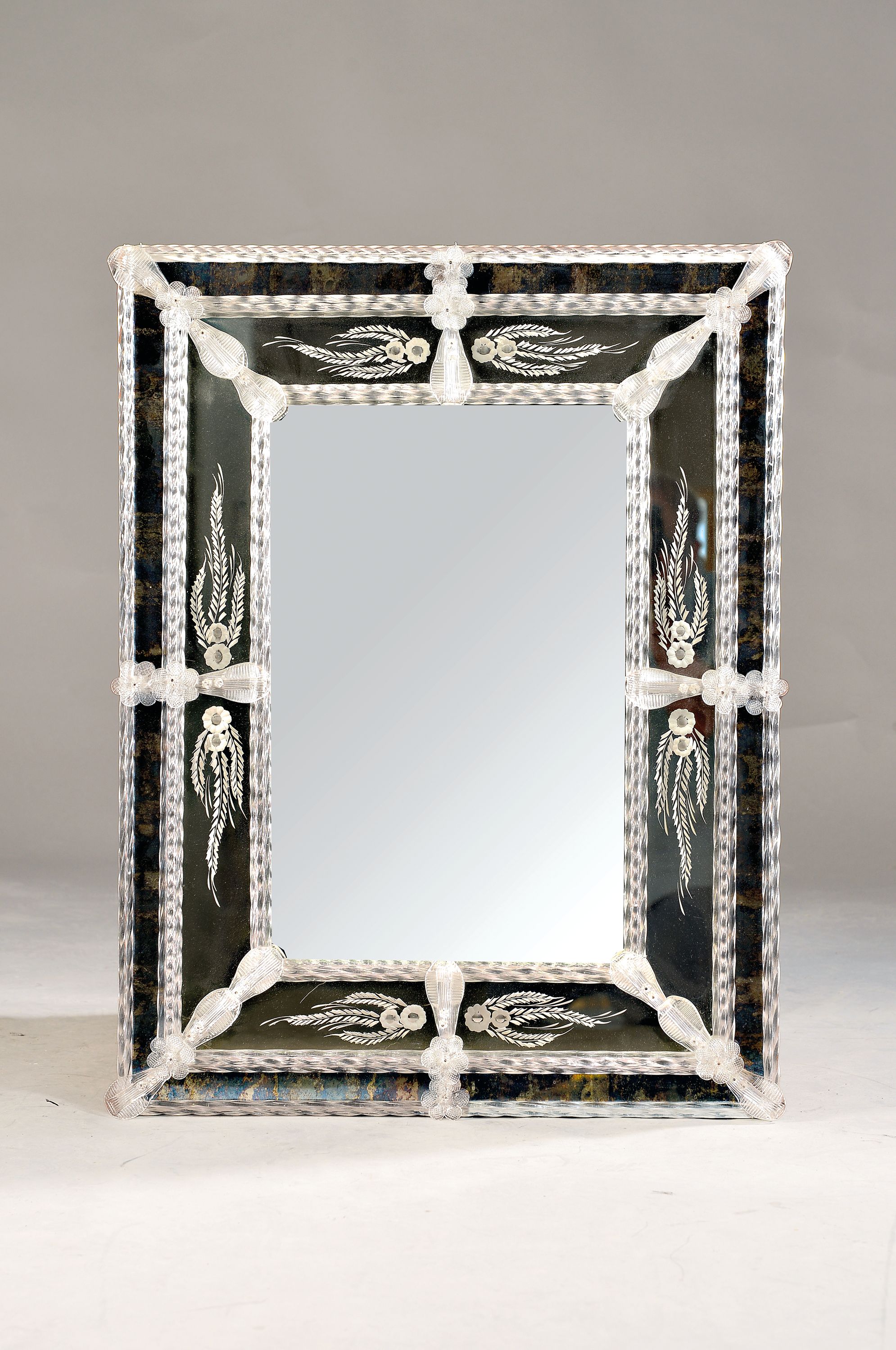 Wandspiegel, Murano, 20.Jh., reich mit Glas verziert, ca. 86 x 65 cm, EZ 2