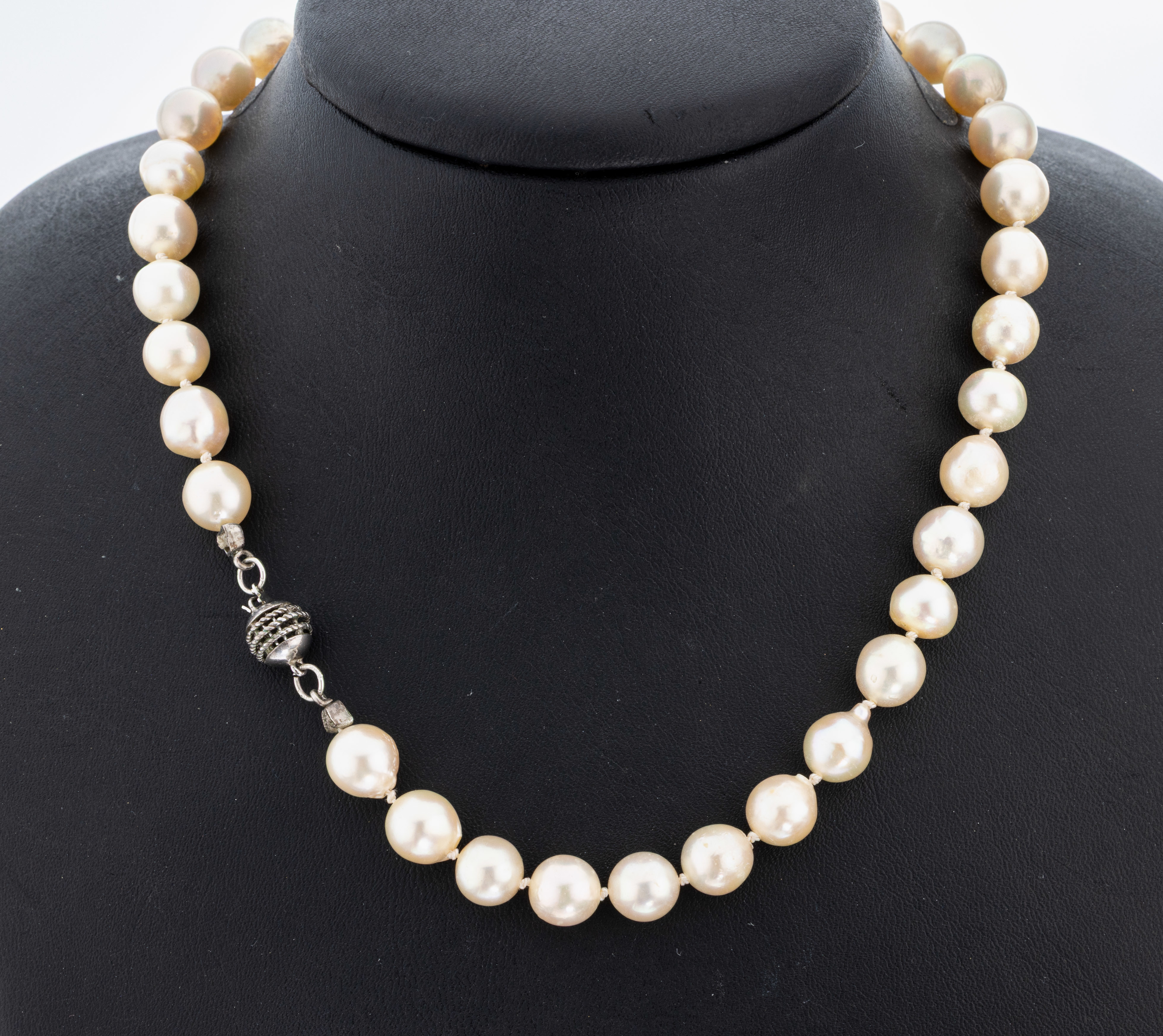 Zuchtperl-Collier, barocke Akoyazuchtperlen, D. ca. 8.2-9 mm, Kugelschließe 925er