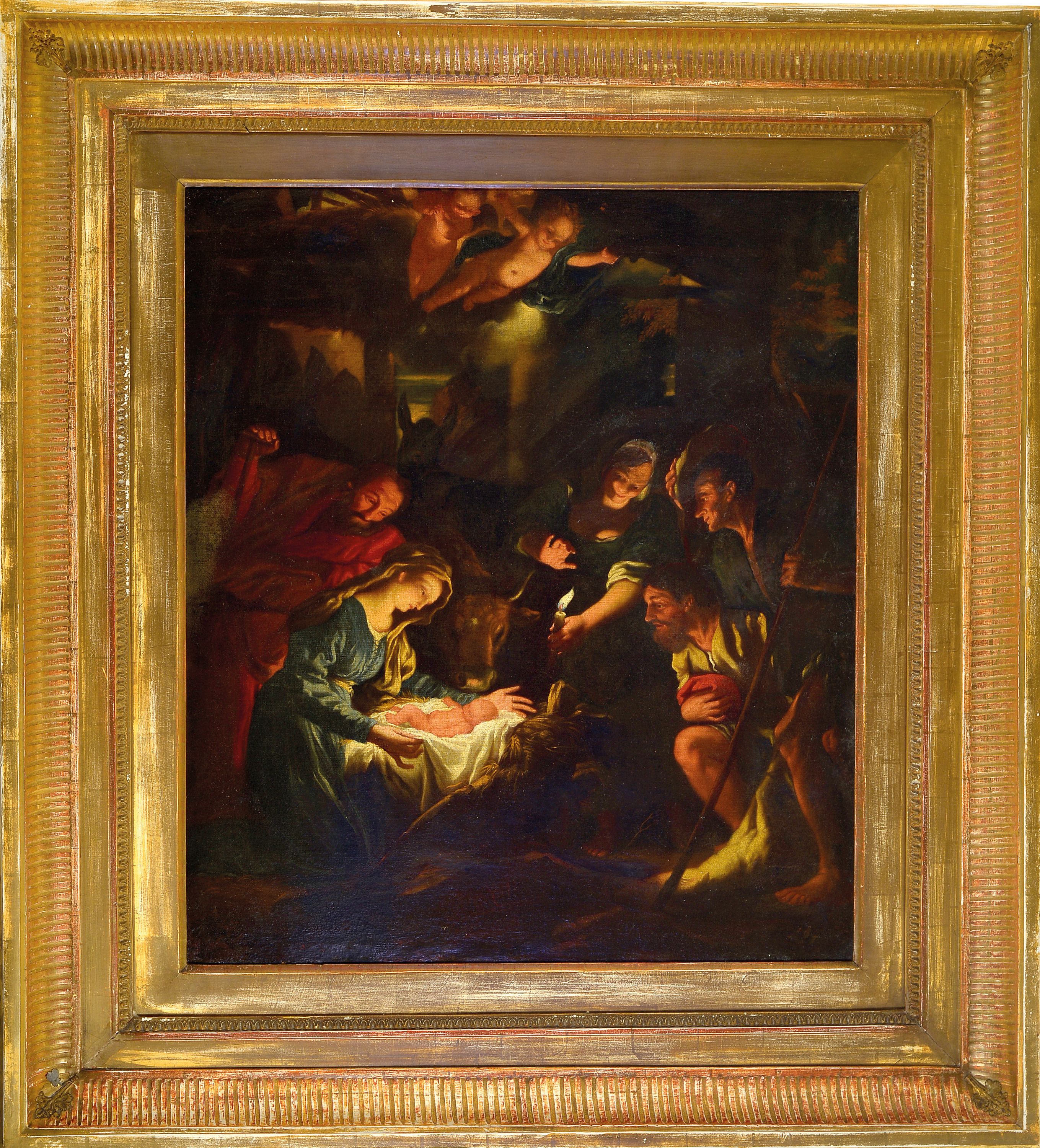 Unbekannter Künstler, süddeutsch, um 1760-80, Die Geburt Christi, Öl/Lwd, rest.,