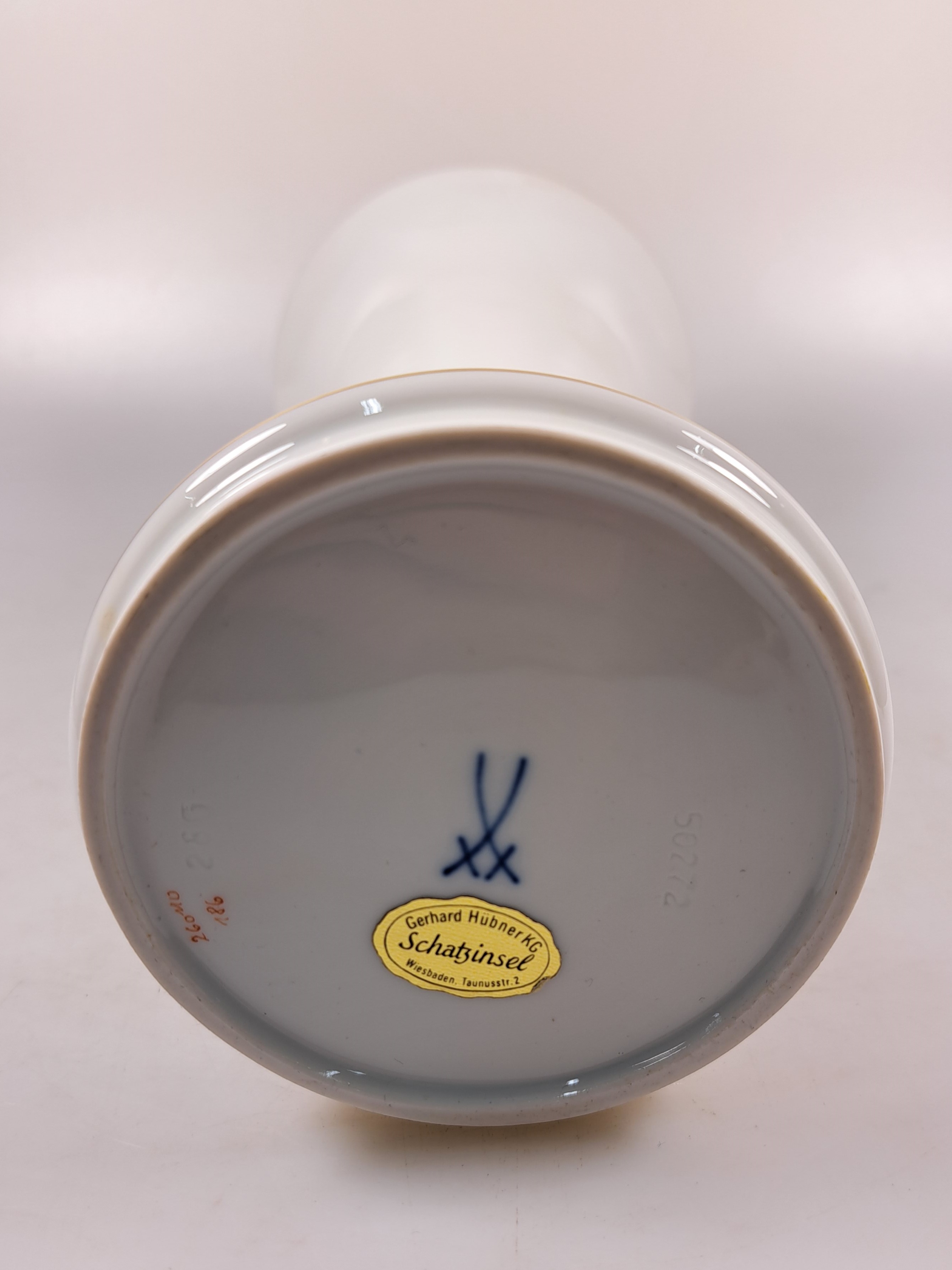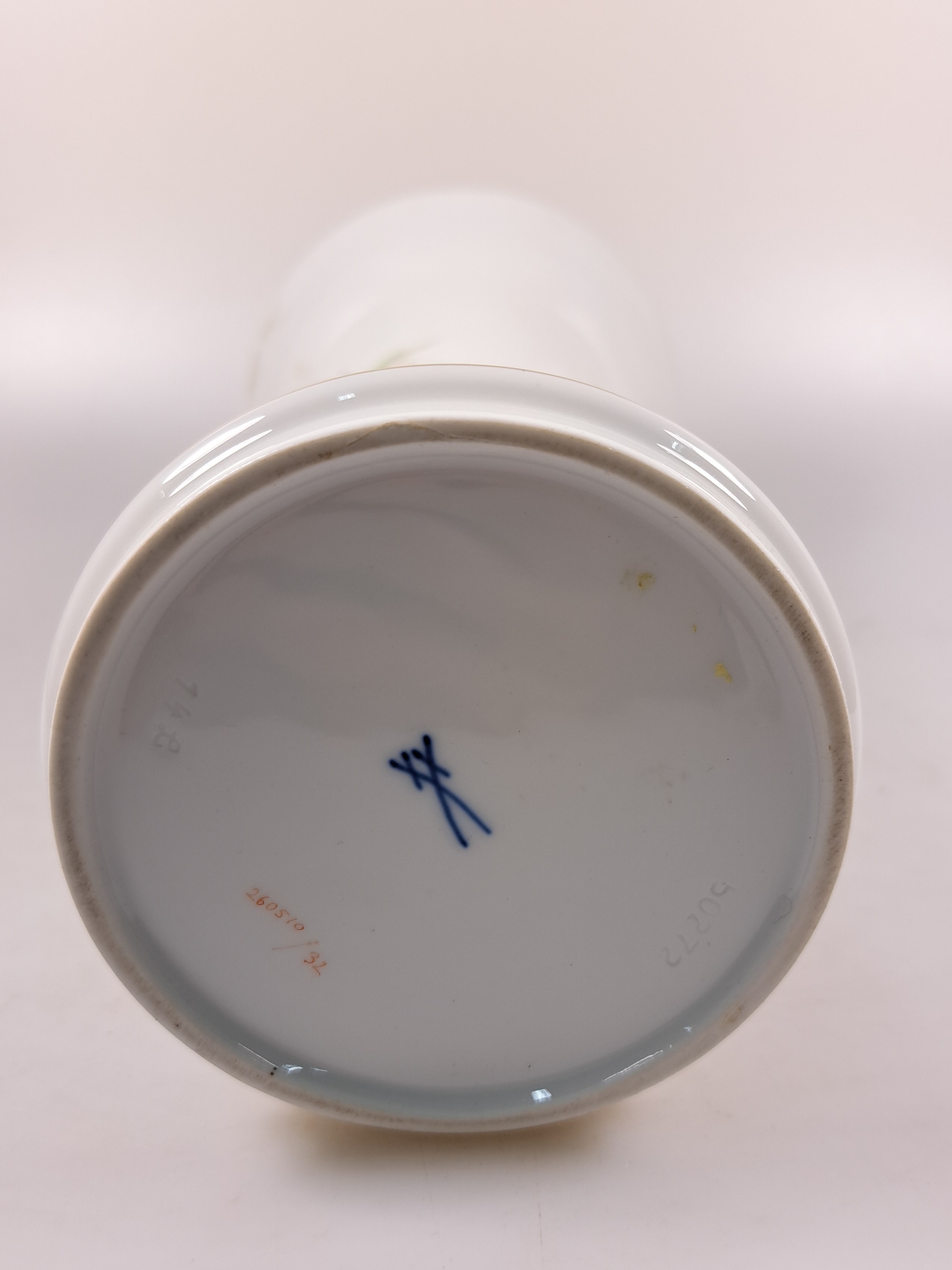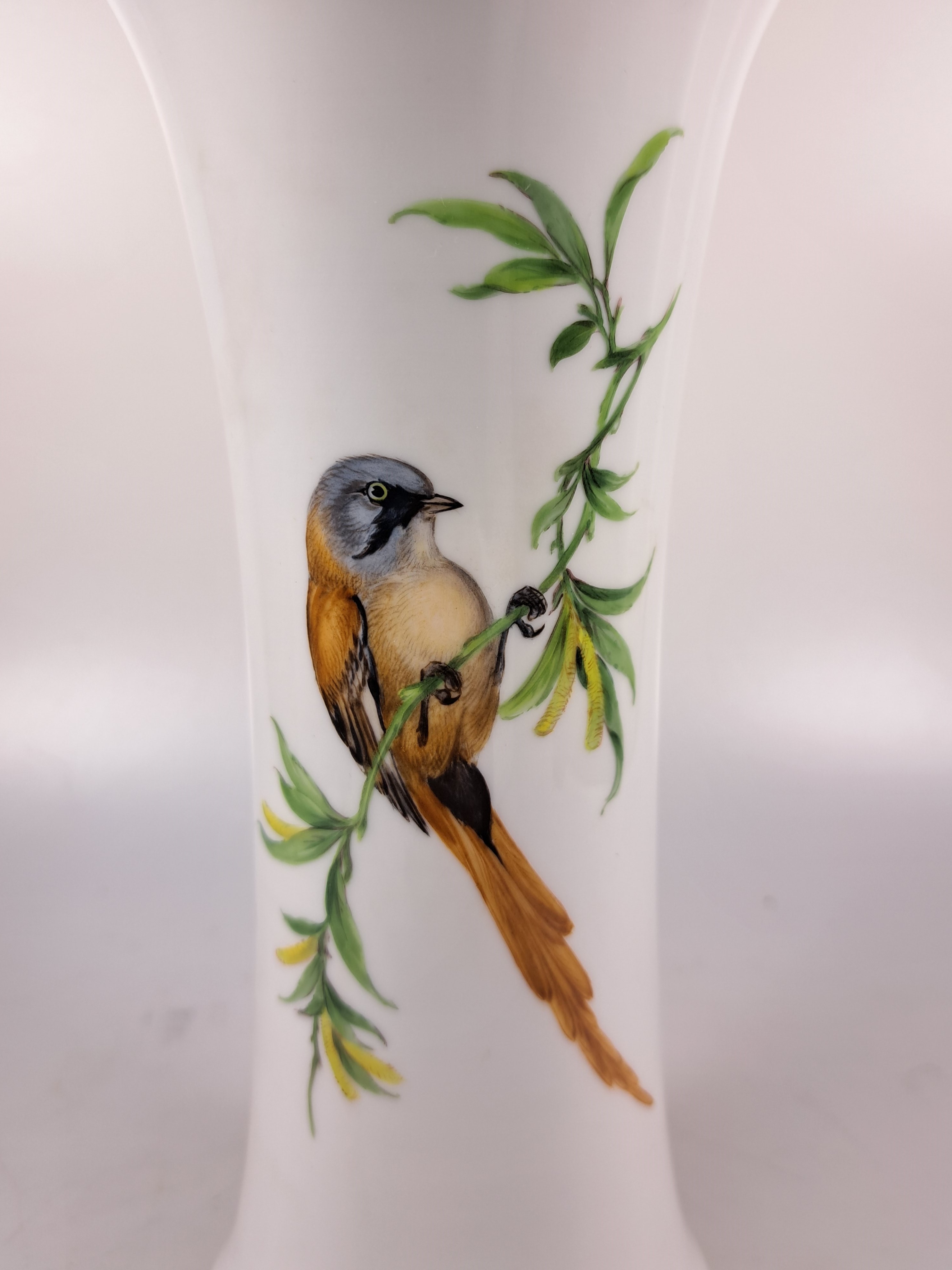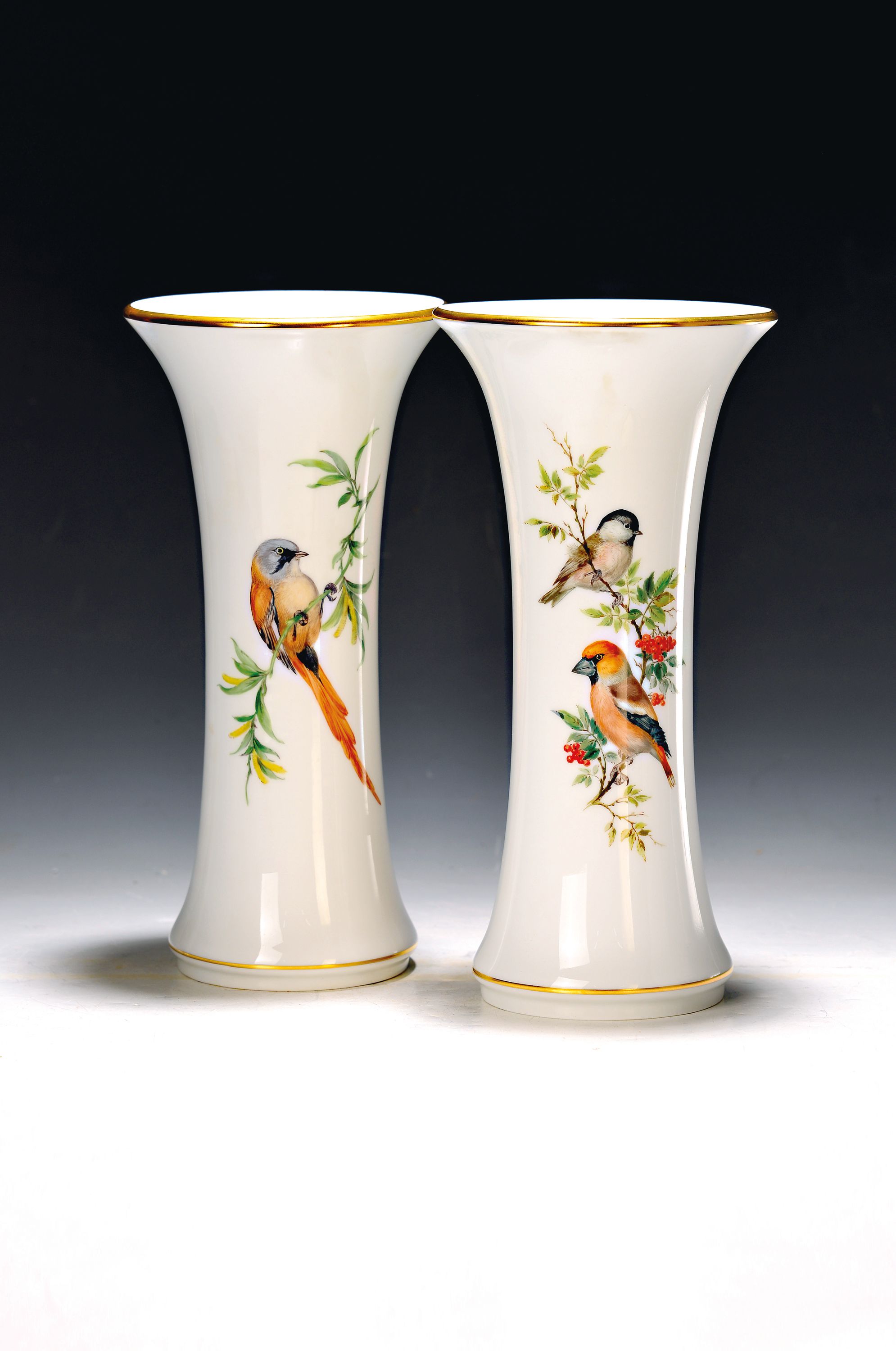 Paar Vasen, Meissen, 20. Jh., Porzellan, Vogelmalerei, Goldstaffage, H. 25.5 cm