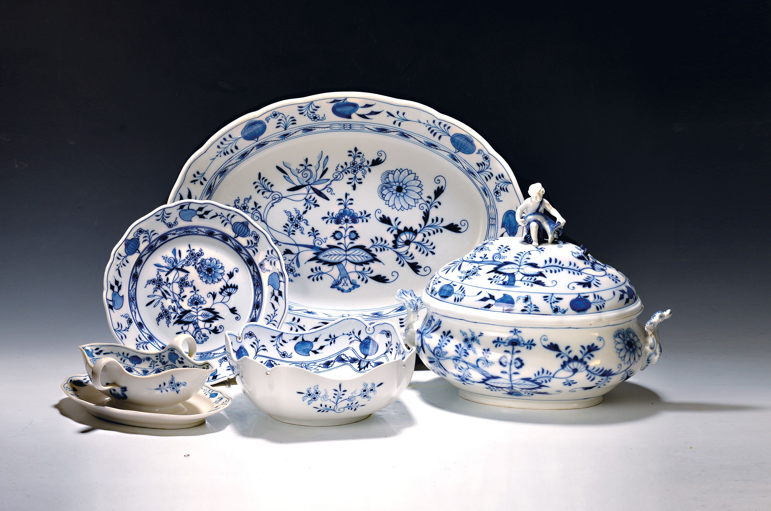 Speiseservice für 12 Personen, Meissen, 1930er Jahre, 1. Wahl, blaues Zwiebelmuster