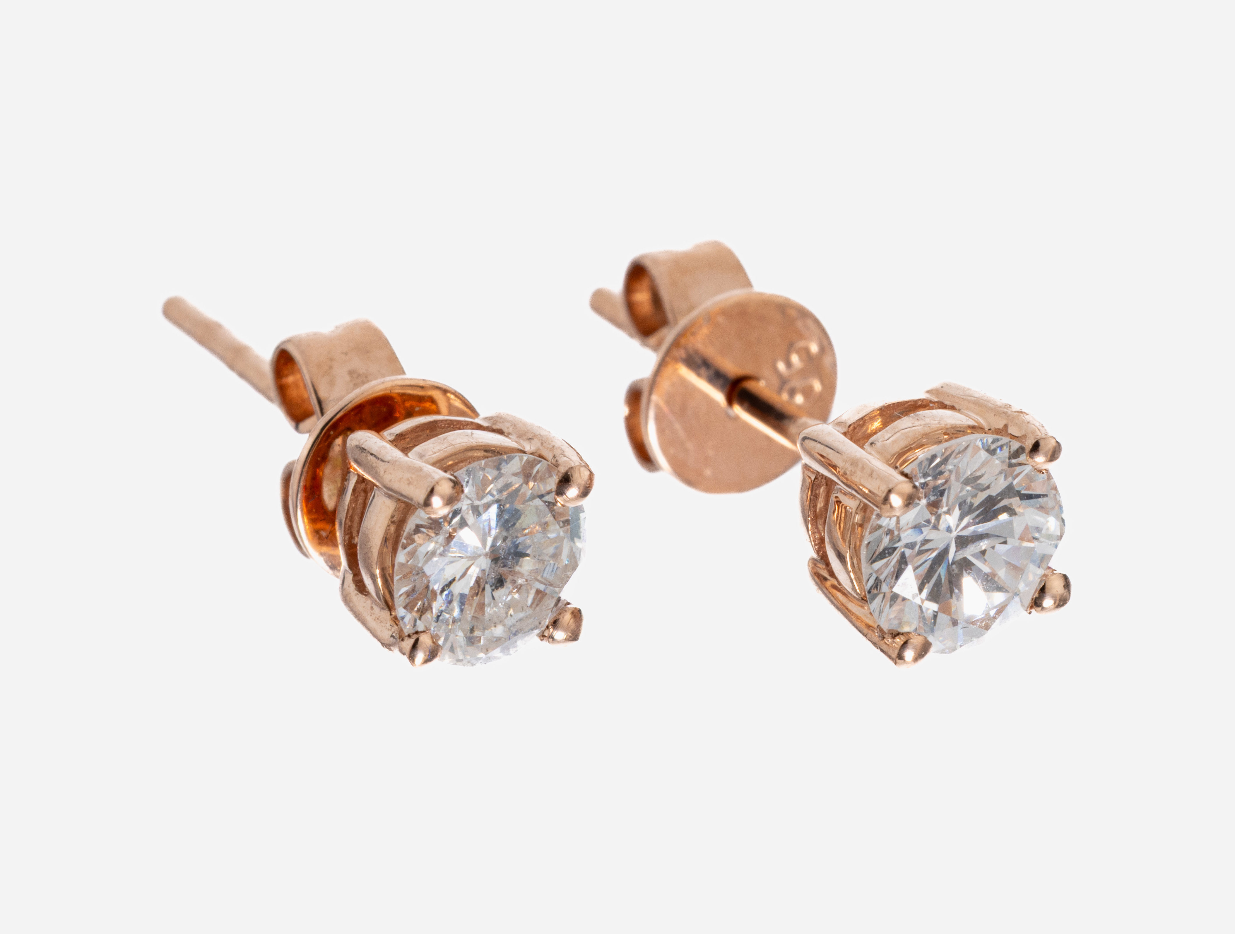 Paar 14 kt Gold Brillant-Ohrstecker, RG 585/000, 2 Brillanten zus. ca. 0.68 ct Weiß-