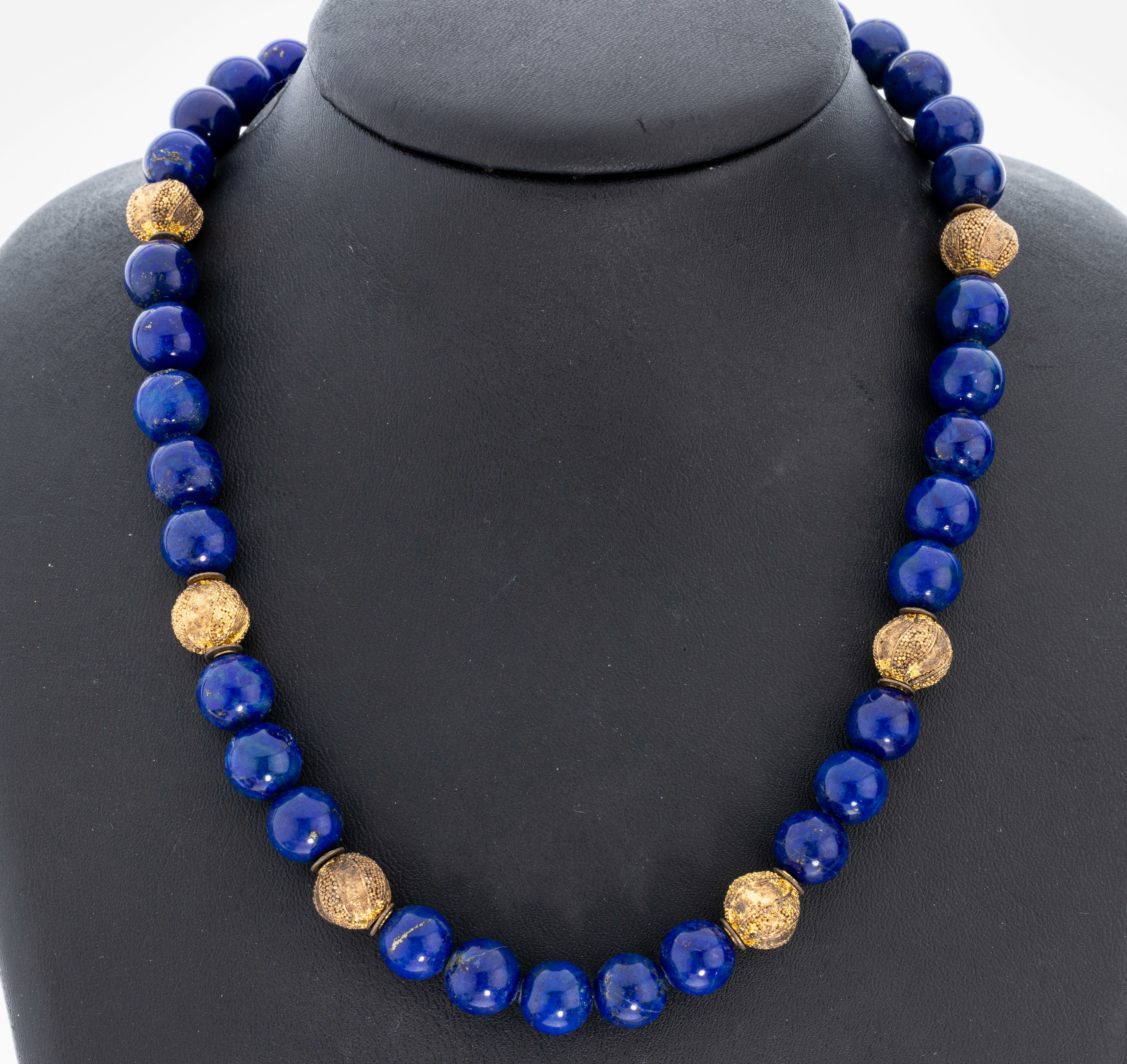 Lapislazuli-Collier, Lapislazuli-Kugeln, D.ca. 9.7 mm, Karabiner-Schließe und Zwischenglieder
