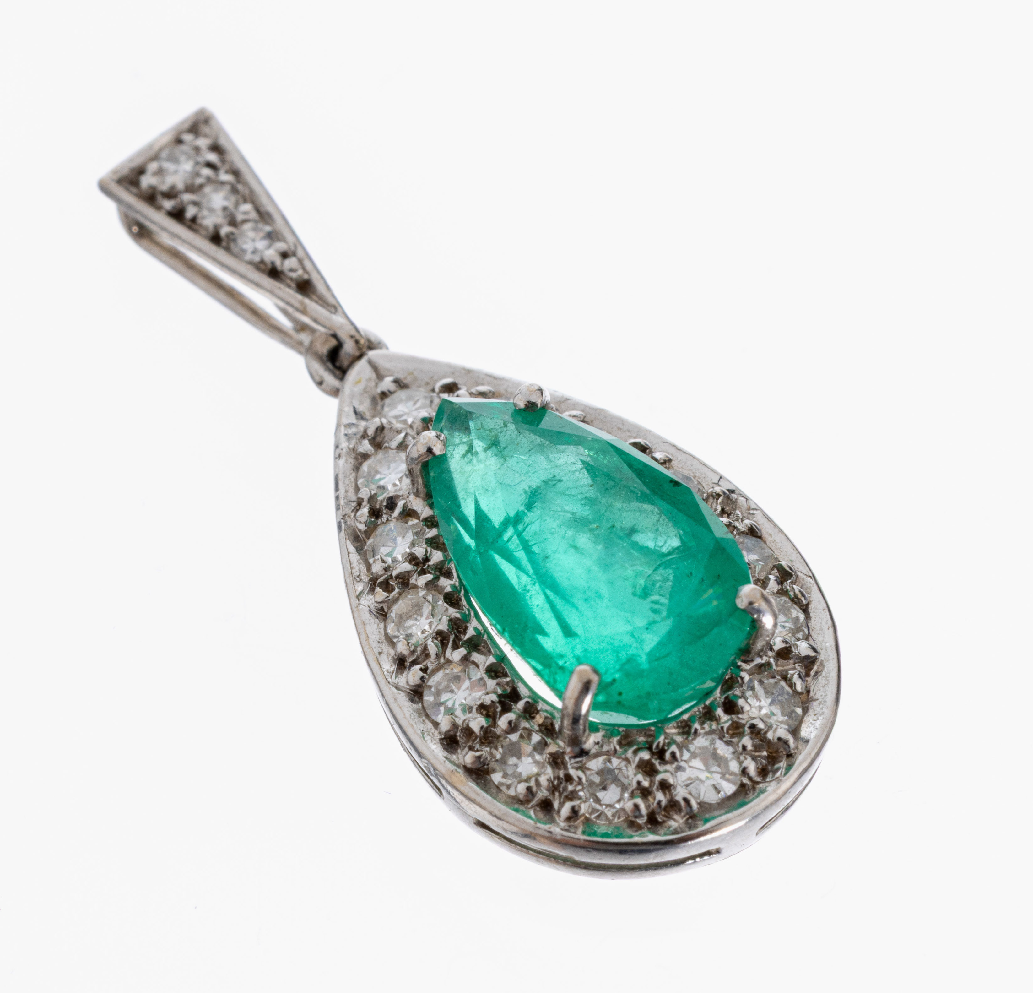 18 kt Gold Smaragd-Diamant-Anhänger, WG 750/000, facett. Smaragd-Tropfen ca. 1.50