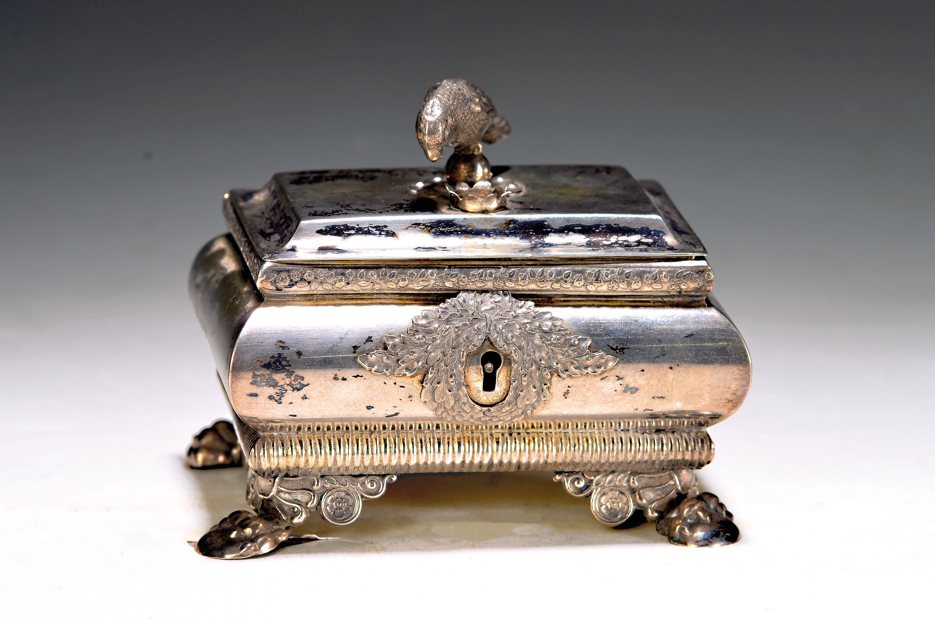 Zuckerdose, wohl Hirschberg, sign. Örtel, 18. Jh., 12-lötiges Silber, vier Füße