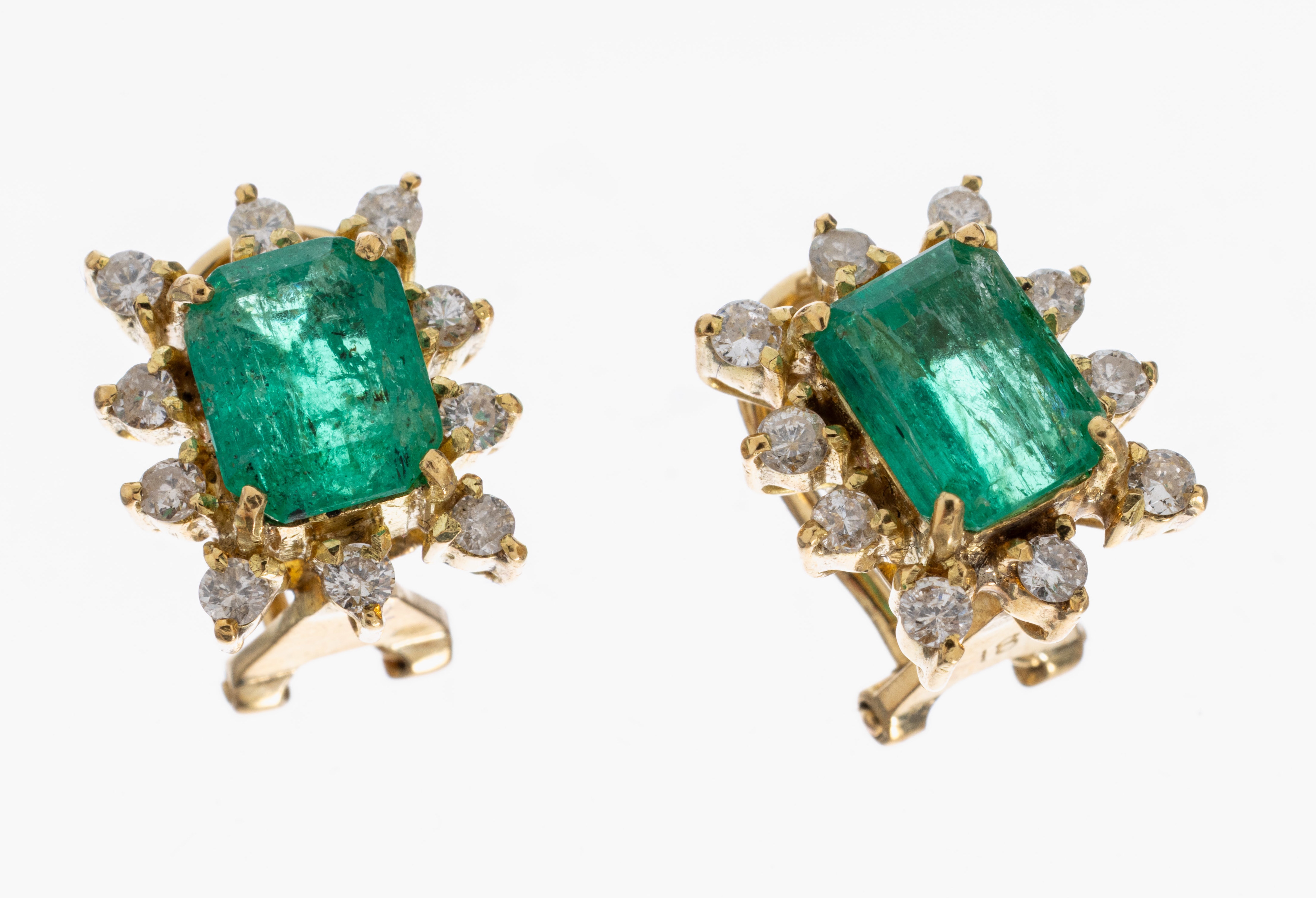 Paar 18 kt Gold Smaragd-Brillant-Ohrstecker, GG 750/000, 2 oktagonal facett. Smaragde