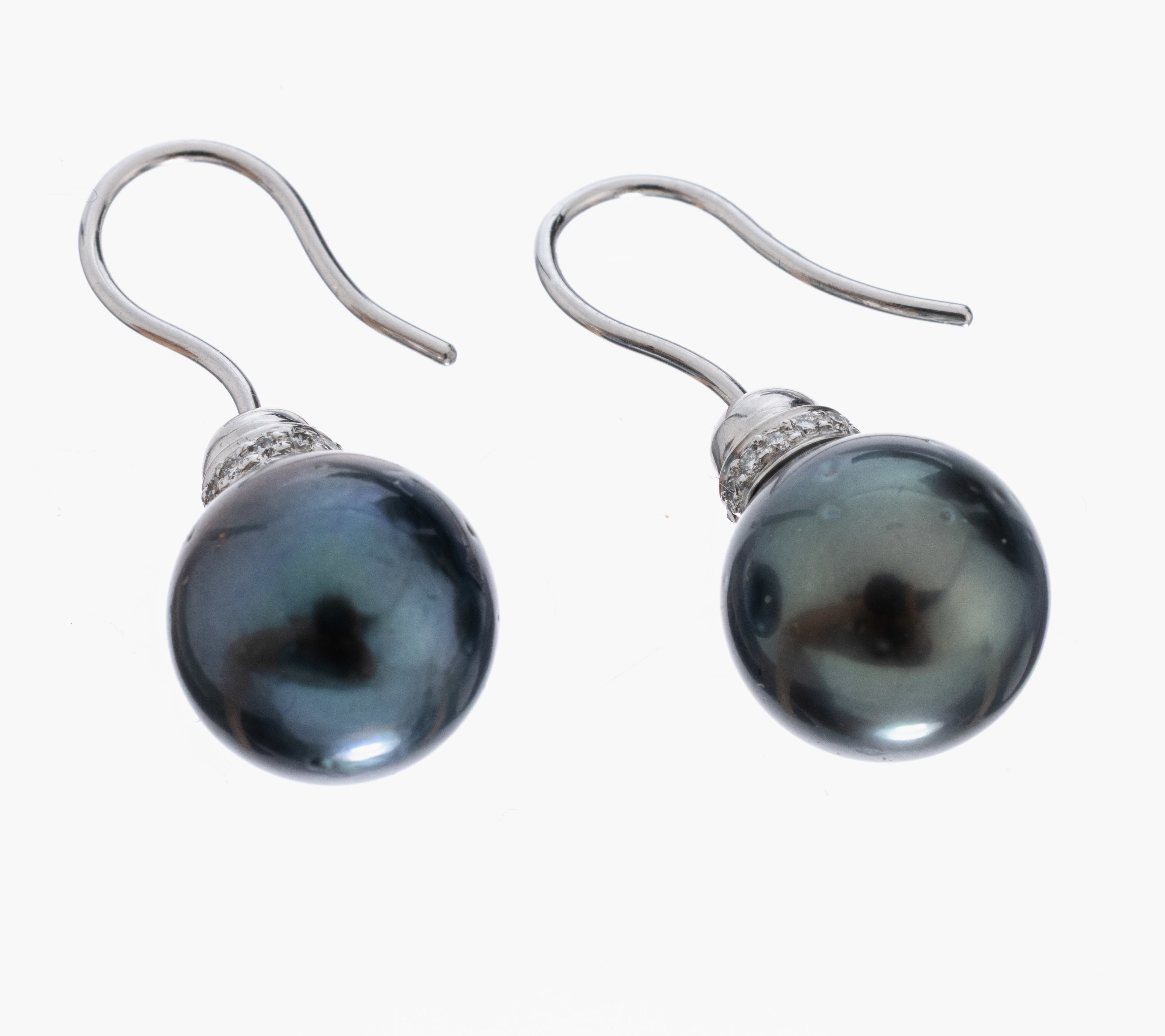 Paar 18 kt Gold Perl-Brillant-Ohrgehänge, WG 750/000, 2 anthrazitfarb. Tahitizuchtperlen,