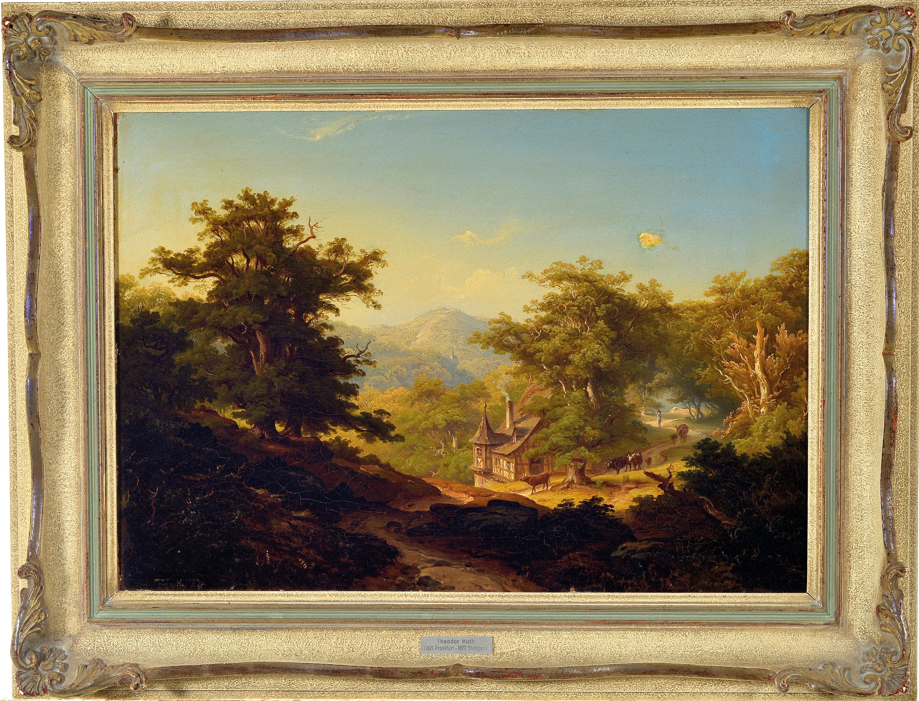 Theodor Huth, 1821-1886 Frankfurt am Main, Mittelgebirgslandschaft mit Kuhhirt, links