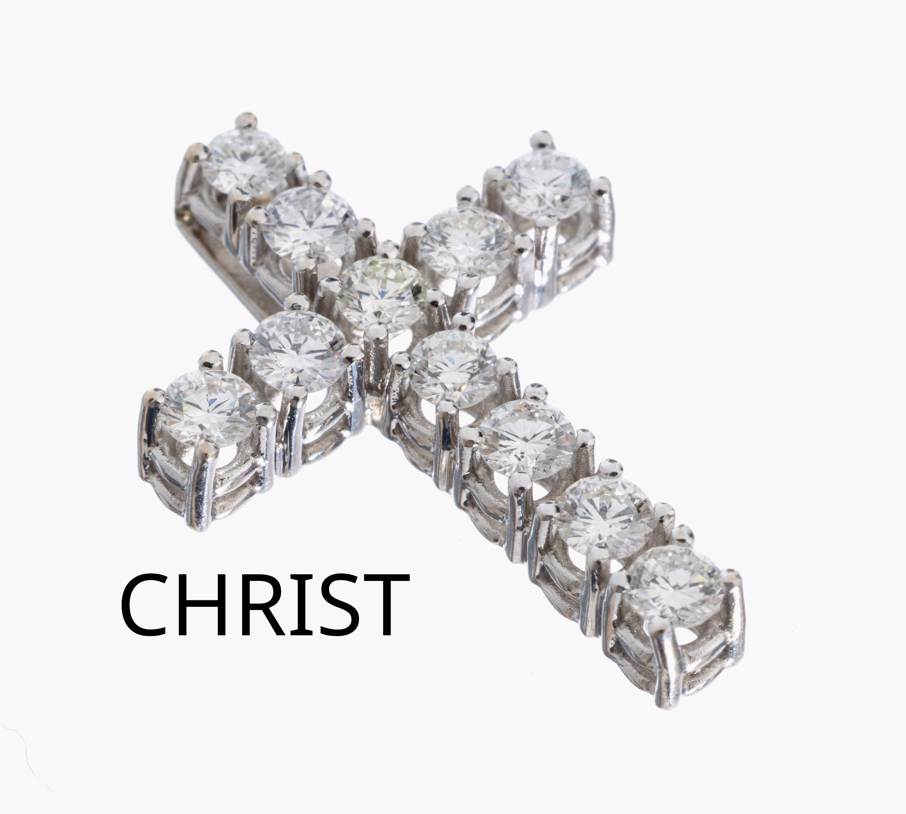 14 kt Gold CHRIST Brillant-Kreuzanhänger, WG 585/000, 11 Brillanten zus. ca. 0.80
