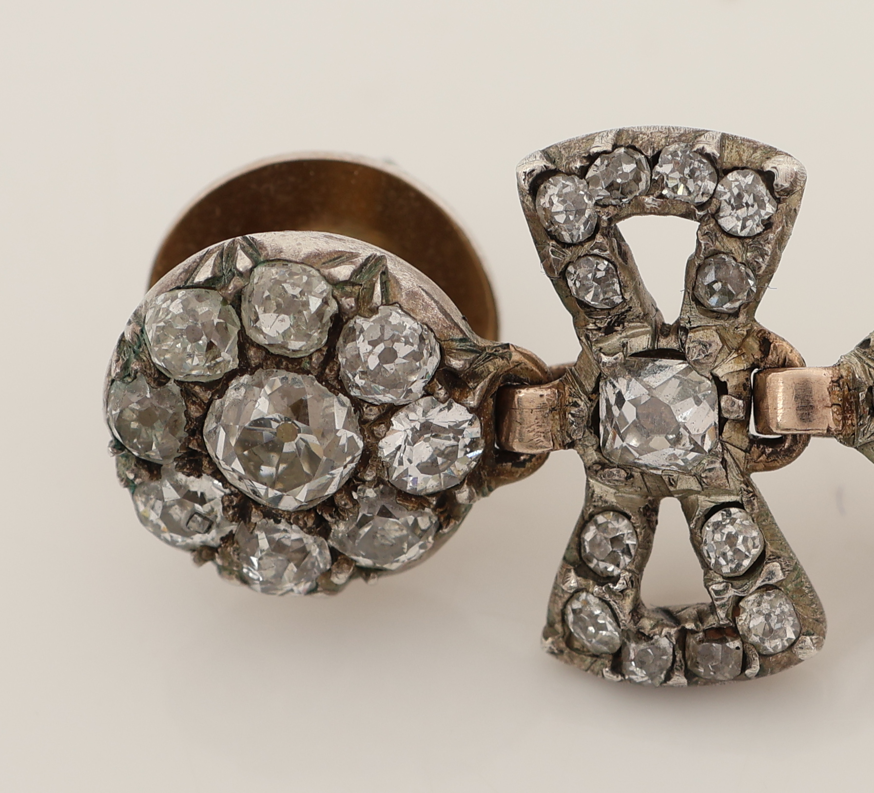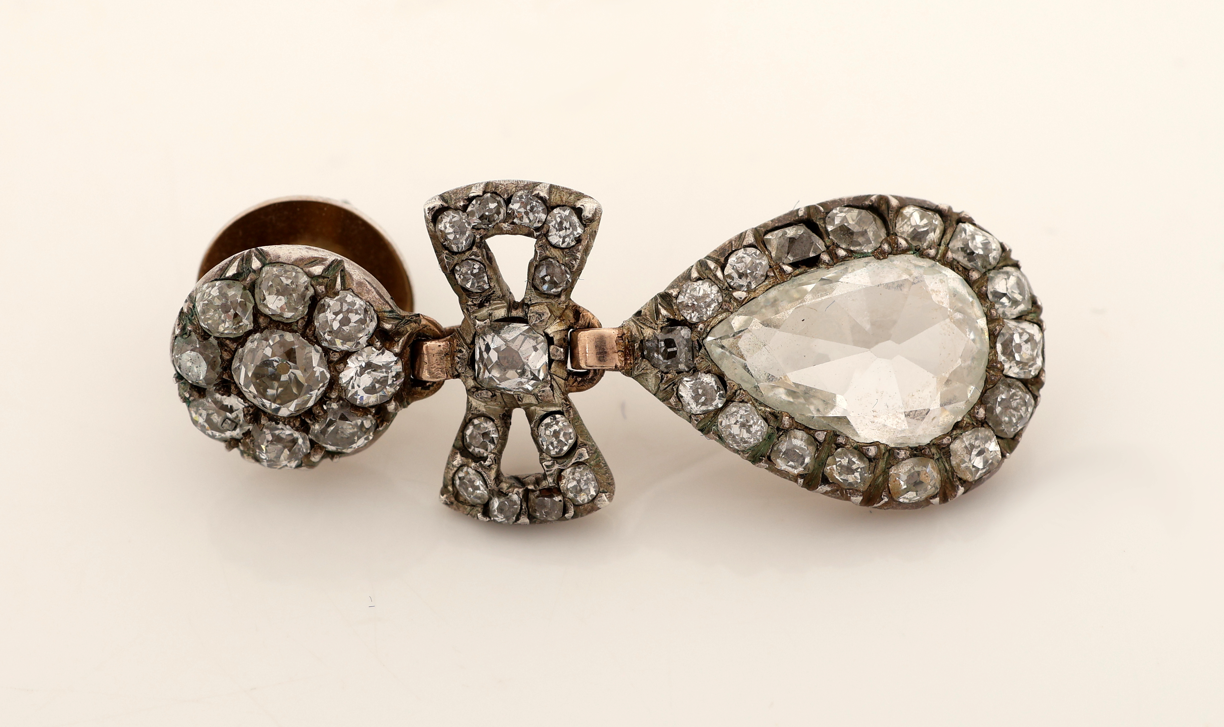 zus. ca. 4.0 ct, Altschliffdiamanten zus. ca. 4.0 ct Weiß- l.get.Weiß/si-p, Schleifenverzierung,