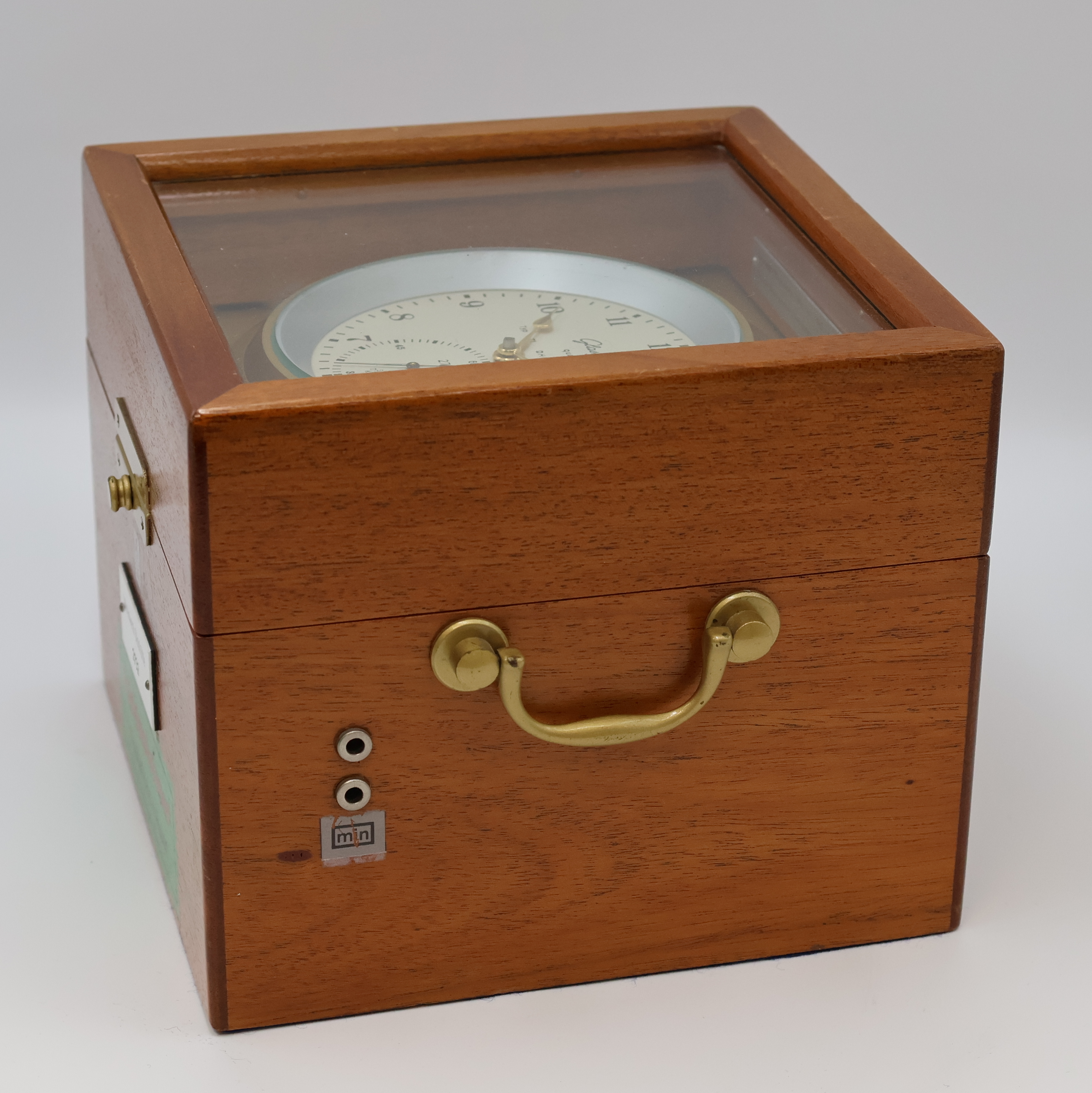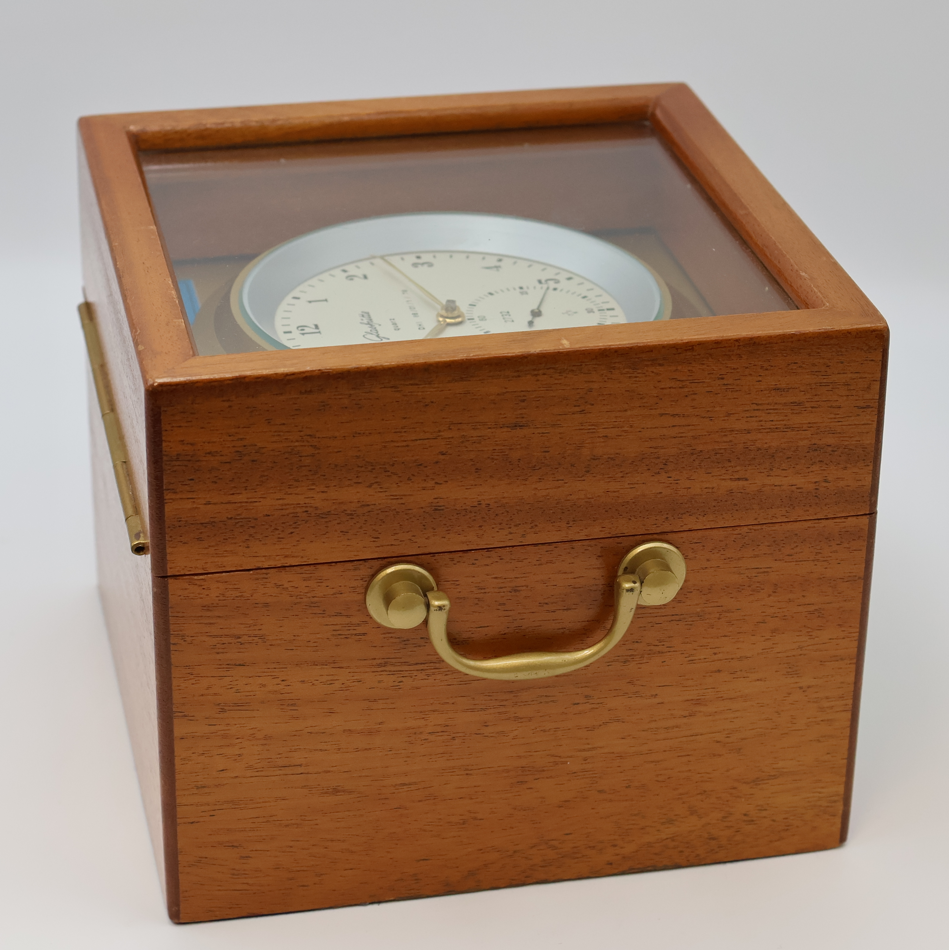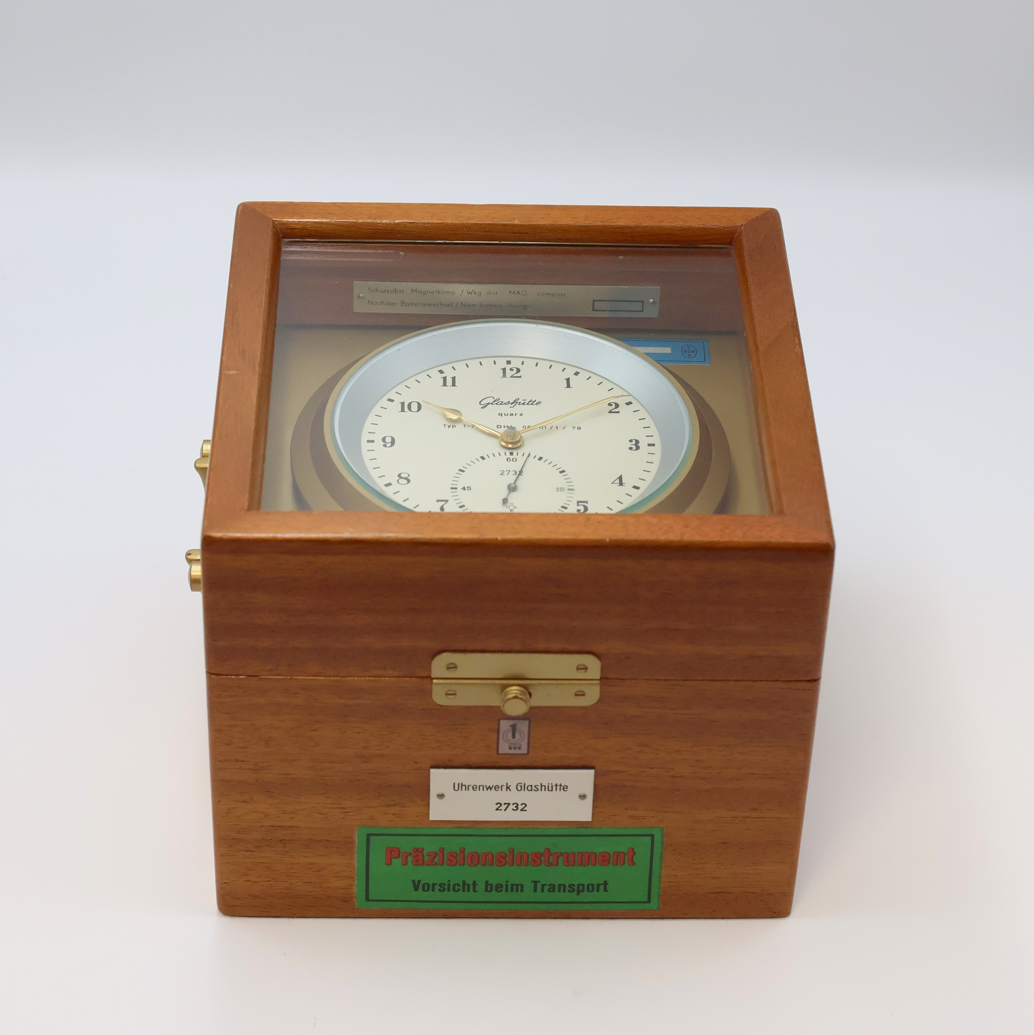 GLASHÜTTE Quarz Marinechronometer Typ 1-71, DDR um 1980, 2-tlg. Mahagoni Box, Deckel