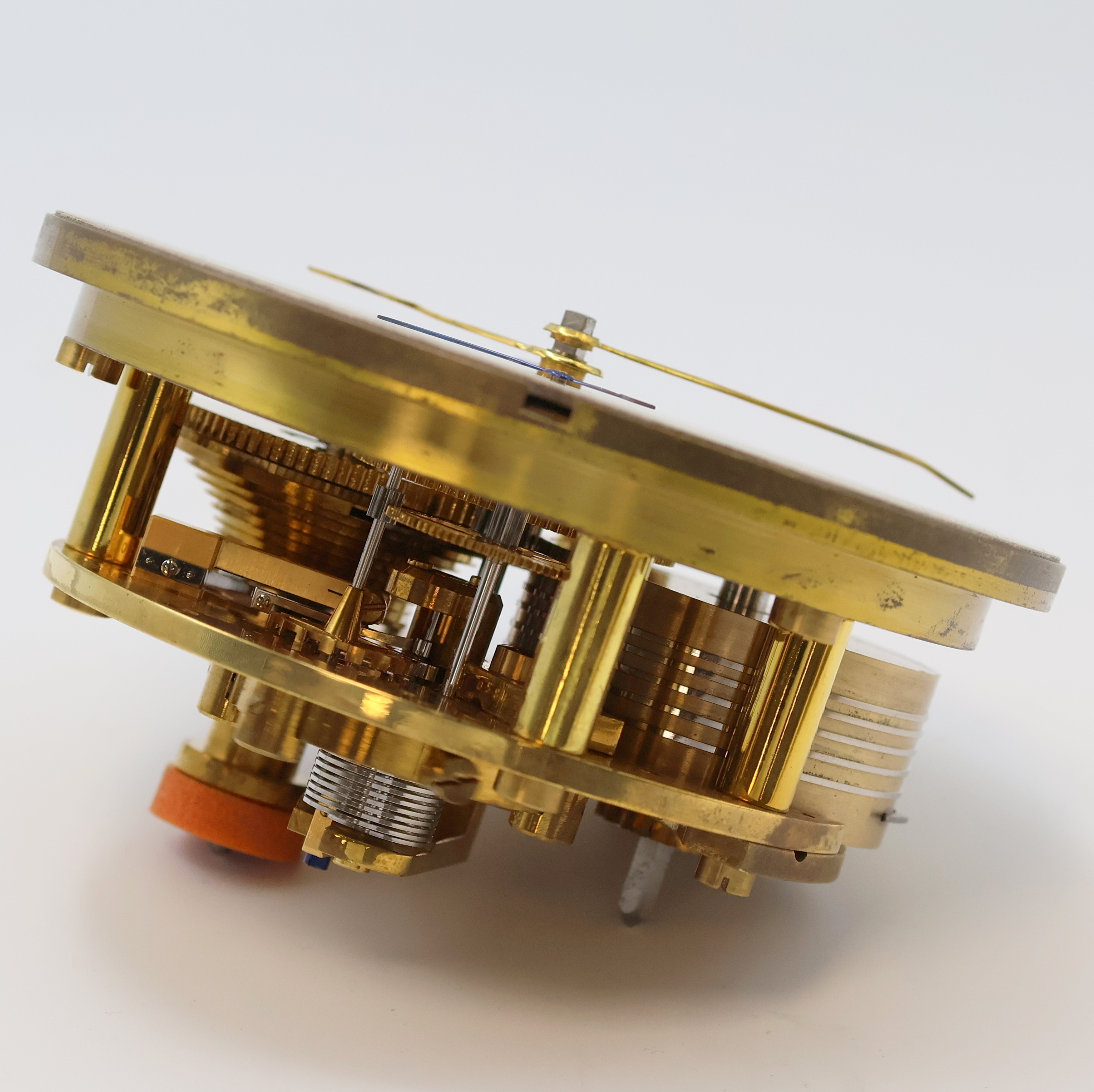 Messingwerk m. Stahlband u. Schnecke Kaliber 100, Earnshaw Chronometerhemmung, Grießbach-Unruh