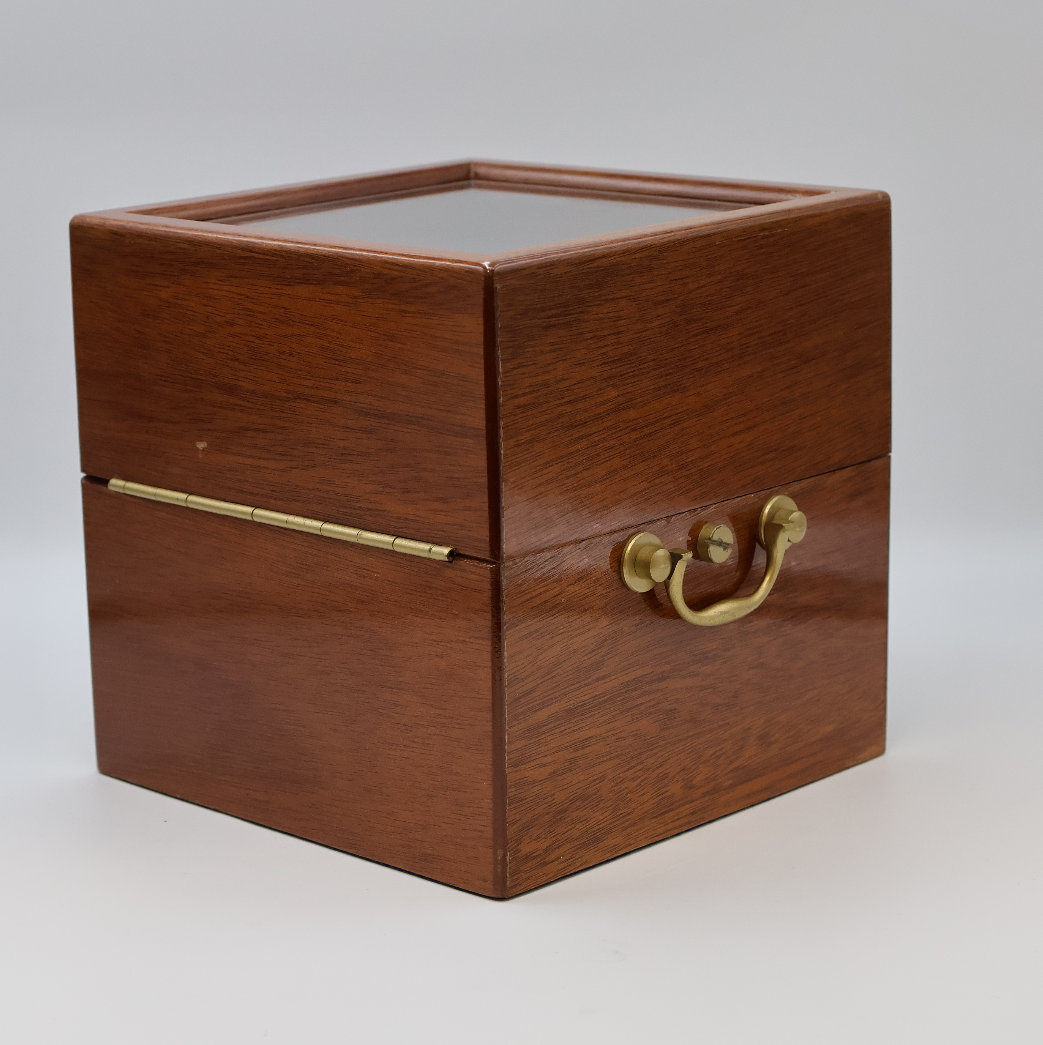 facett-vergl. Mahagoni-Box, seitl. Tragegriffe, kardanisch aufgehängtes Messinggeh.