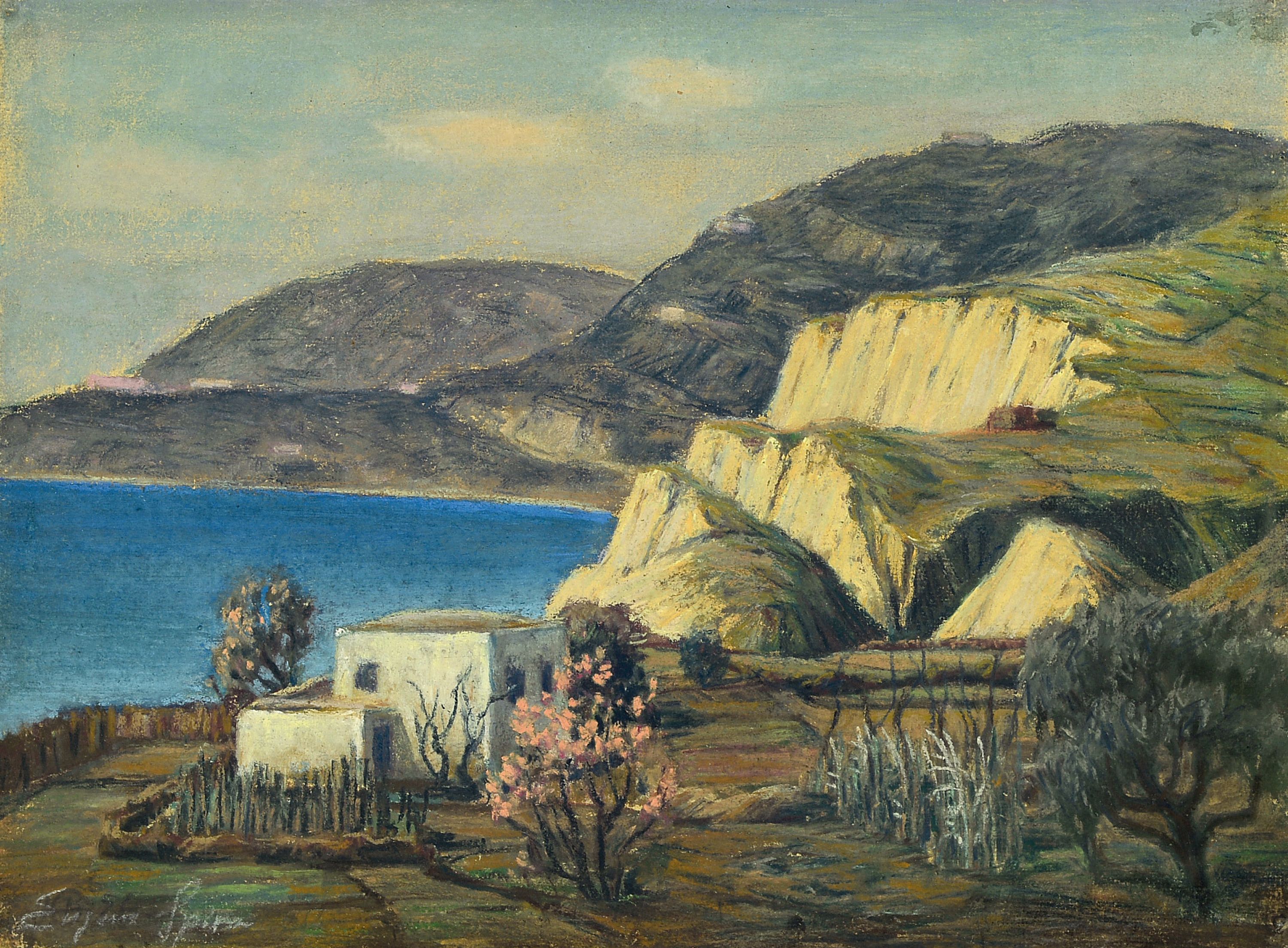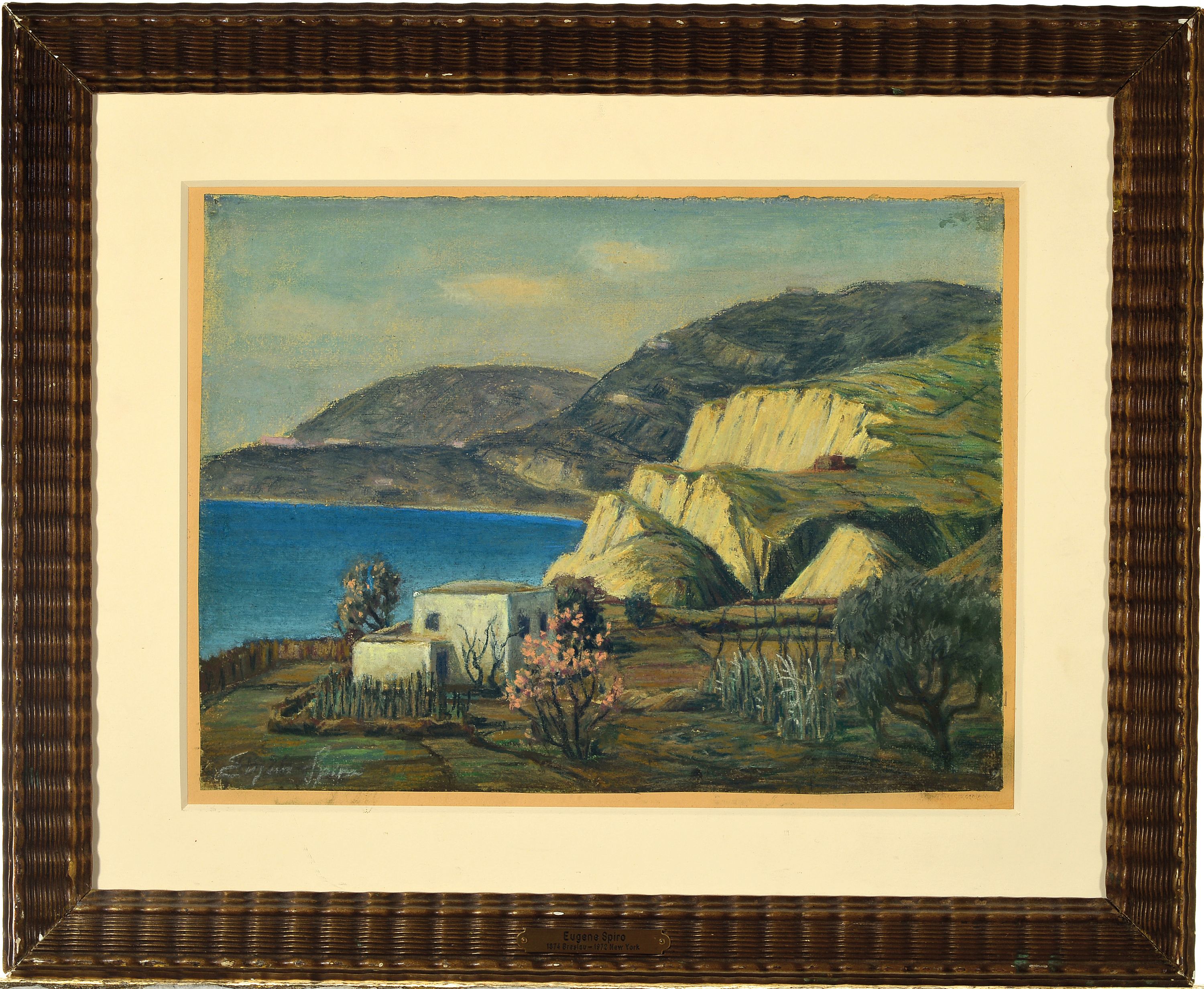 Mediterrane Küstenlandschaft, links unten signiert, Blatt 28x37,5 cm, unter Glas