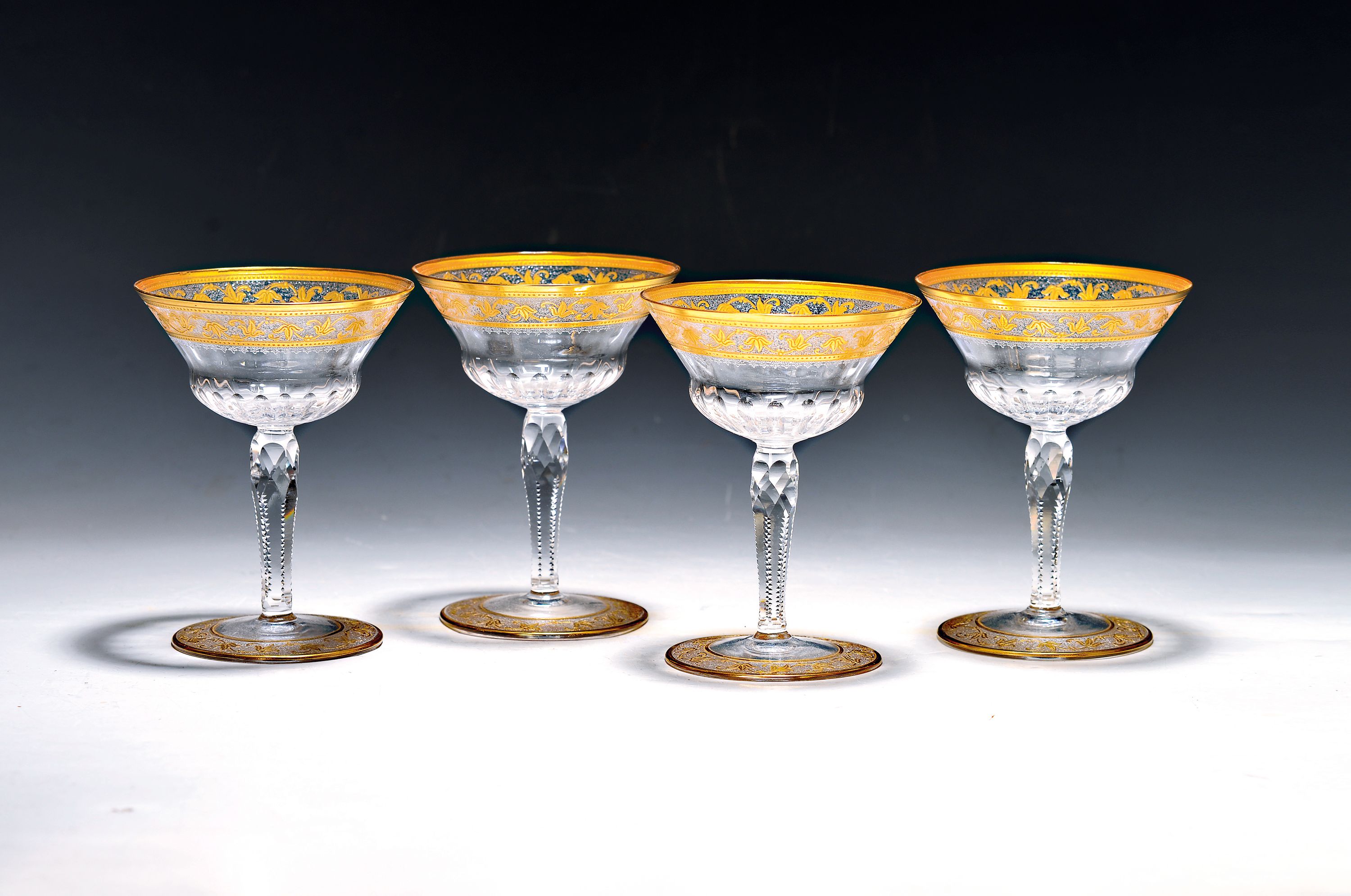 9 Champagnerschalen/-gläser, Saint Louis, "Callot", farbloses Kristallglas, mundgeblasen,