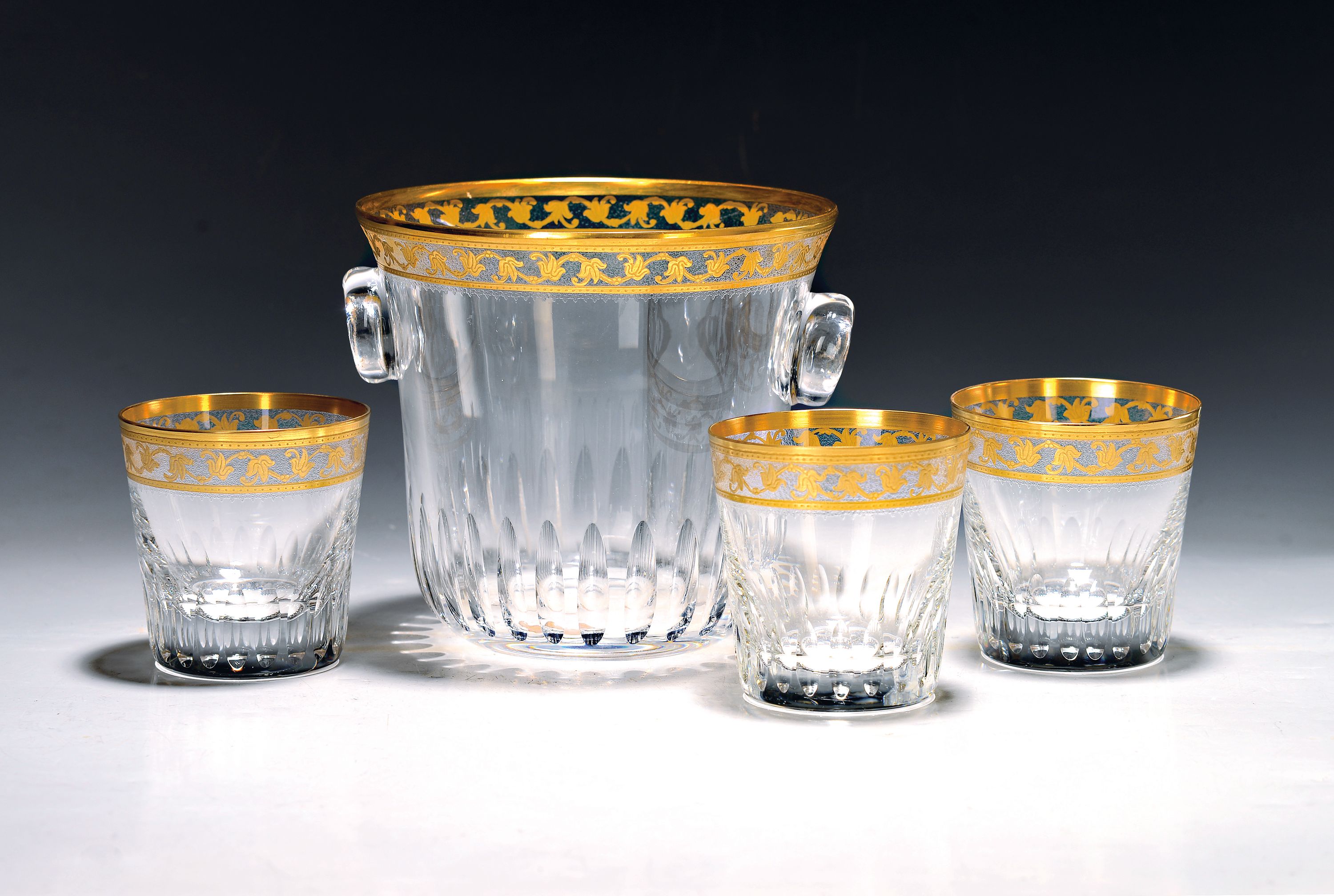 Weinkühler und sieben Bechergläser, Saint Louis, "Callot", farbloses Kristallglas,