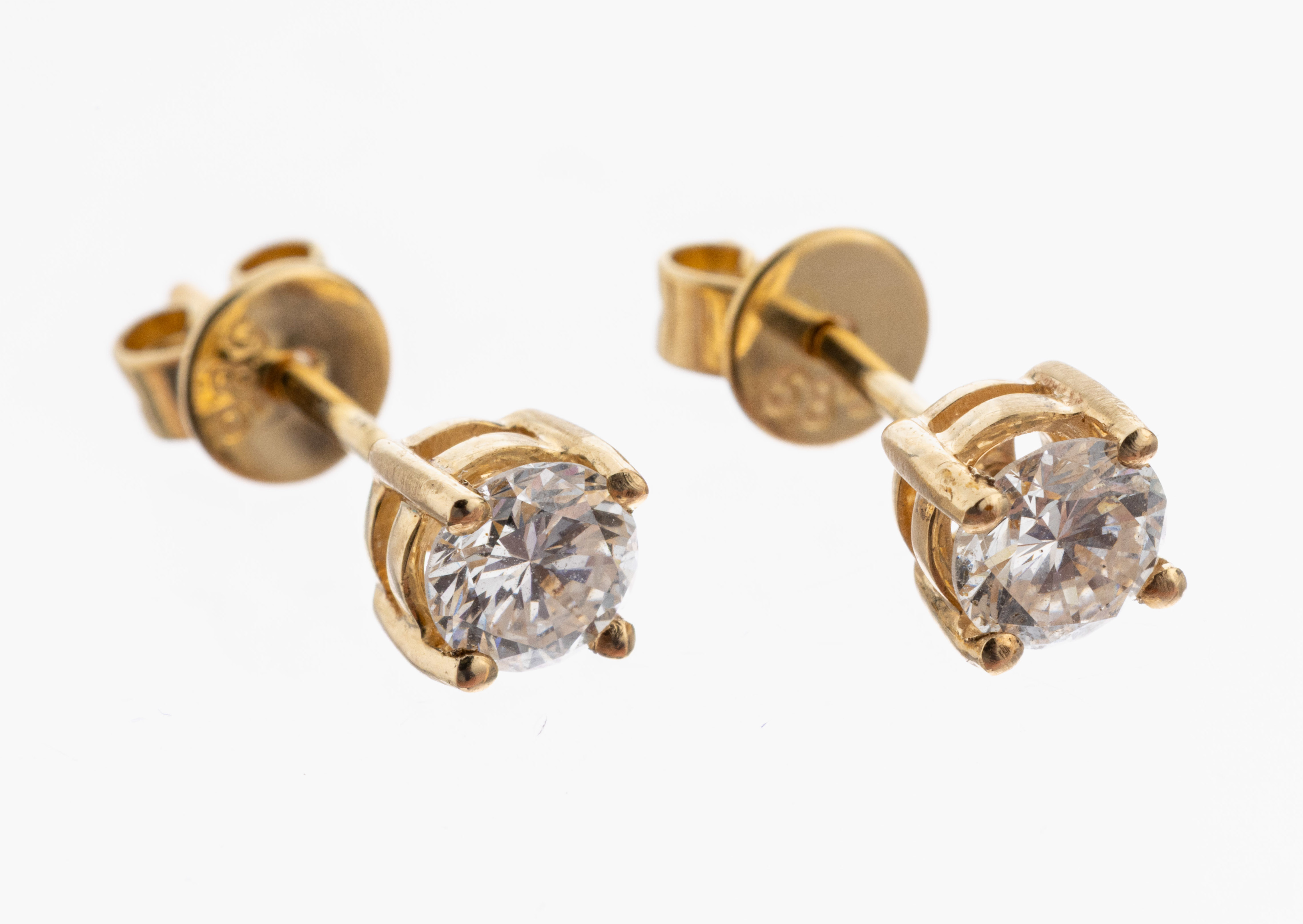 Paar 14 kt Gold Brillant-Ohrstecker, GG 585/000, 1 Brillant 0.31 feines Weiß+(F)/vs,