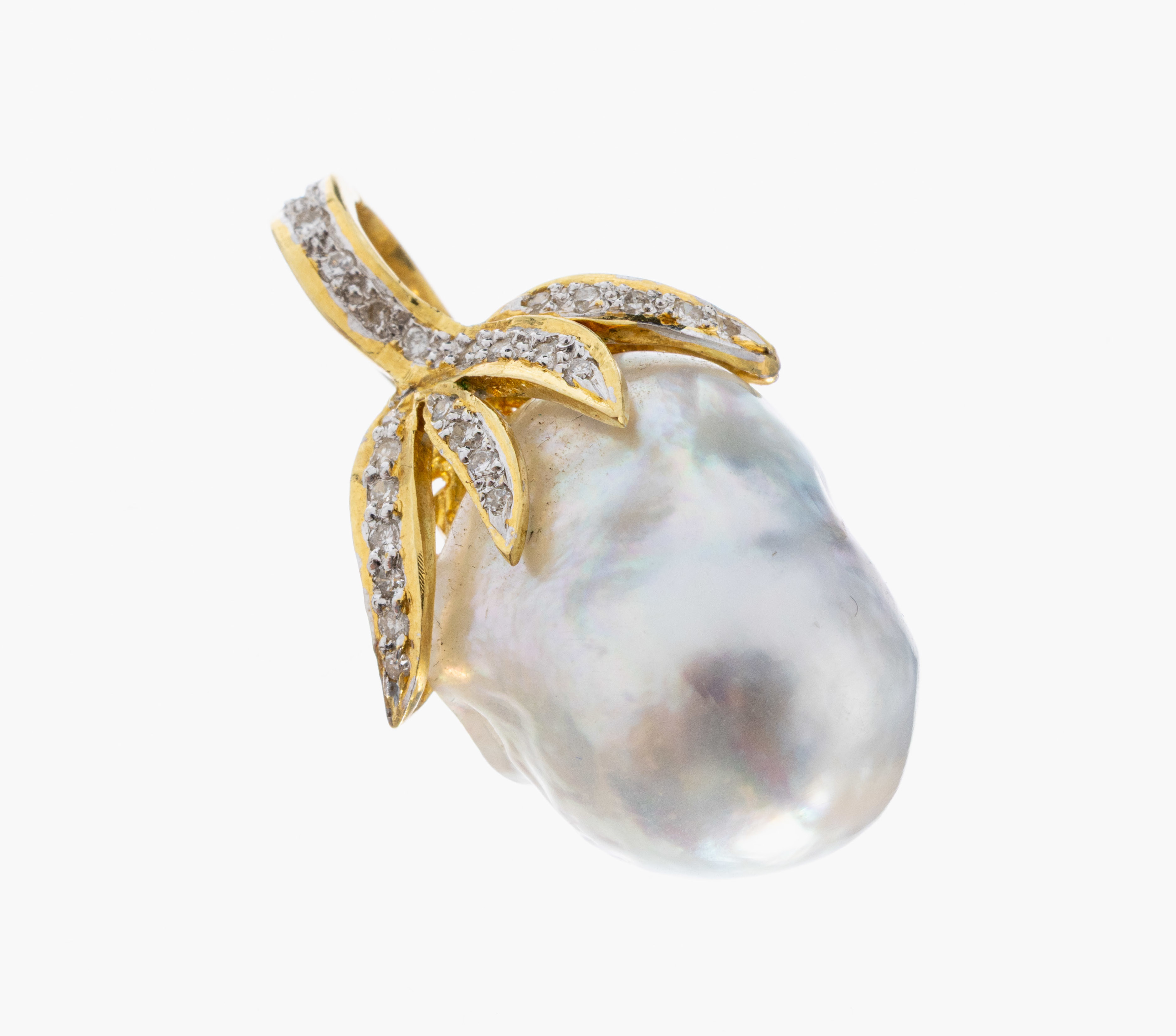 18 kt Gold Perl-Brillant-Clipanhänger, GG 750/000, Monsterperle L. ca. 18 mm, silbergrau,