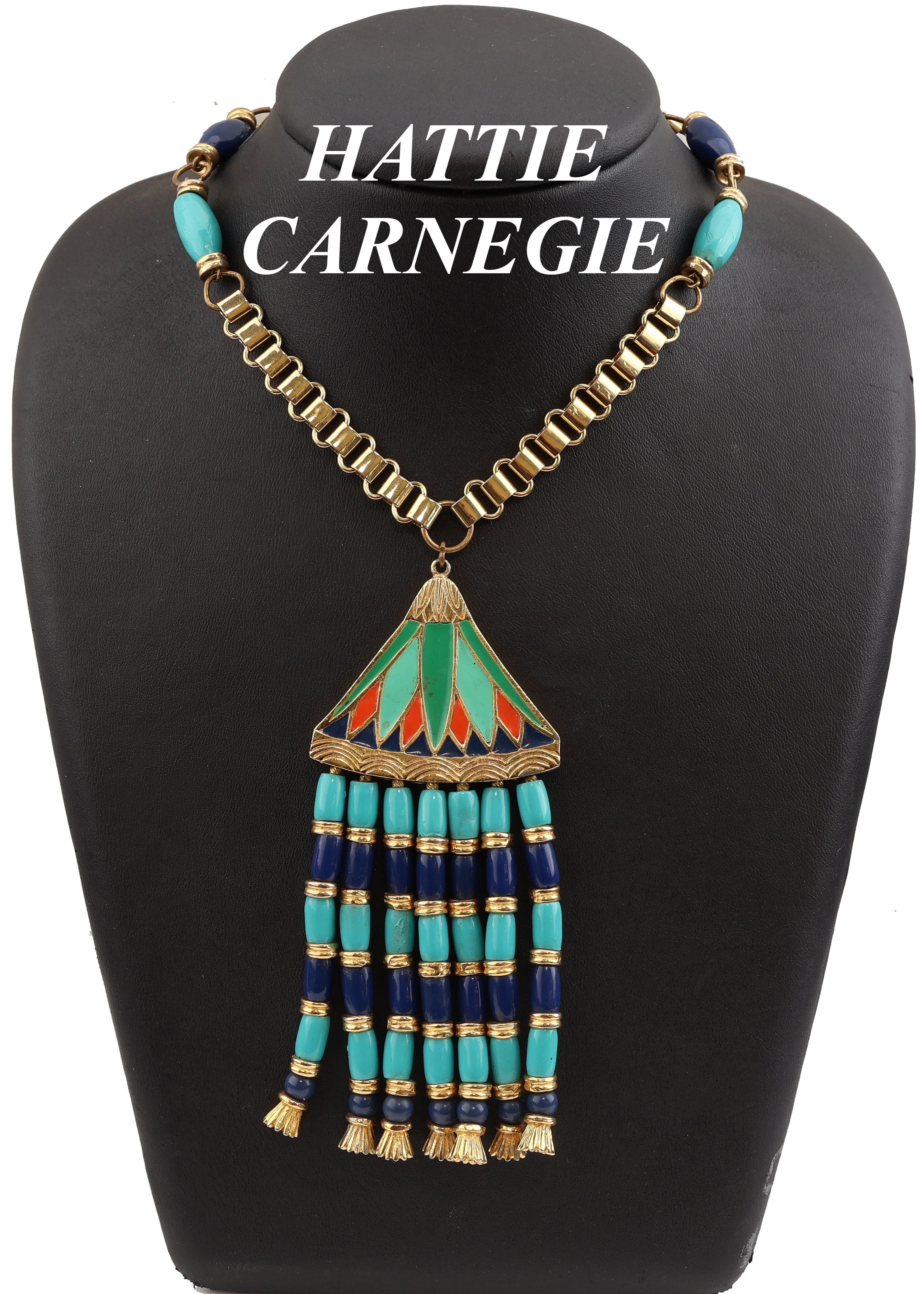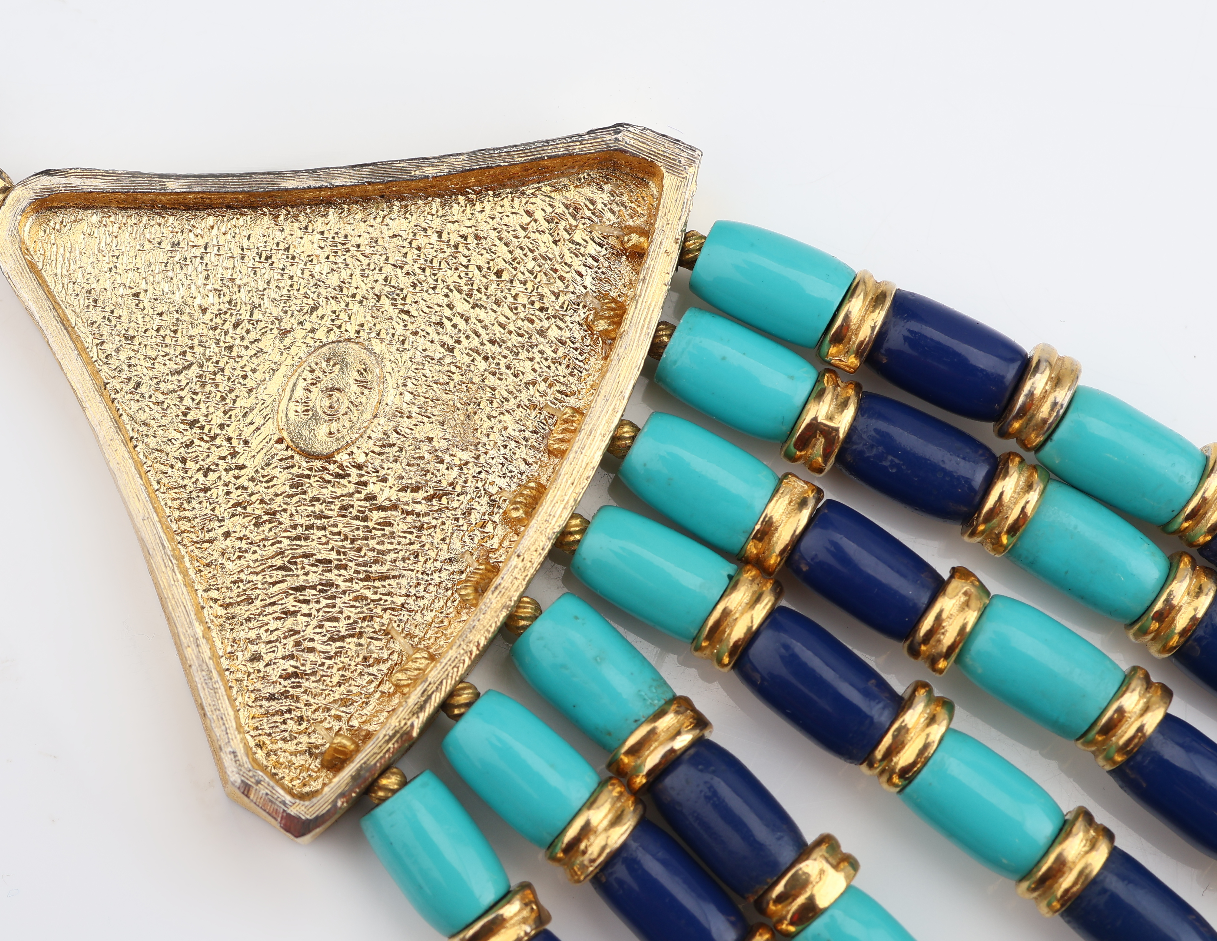 mit ägyptisierenden Elementen, bunt emailliert, Abhängungen mit blauen und türkisfarbenen
