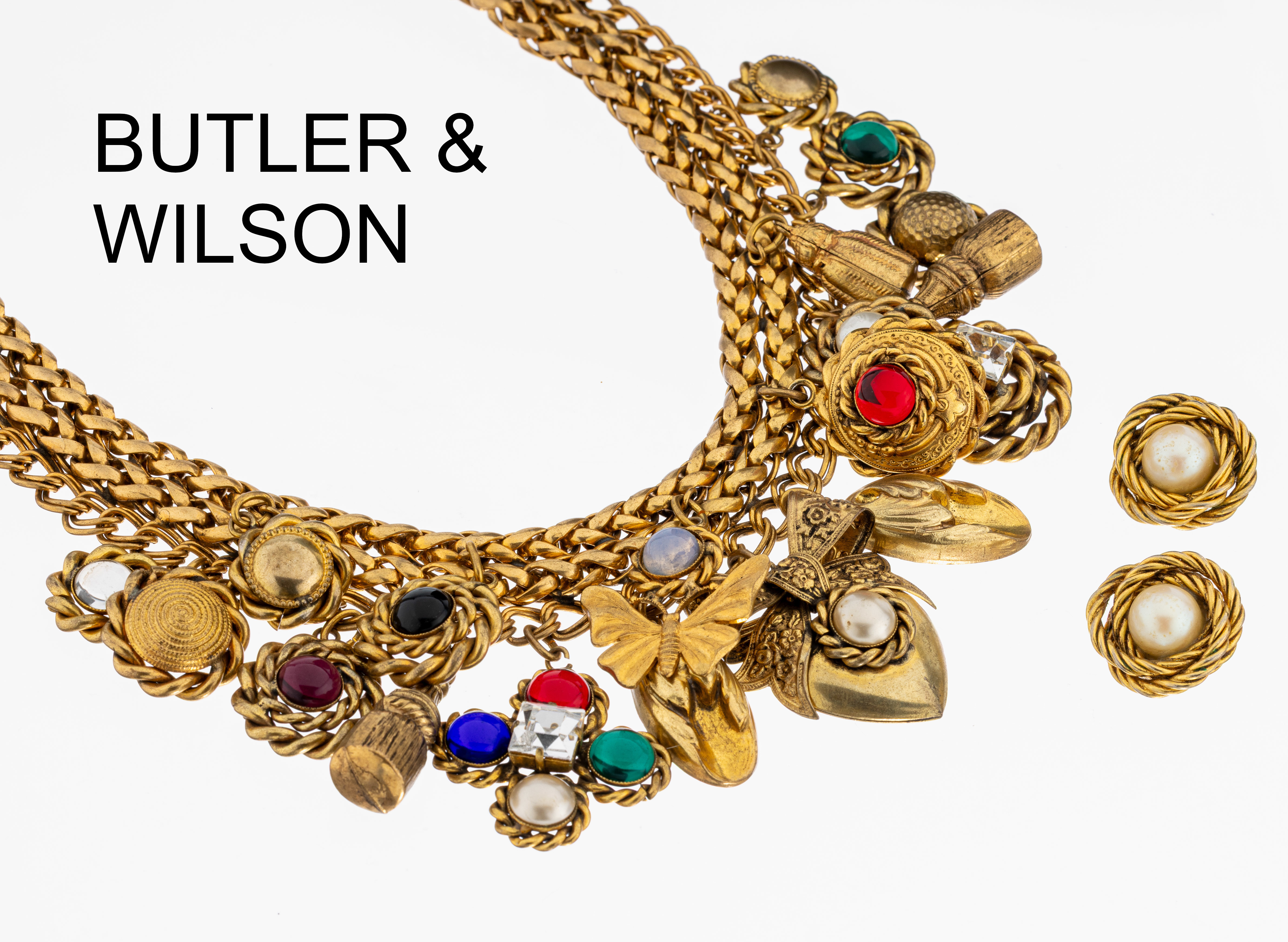 Ausgefallenes Modeschmuckset von BUTLER & WILSON, Metall vergoldet, best. aus: Collier
