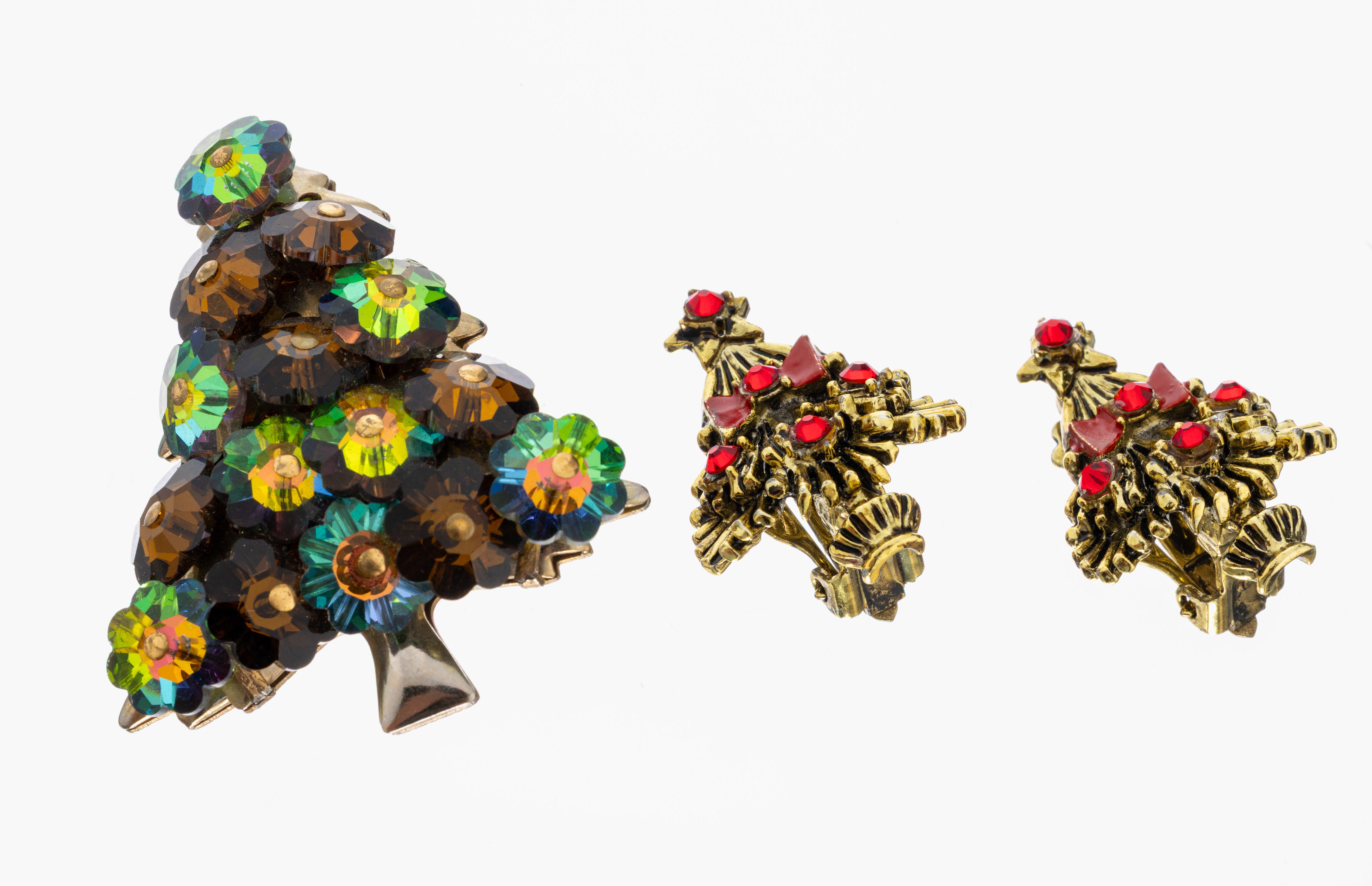 Konvolut Modeschmuck "Tannenbaum", USA 1960er Jahre, Metall vergoldet, best. aus:Brosche