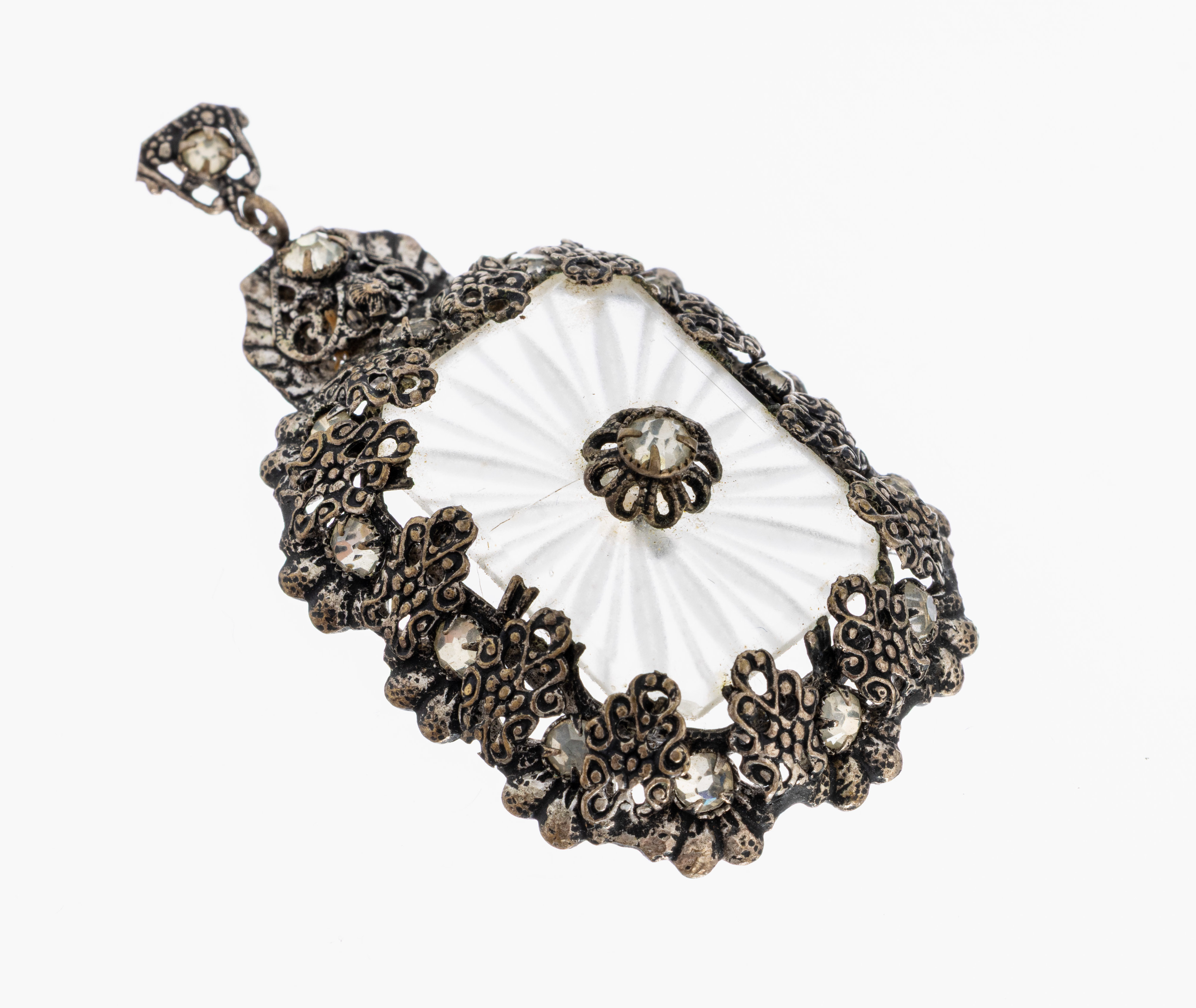 Bergkristall, Fassung mit farblosen Strasssteinen, ca. 5.5 x 3.1 cm