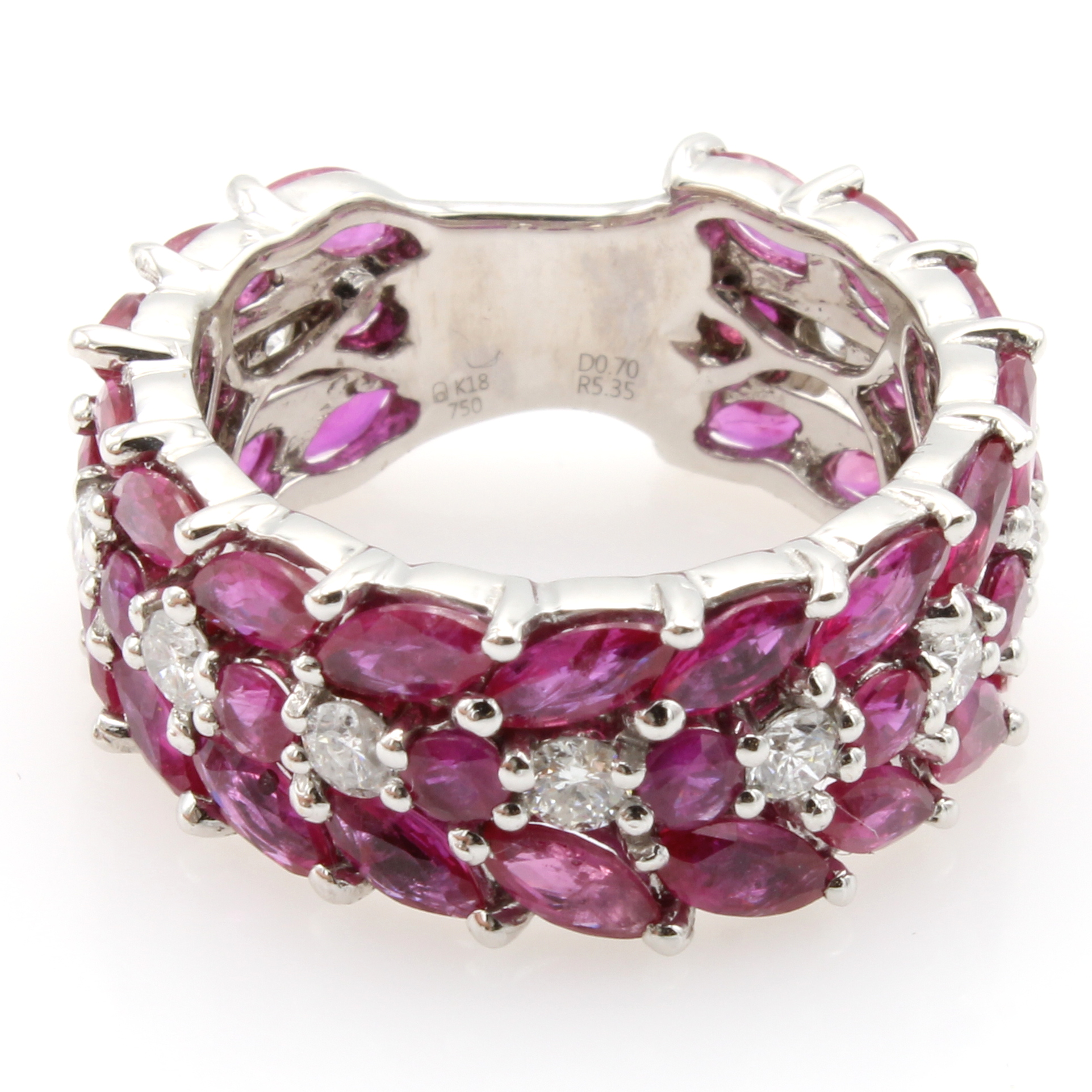 Ring mit Rubinen und Brillanten, WG 750/000,42 Brill. zus. ca. 5.35 ct, 11 Brill. zus. ca.0.70 ct Weiß/si-p, RW ca. 55 Schätzpreis: 5600, - EUR