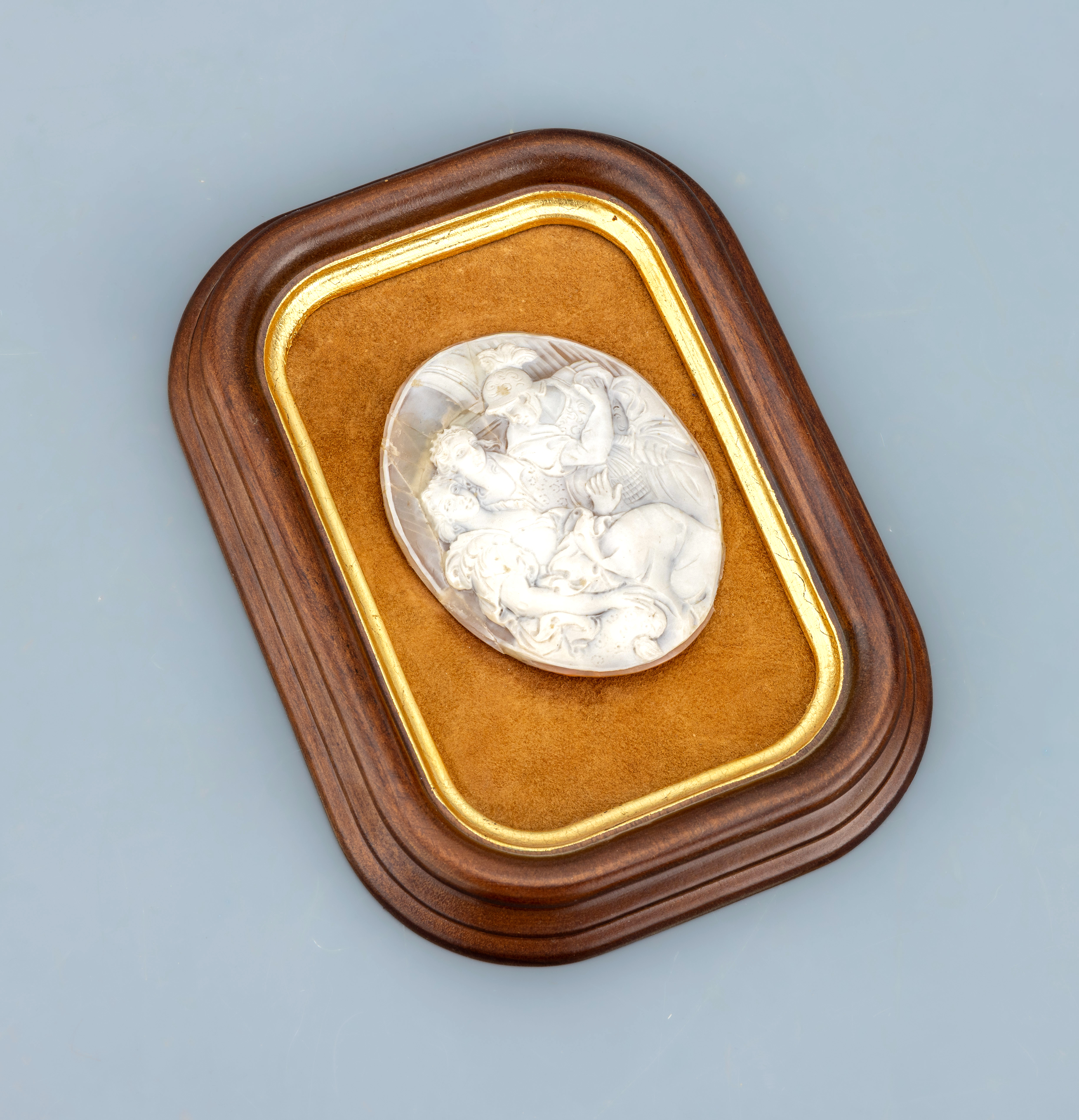 Muschelkamee mit Schaurahmen, ovale Muschelkamee, Darstellung wohl Mars und Venus