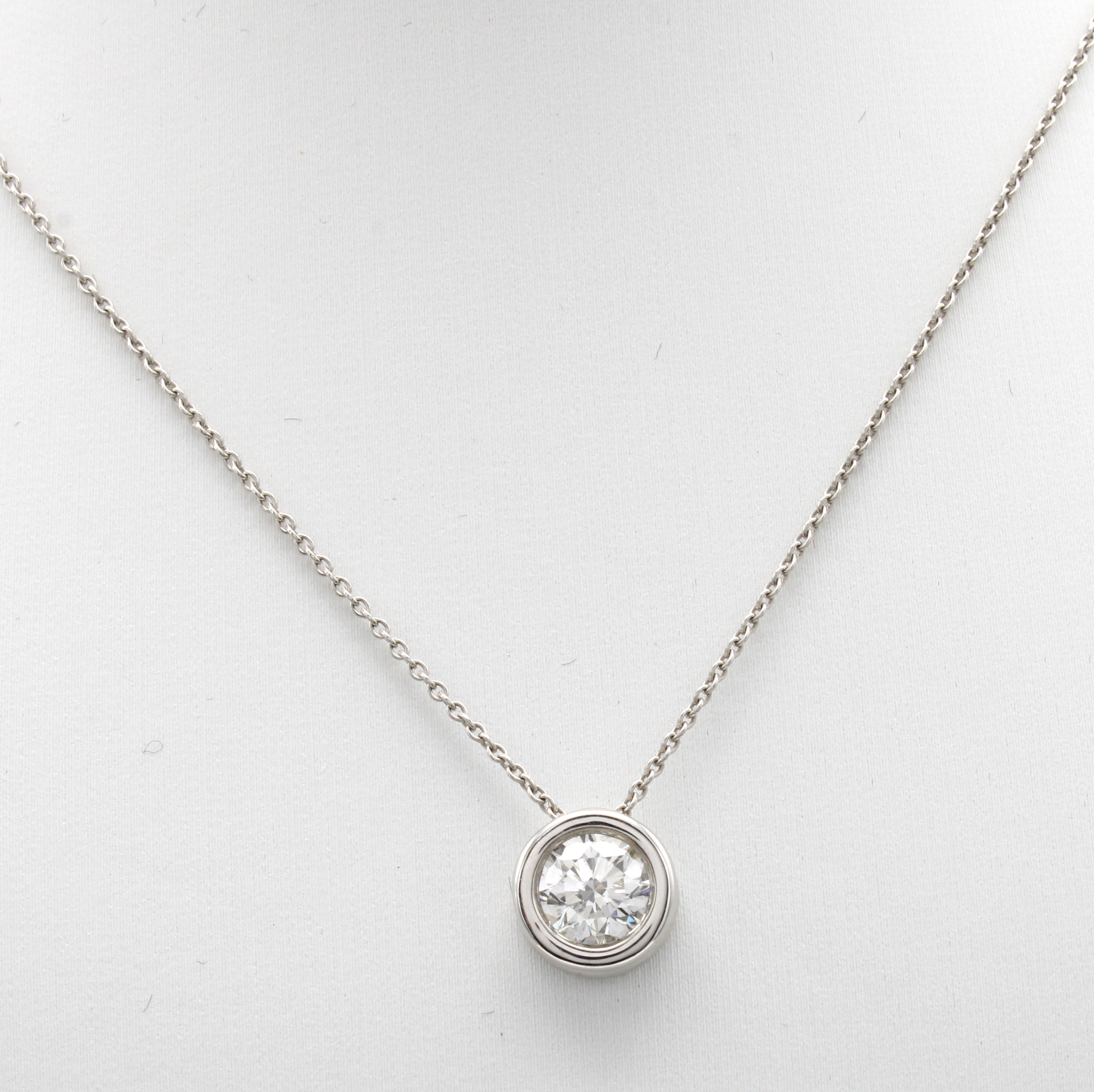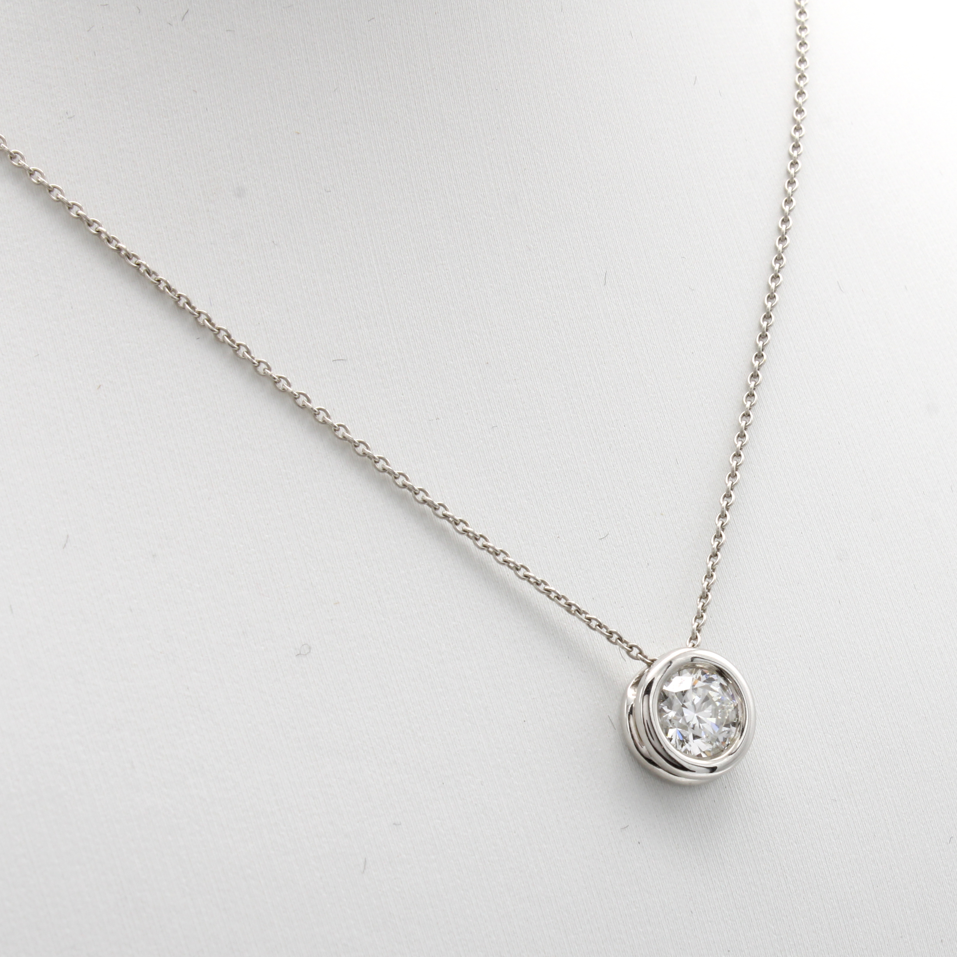 Collier mit Brillantsolitär, WG 750/000, Brill. in Zargenfassung ca. 1.00 ct Weiß/si, L. ca. 42 u. 45 cm Schätzpreis: 7500, - EUR