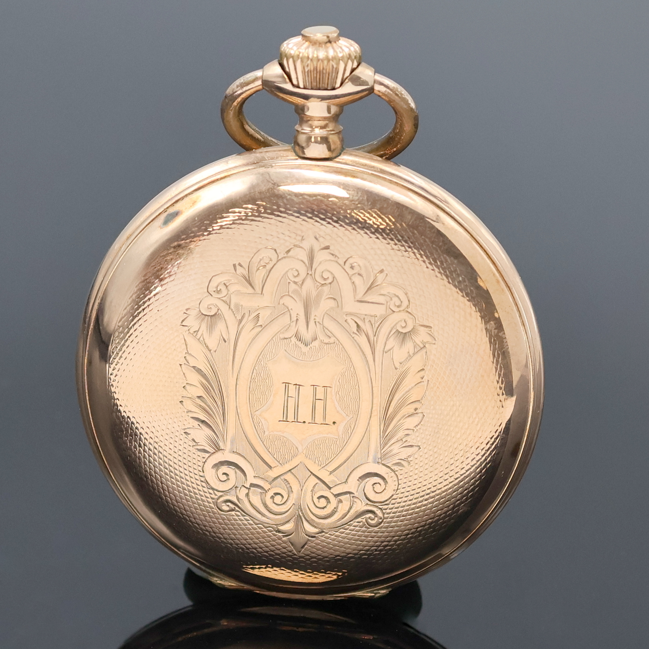 DÜRRSTEIN & Co. Savonette in RG 333/000, Schweiz um 1910, guill. Geh. dell., Sprungdeckel