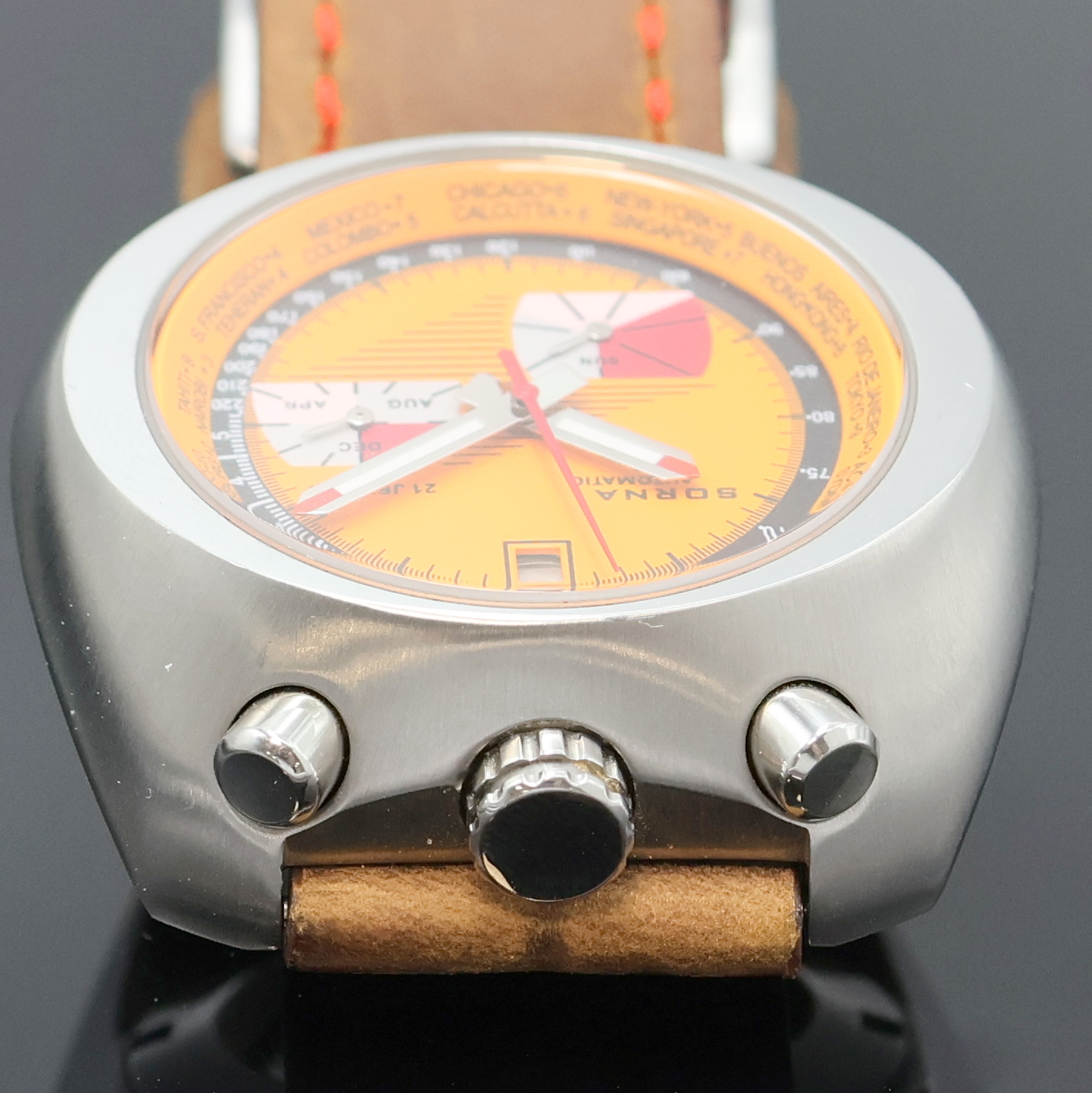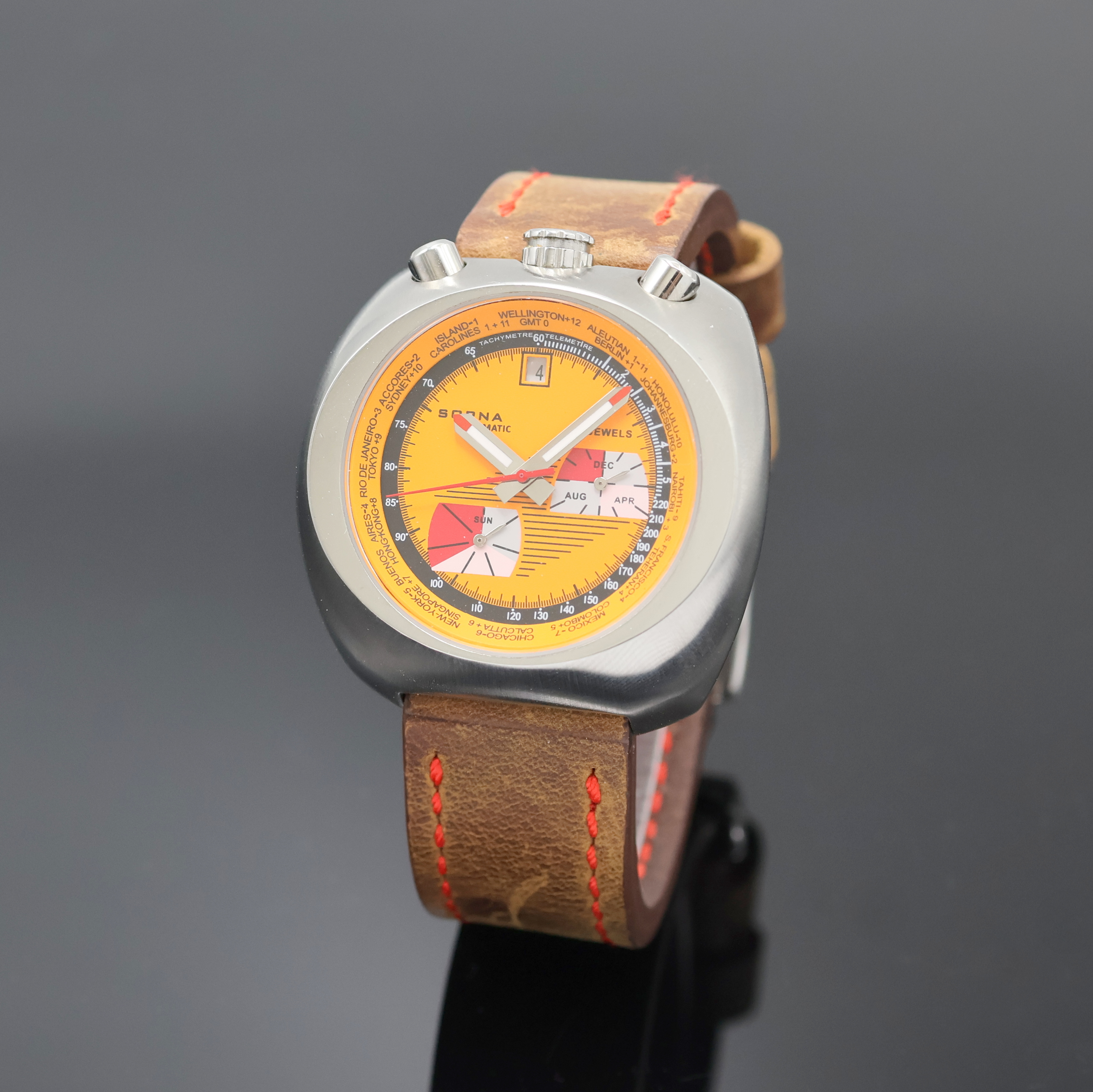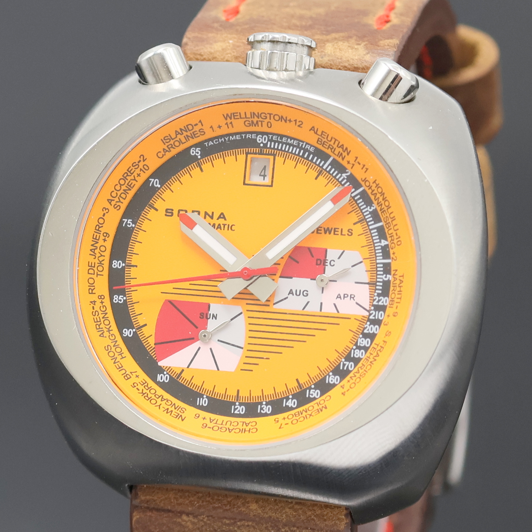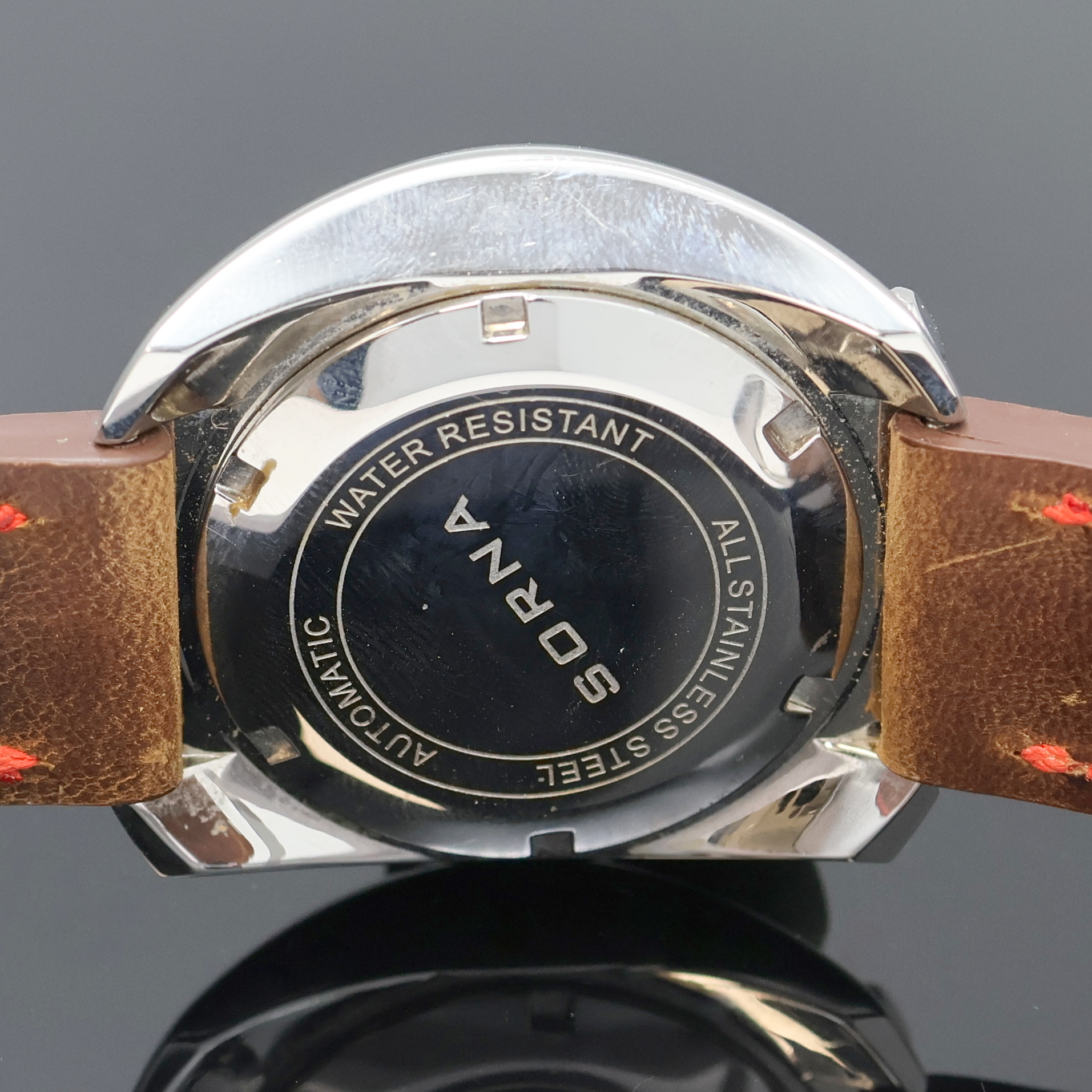 SORNA Herrenarmbanduhr in Stahl, Schweiz um 2020, Automatik, Edelstahlgeh., Boden