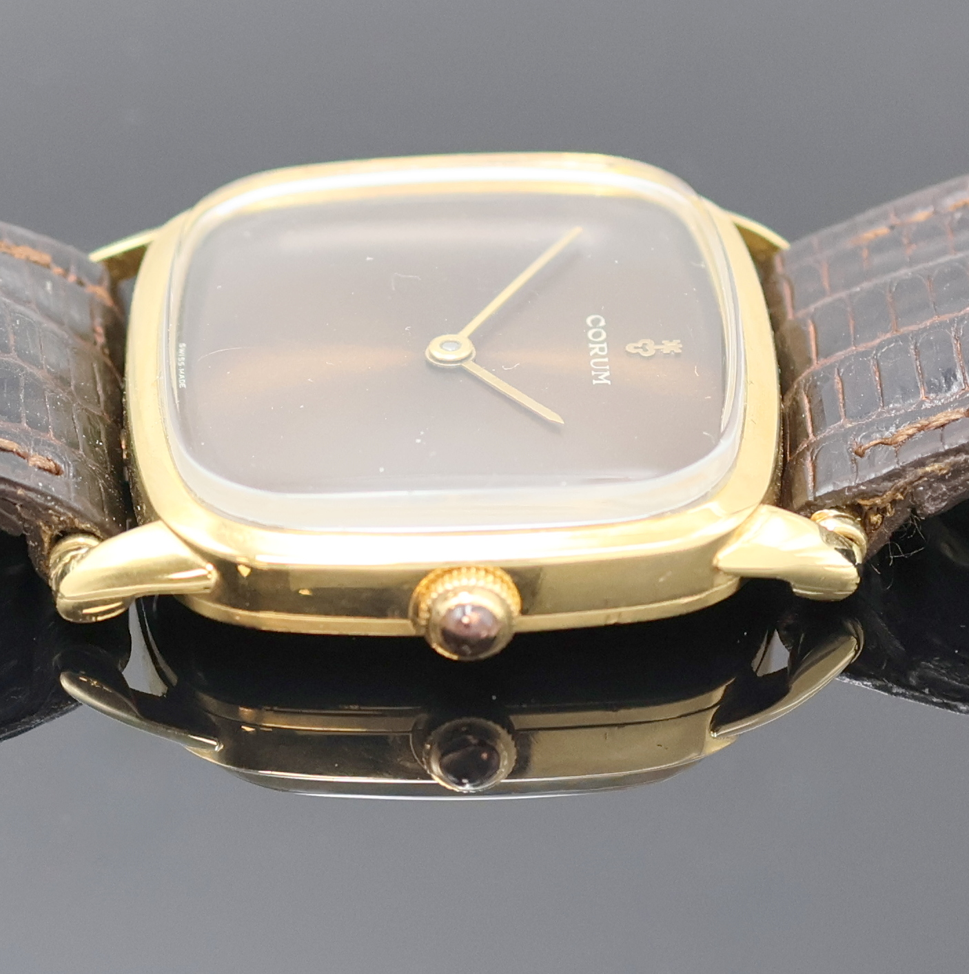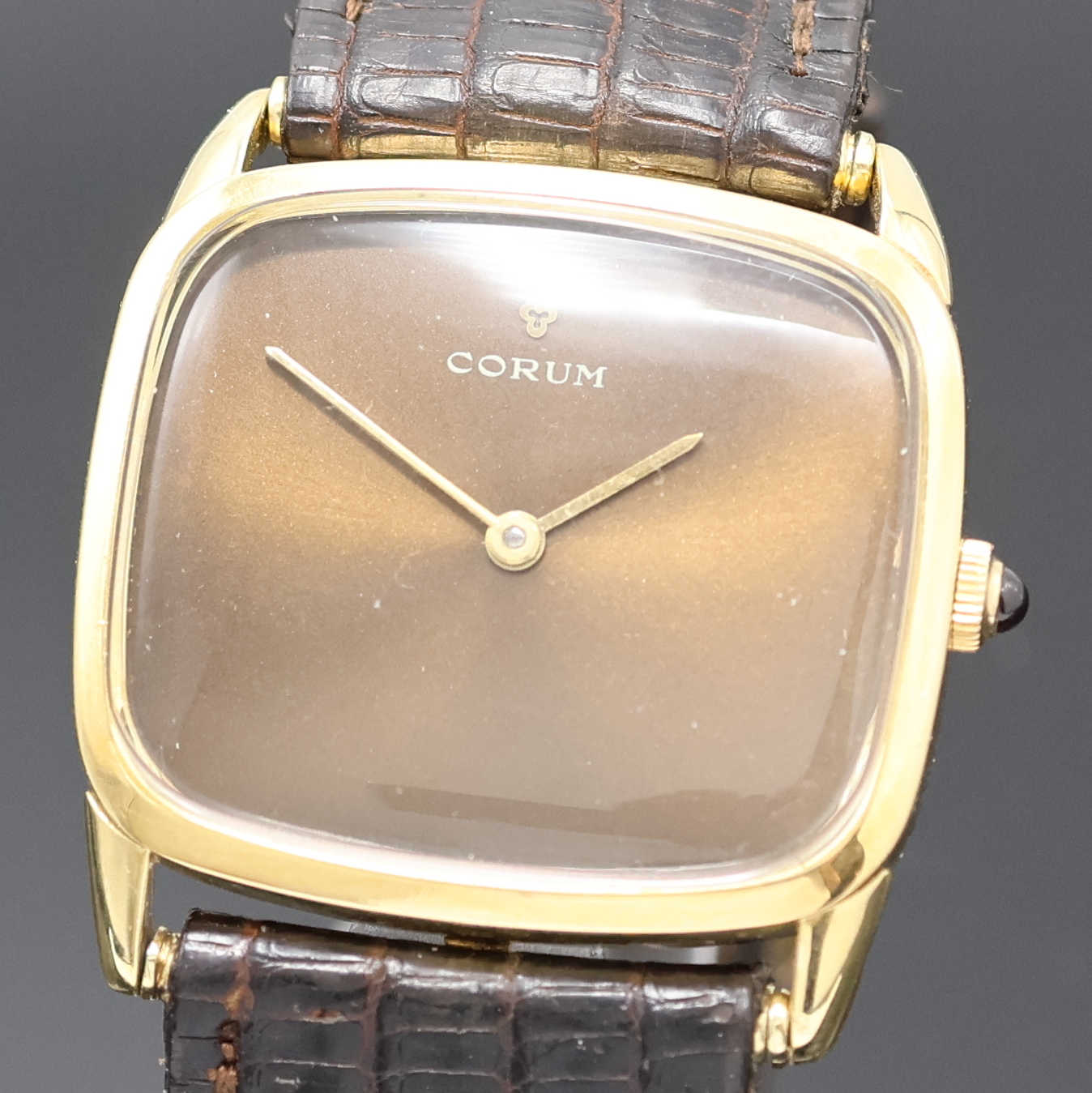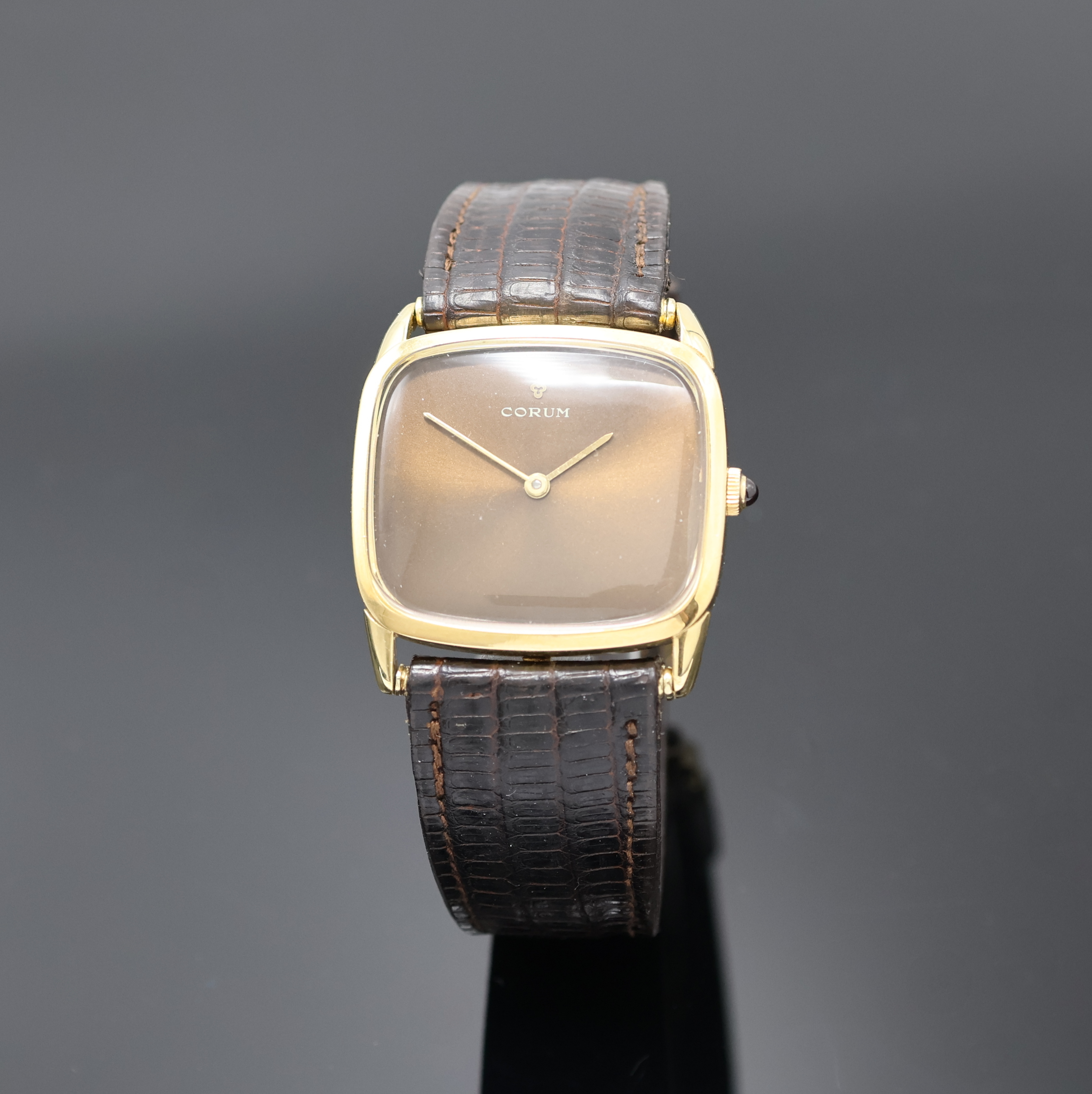 CORUM Armbanduhr in GG 750/000, Schweiz um 1970, Handaufzug, 2-tlg. Geh., Boden aufgedr.,