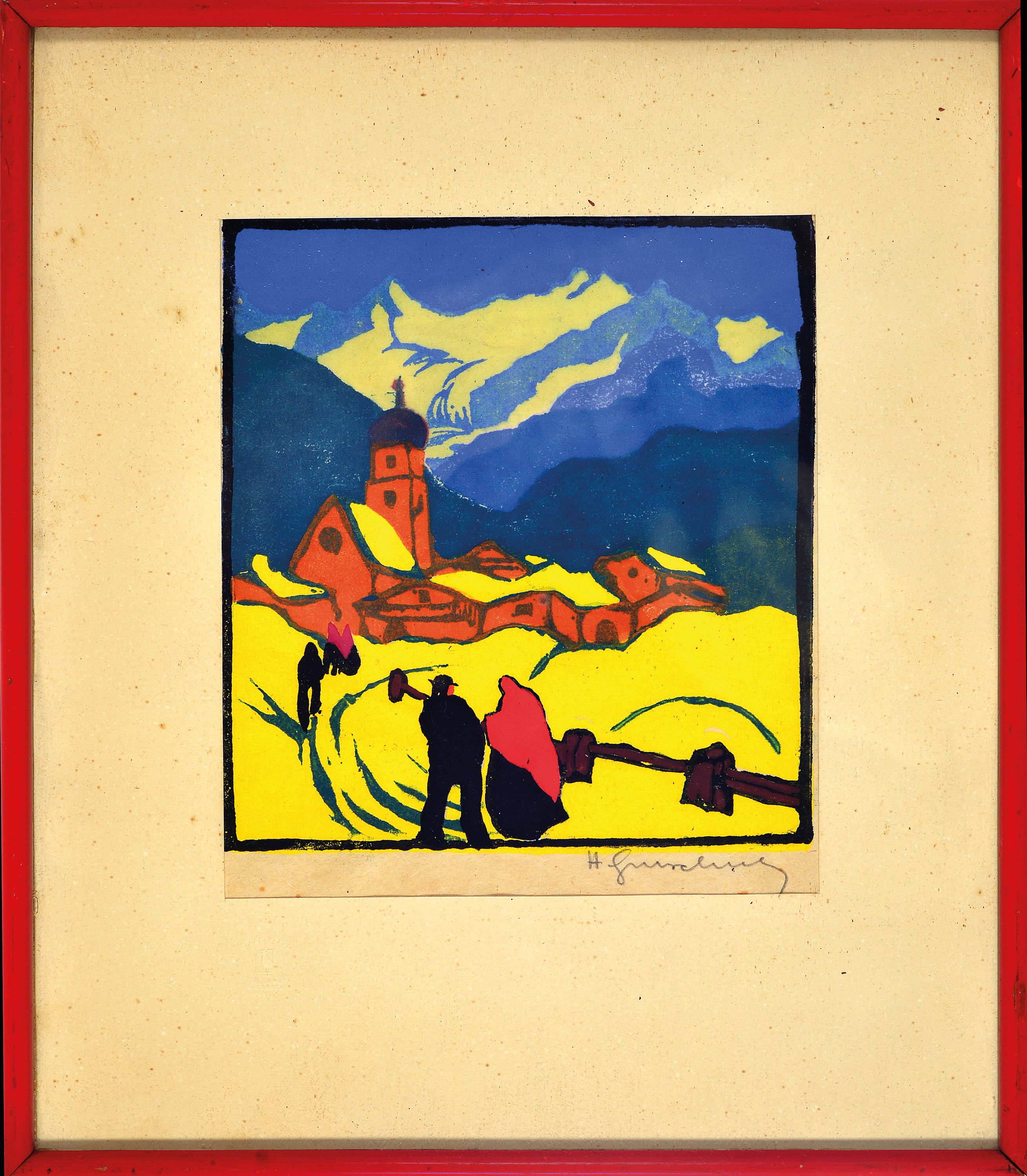 Herbert Gurschner, 1901 Innsbruck-1975 London , Farbholzschnitt, "Wintertag", handsigniert,