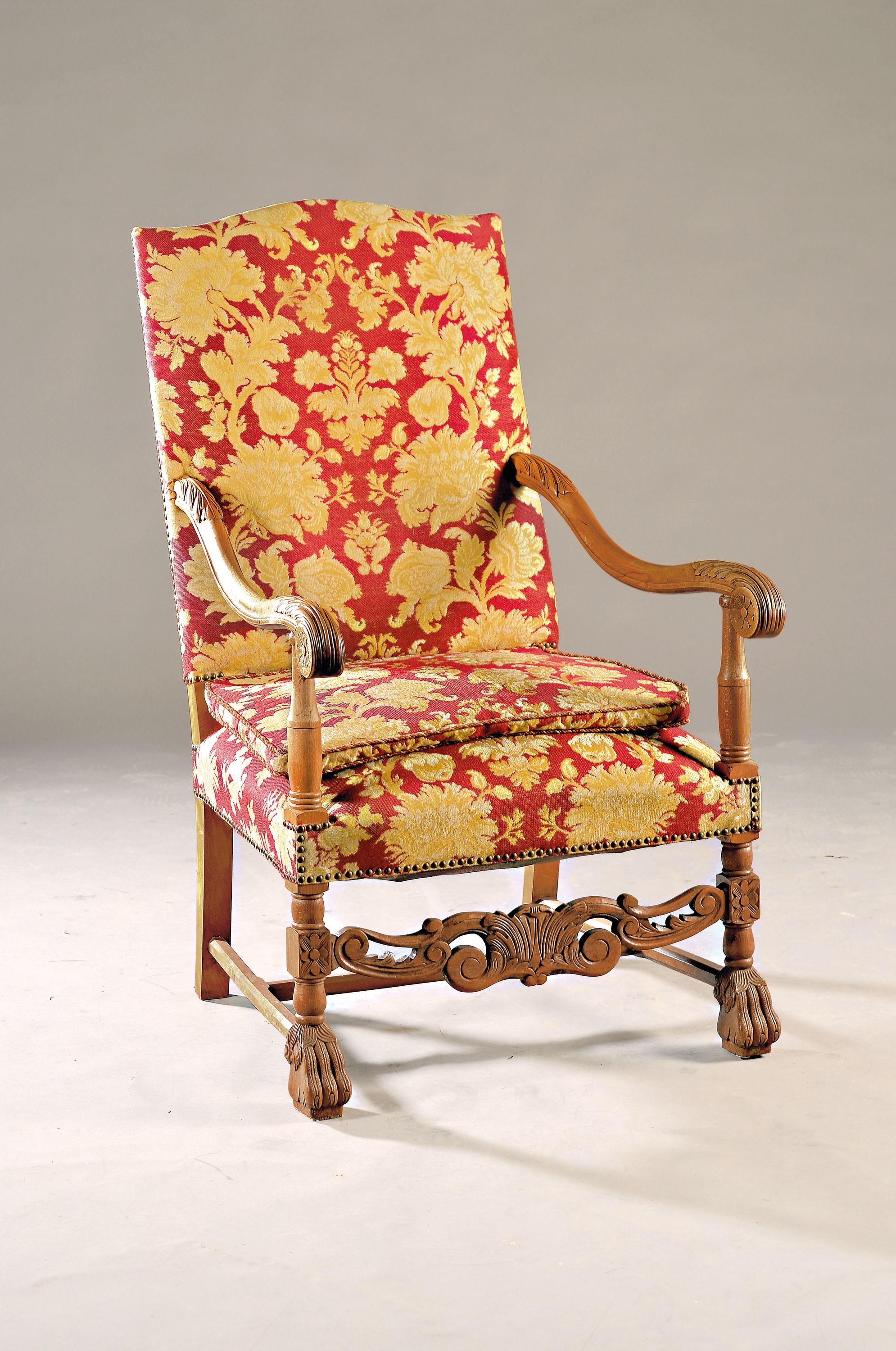 Akanthus und angedeuteten Löwenfüssen, Sitzkissen, l. Gebr.-sp., ca. 109x64 cm,
