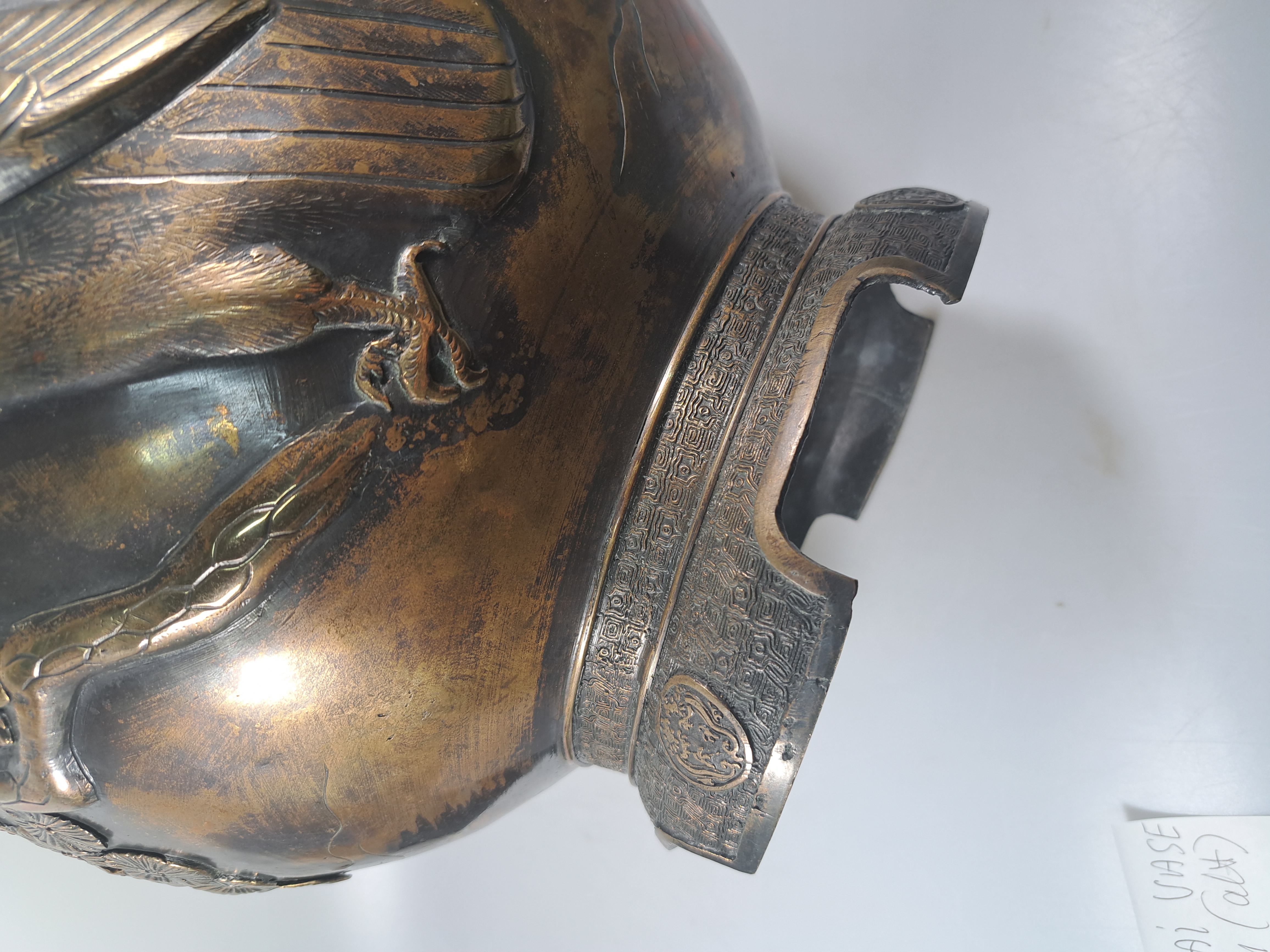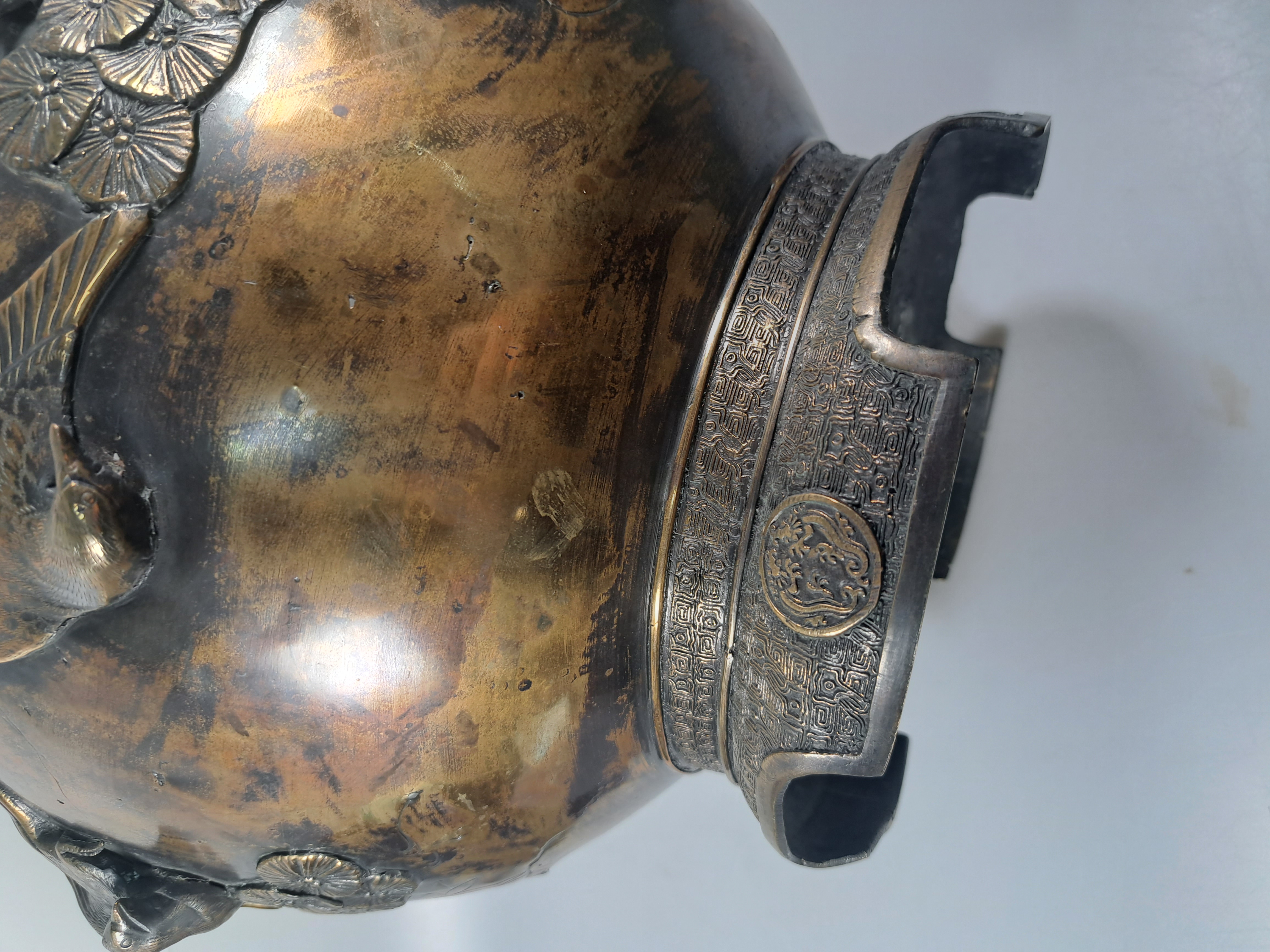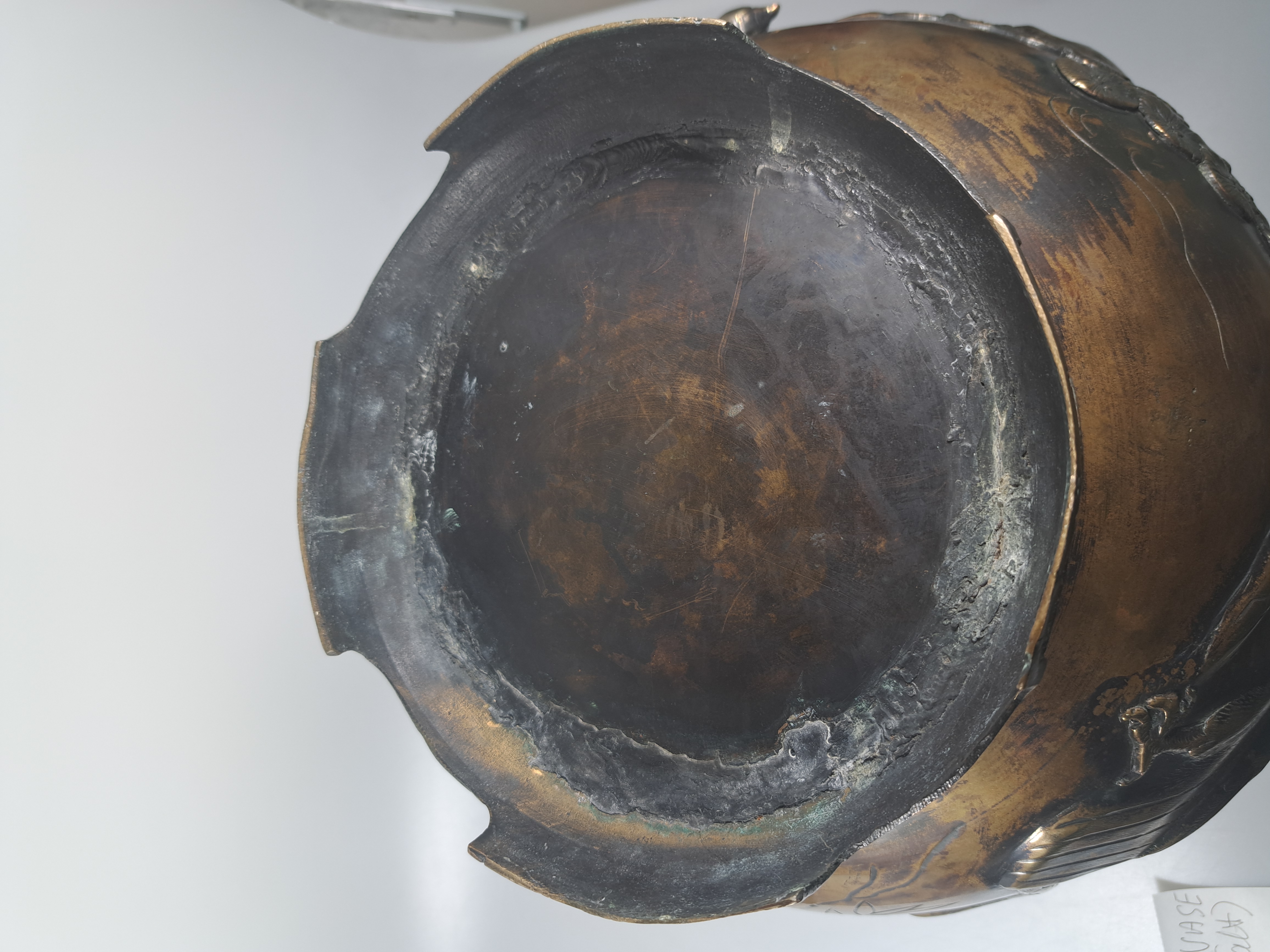 Bonsaitopf, Japan, späte Meiji oder Taisho -Zeit, Bronze, umlaufende Reliefzier