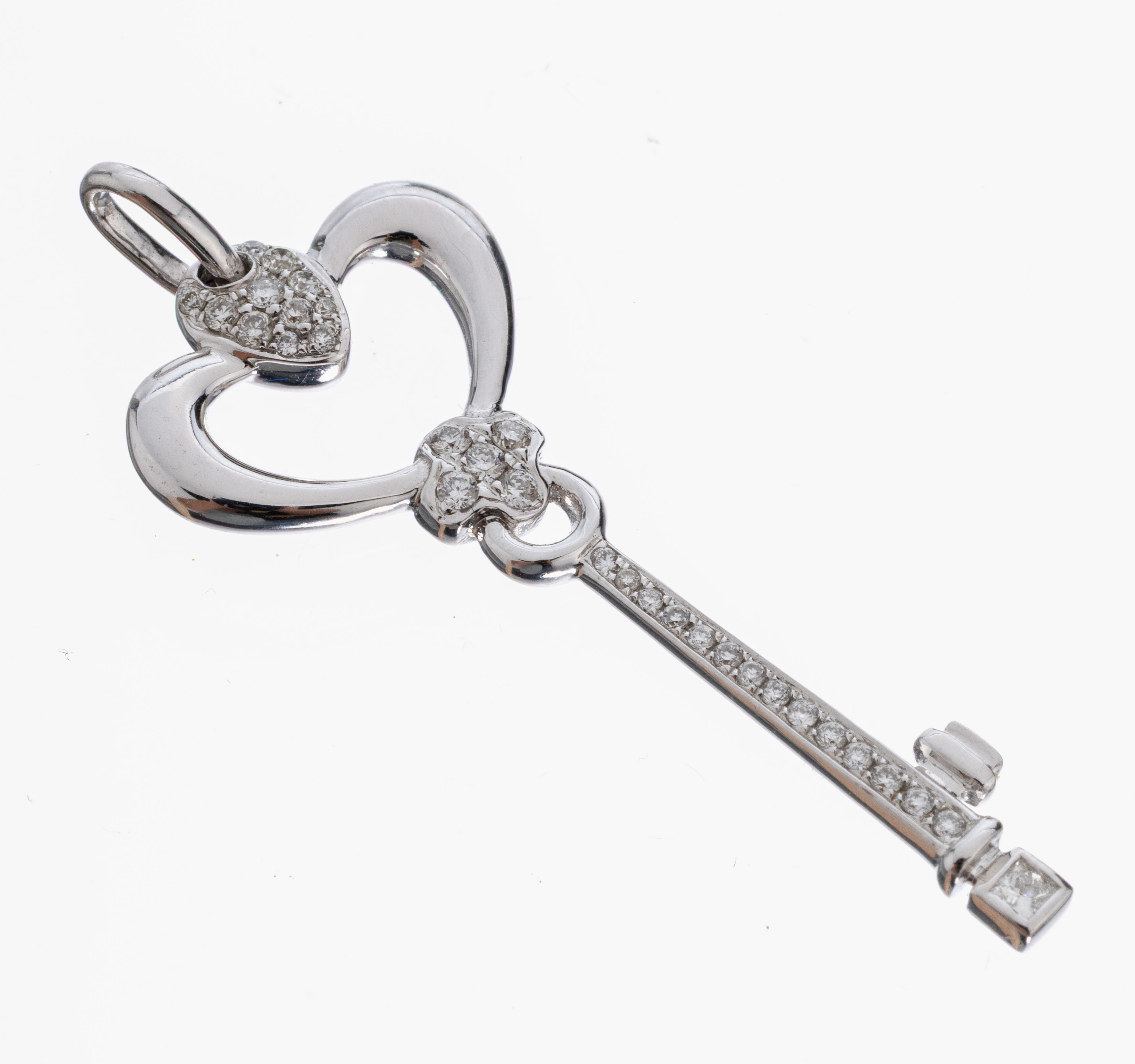 18 kt Gold Diamant-Anhänger, WG 750/000, Darstellung eines Schlüssels, 30 Brillanten