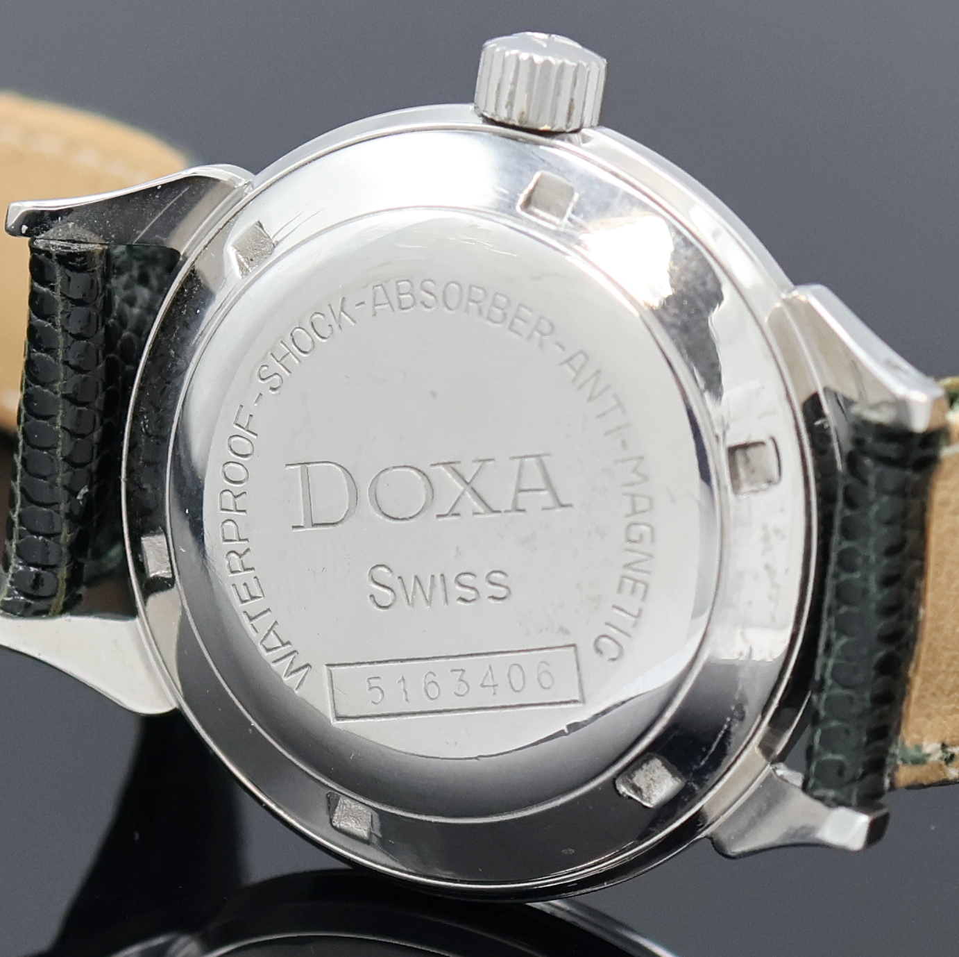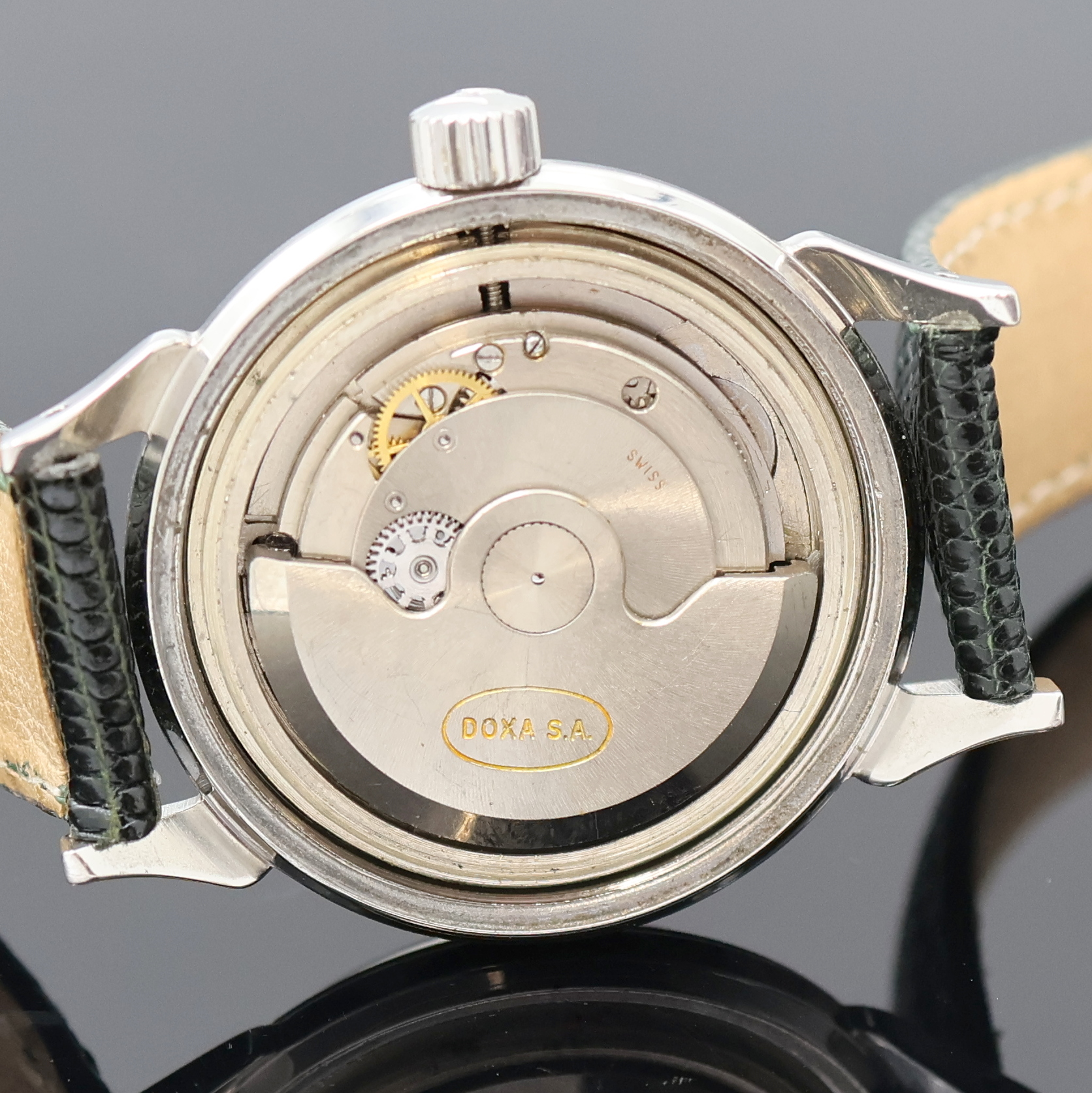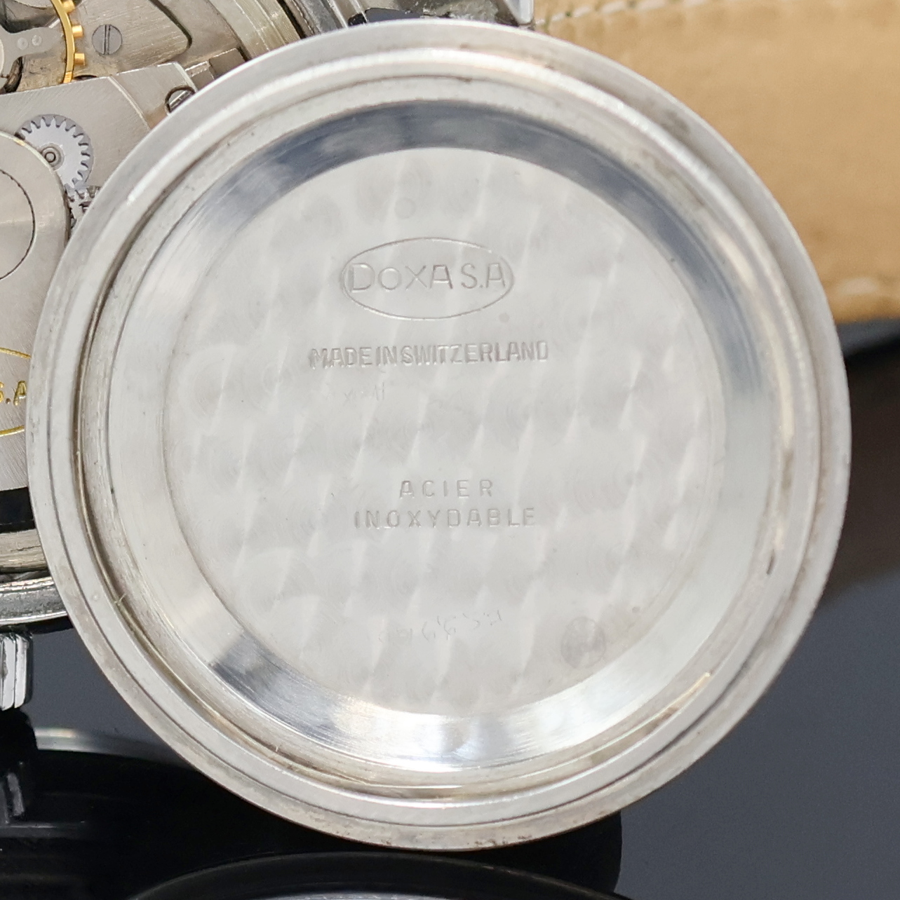 DOXA Herrenarmbanduhr in Stahl, Schweiz um 1960, Automatik, Boden verschr., silb.