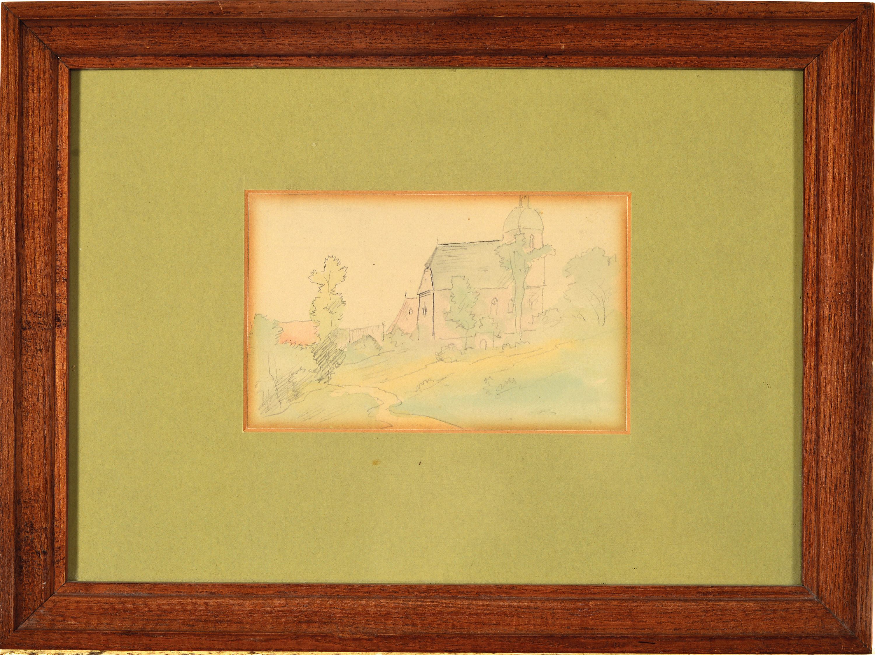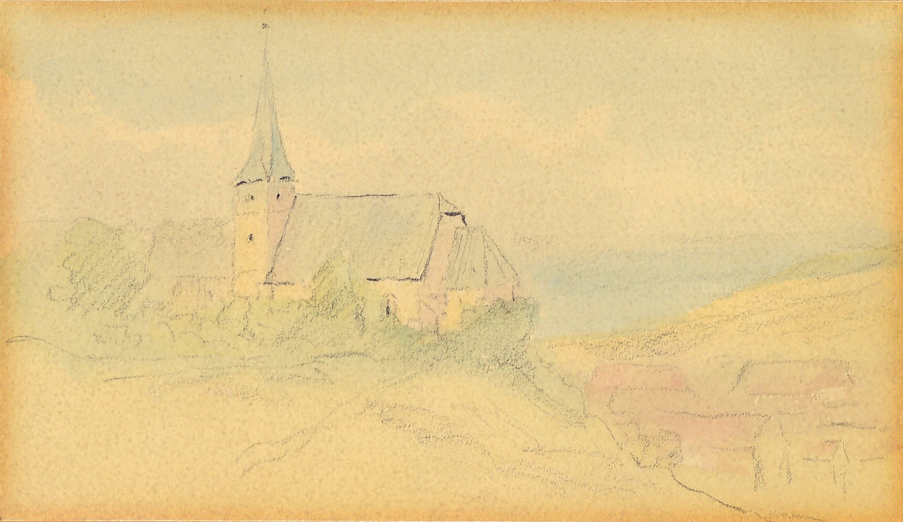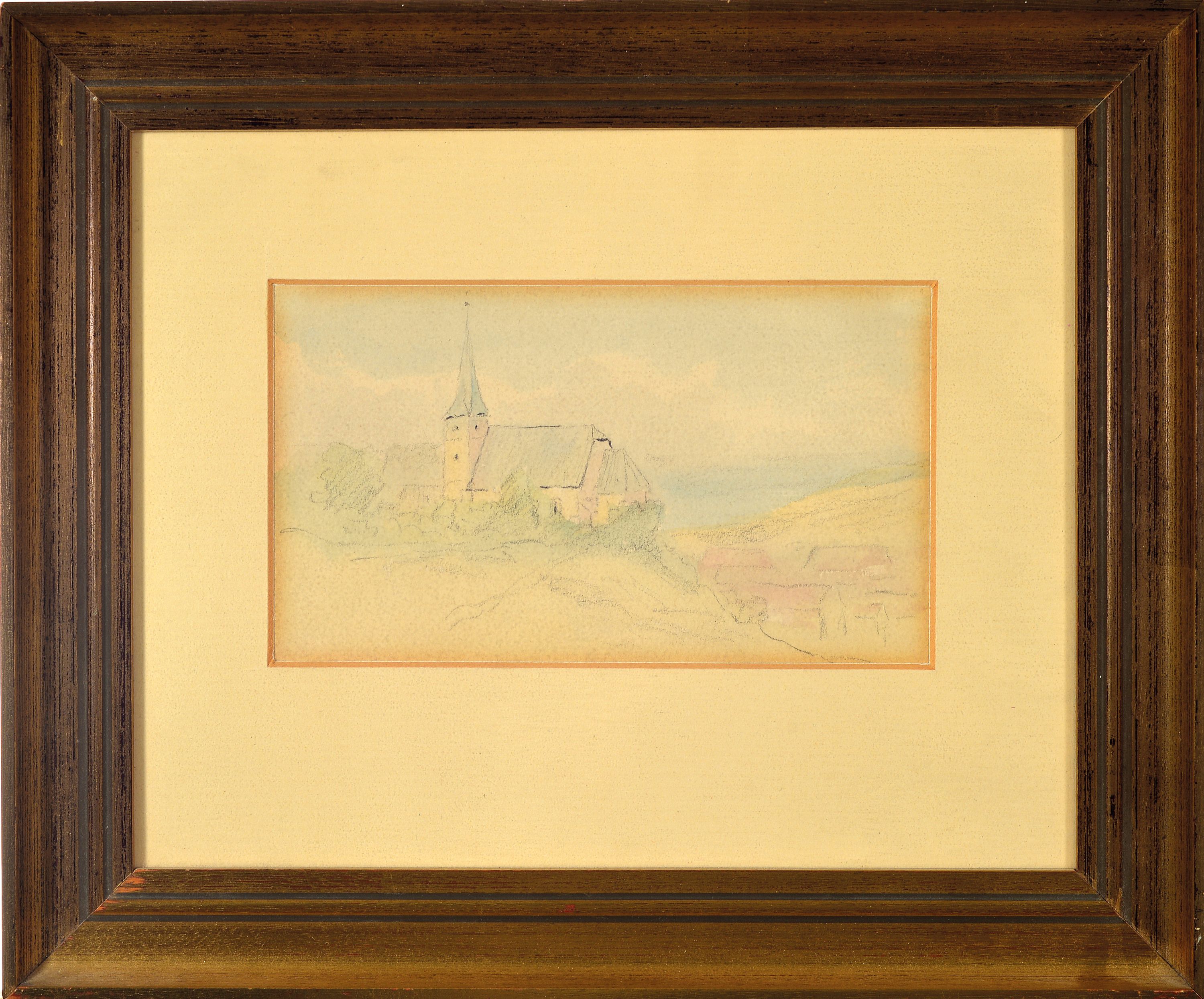 Malerkolonie, 2 aquarellierte Zeichnungen: Ansicht verschiedener Kirchen im Taunus,