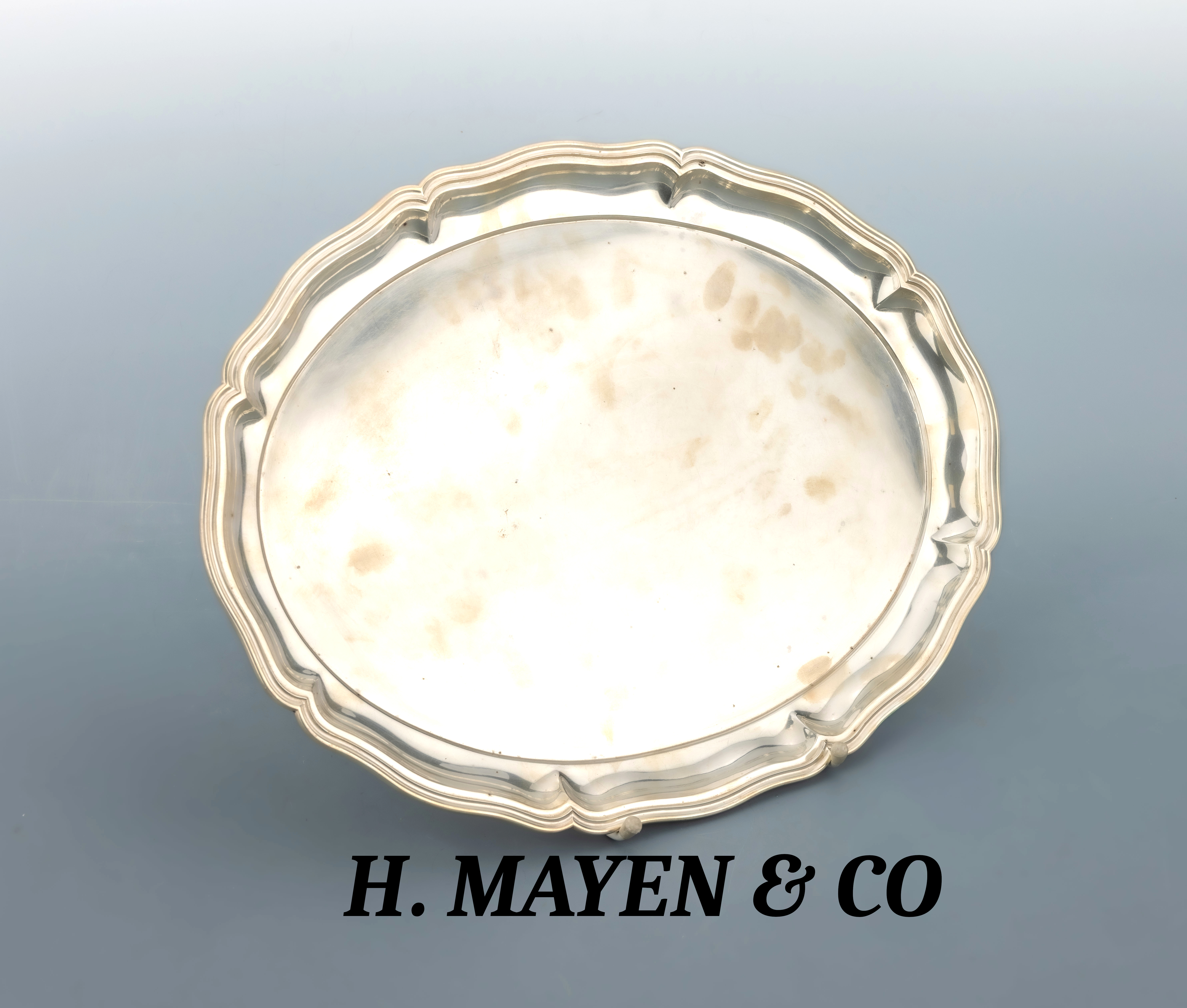 Großes Tablett, deutsch um 1900-1910, 800erSilber, schlichte ovale Form, l. hochgezogene