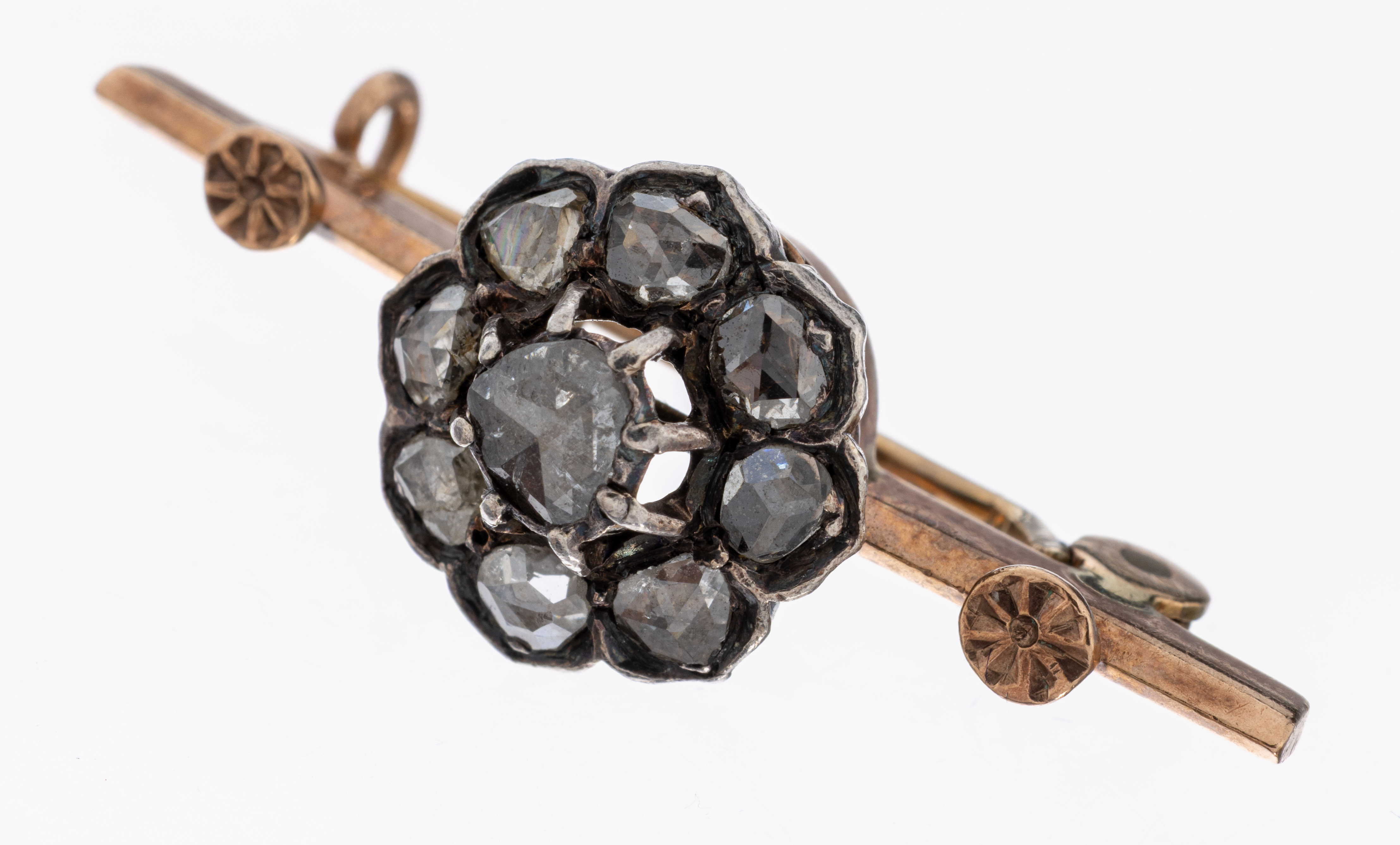 mit 9 in Silber gefassten Diamantrosen zus. ca. 0.50 ct, L. ca. 3.4 cm, ca. 3.7 g