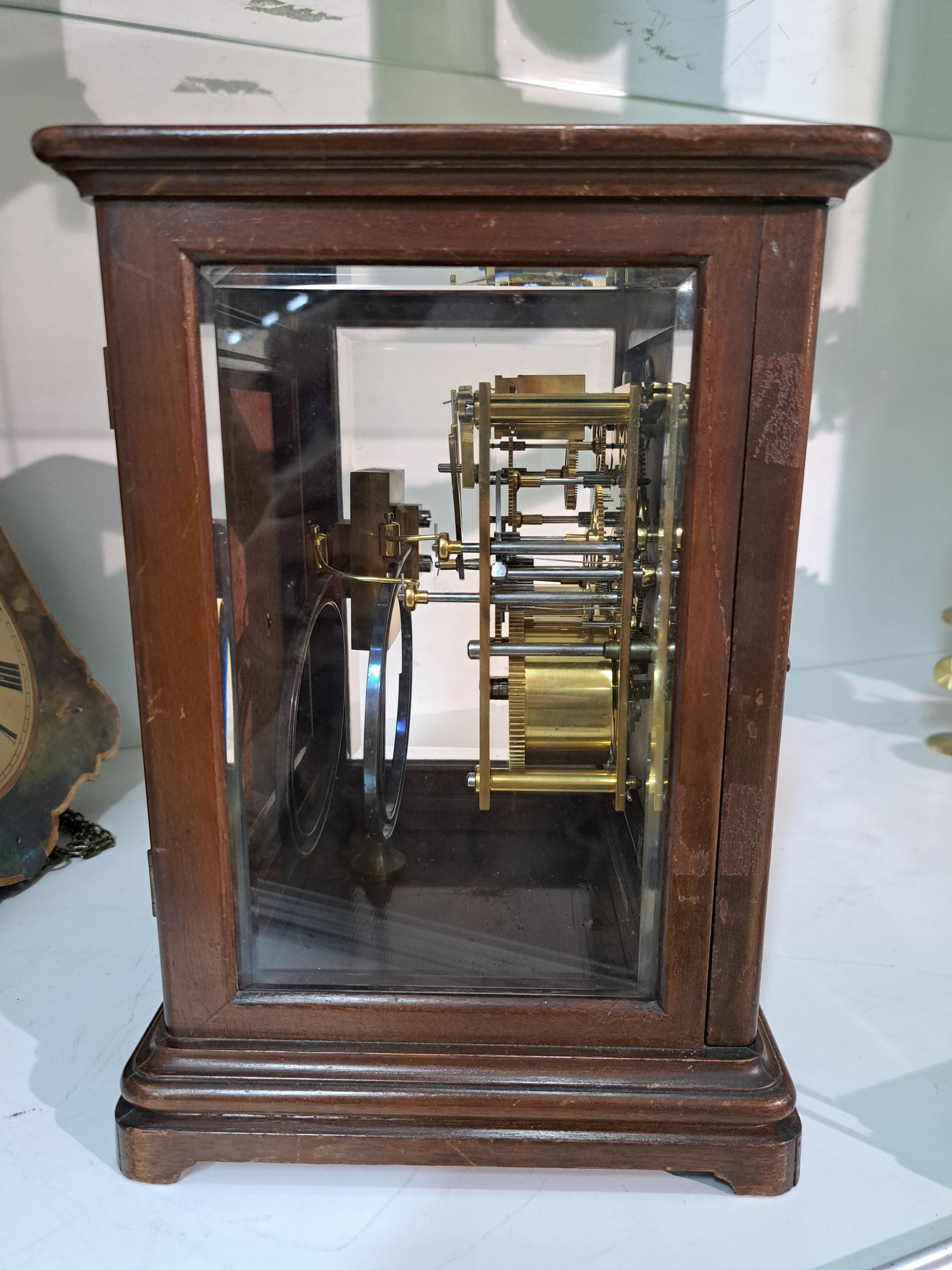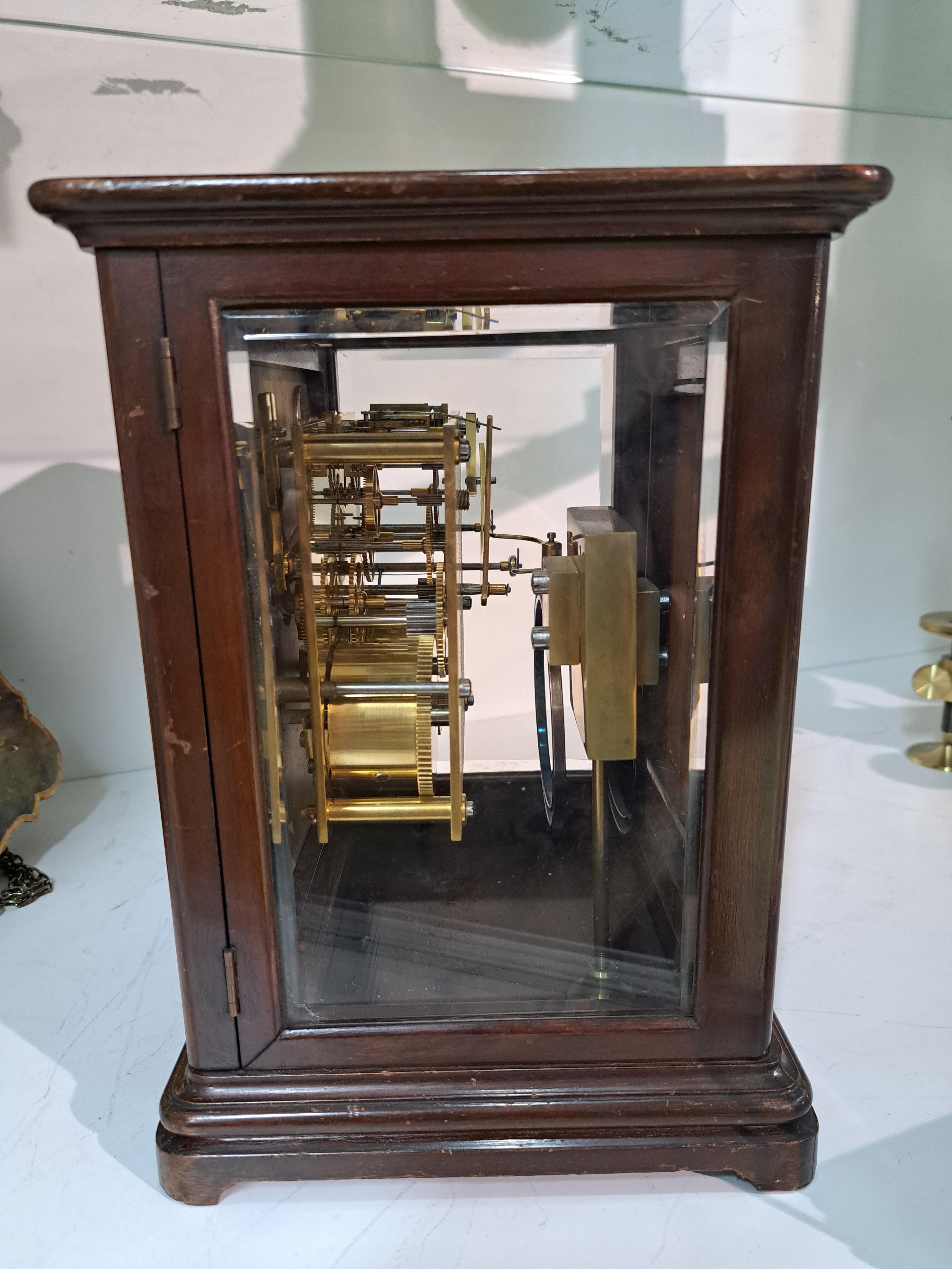 Tischuhr mit Petite Sonnerie, Aird Thomson Glasgow, London, Mahagonigehäuse dreiseitig