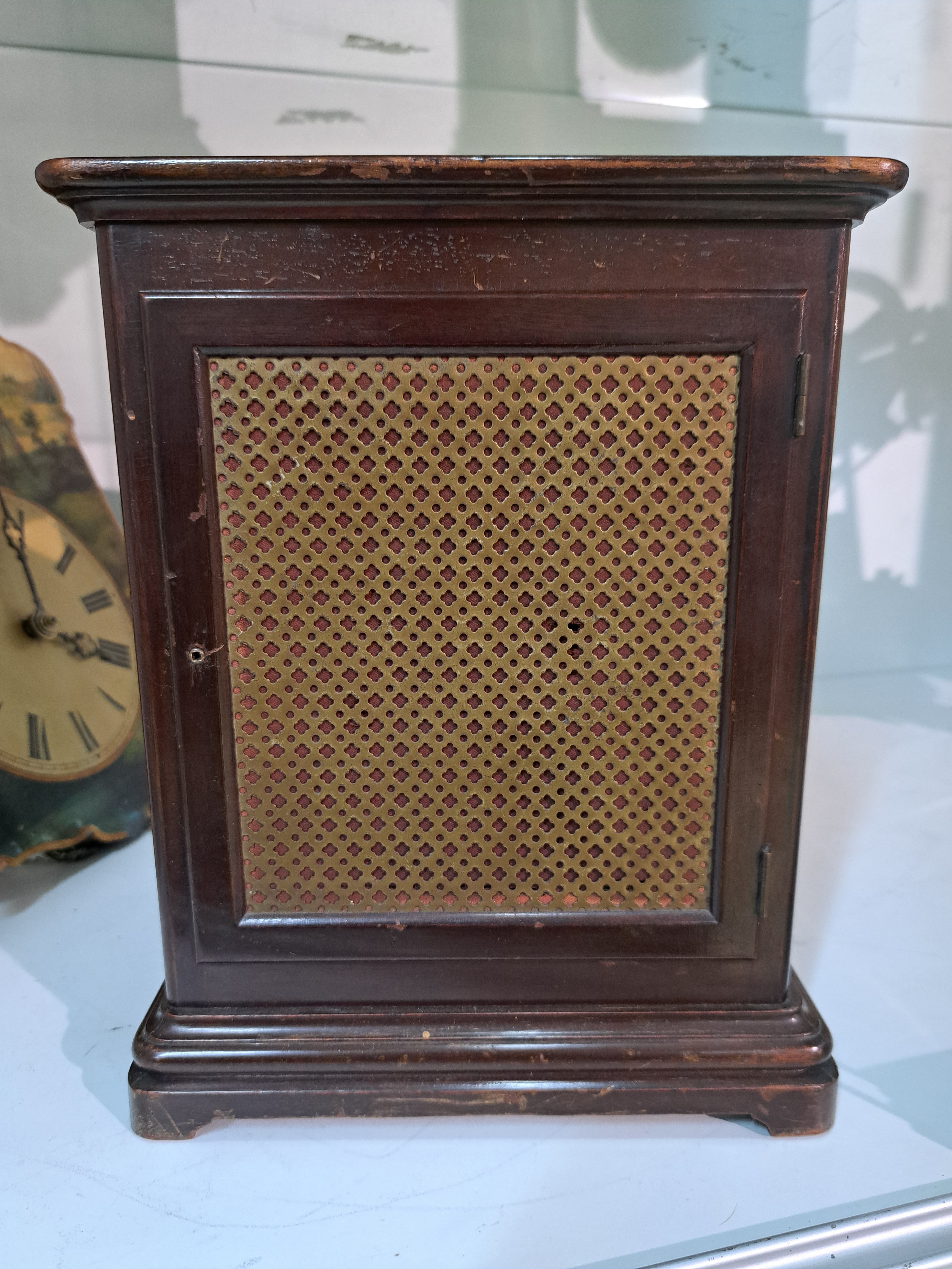 facett. verglast, hintere Türe mit Schallöffnung (Messinggitter und Stoff), versilbertes