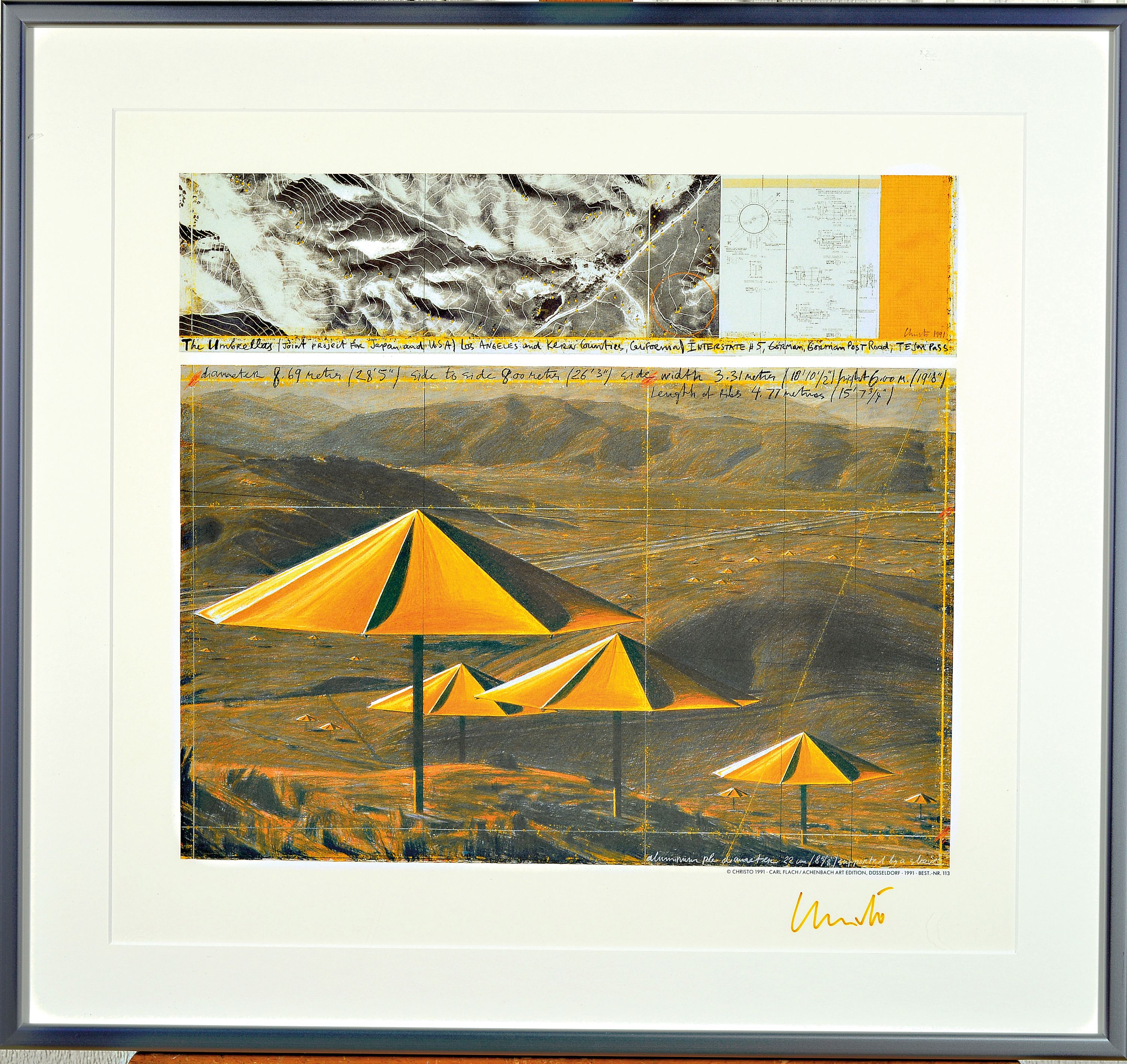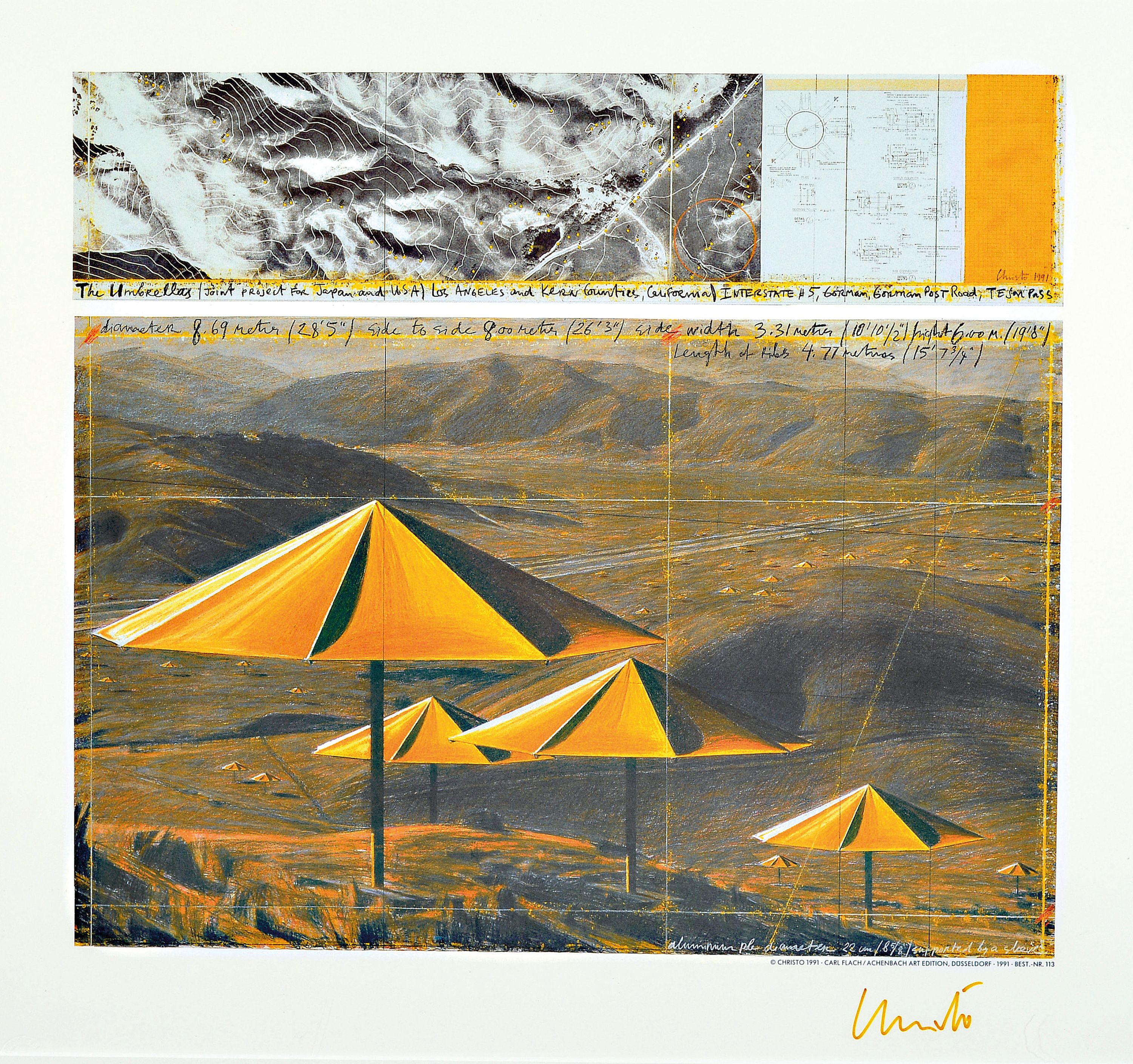 Christo, 1935-2020, "The Umbrellas", Offsetlithografie auf dünnem Karton, Achenbach