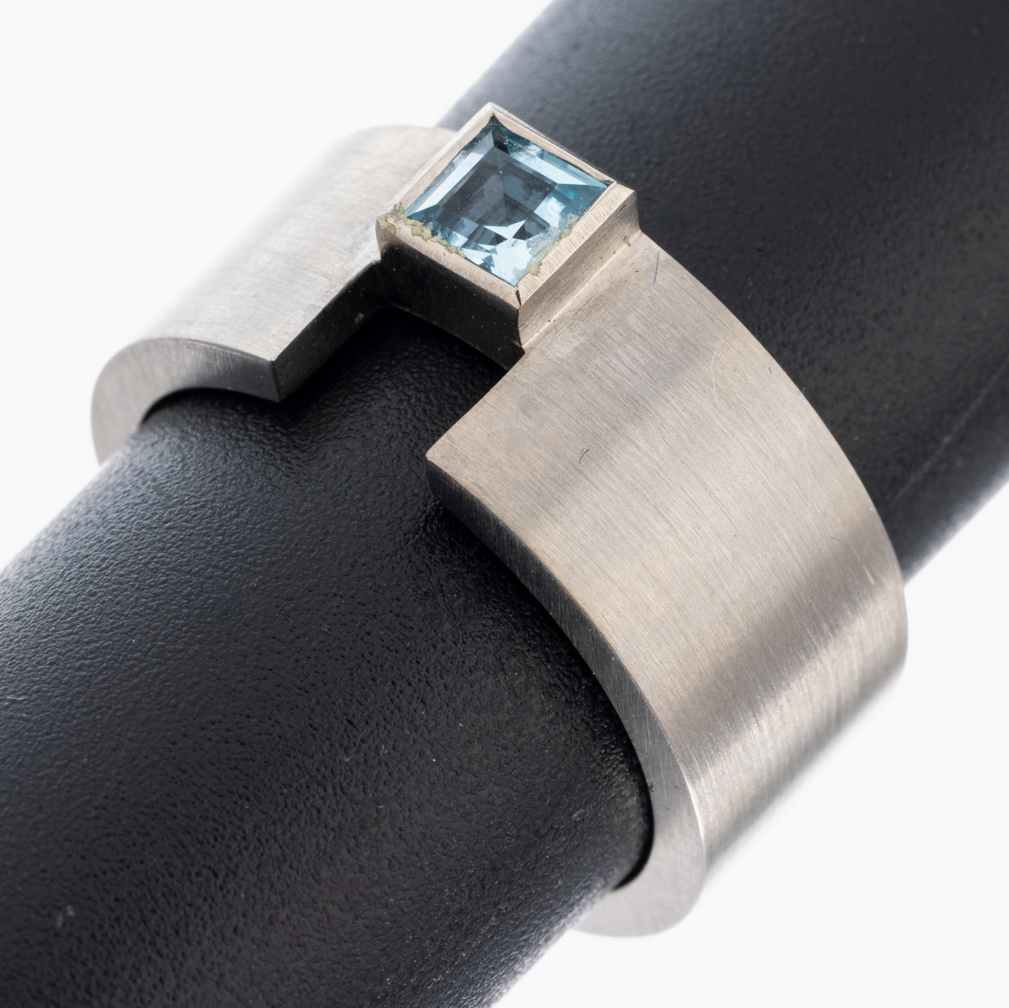 Palladium Topas-Ring, Pd 950/000, mattiert,Topas-Carree (beh.) ca. 0.25 ct, RW 55,