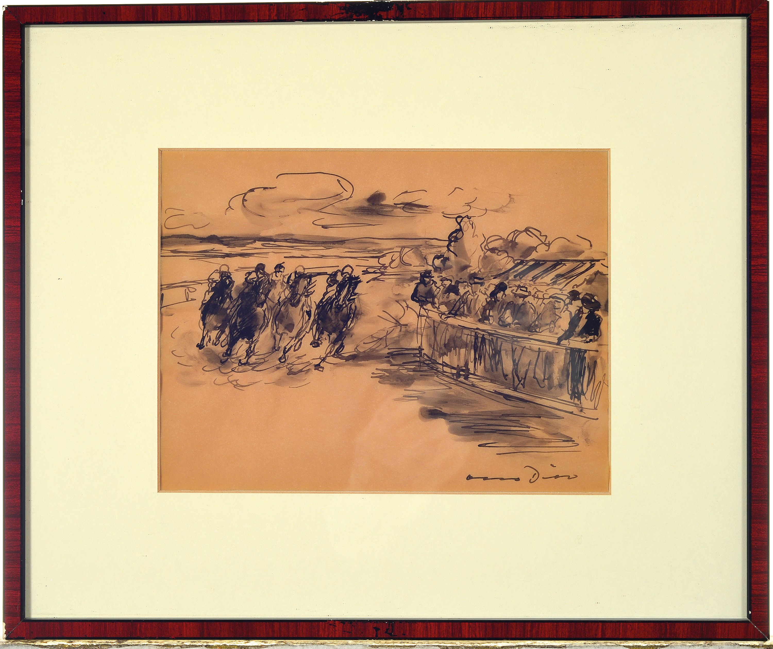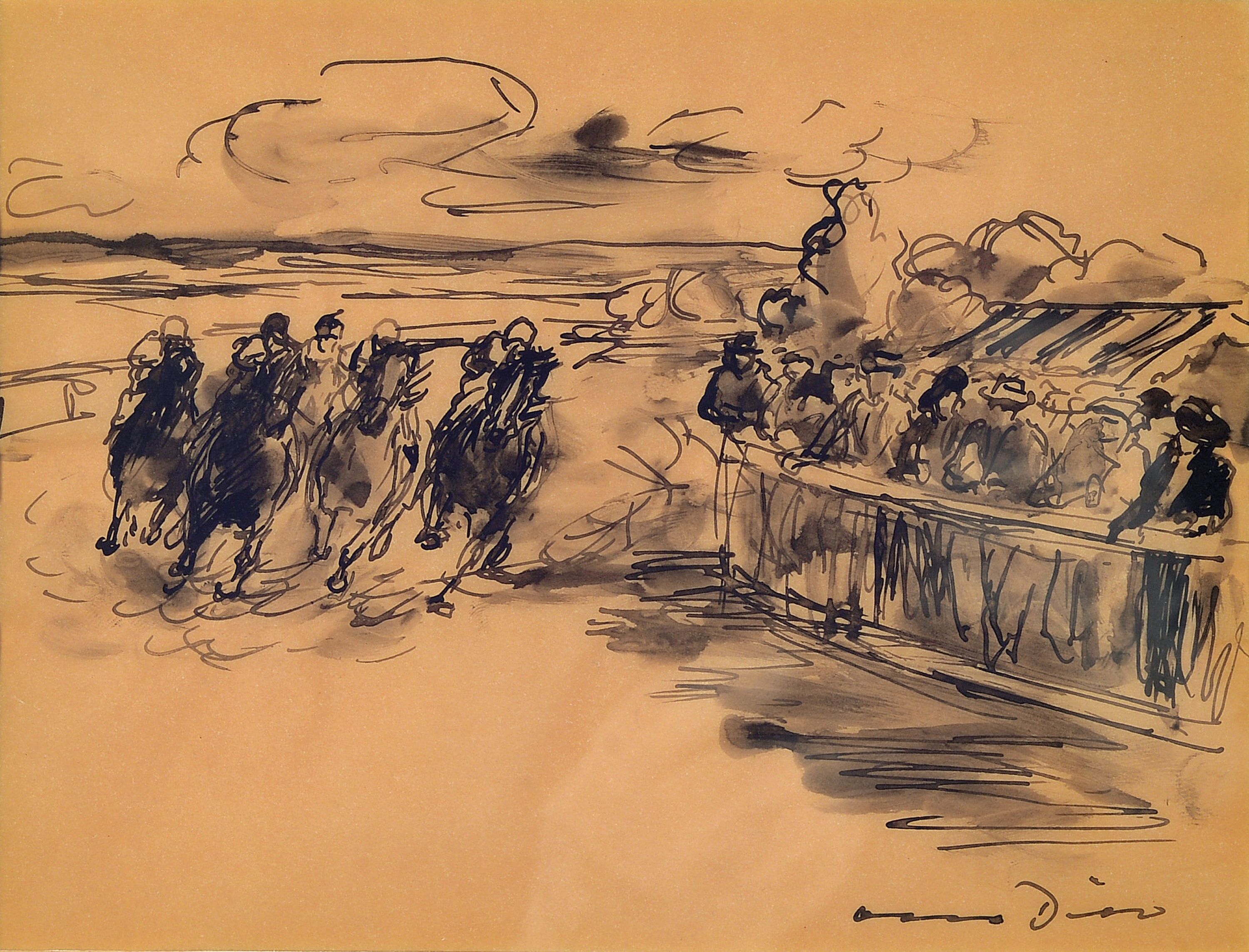 Otto Dill, 1884 Neustadt-1957 Bad Dürkheim, Tuschezeichnung, Pferderennen, in der