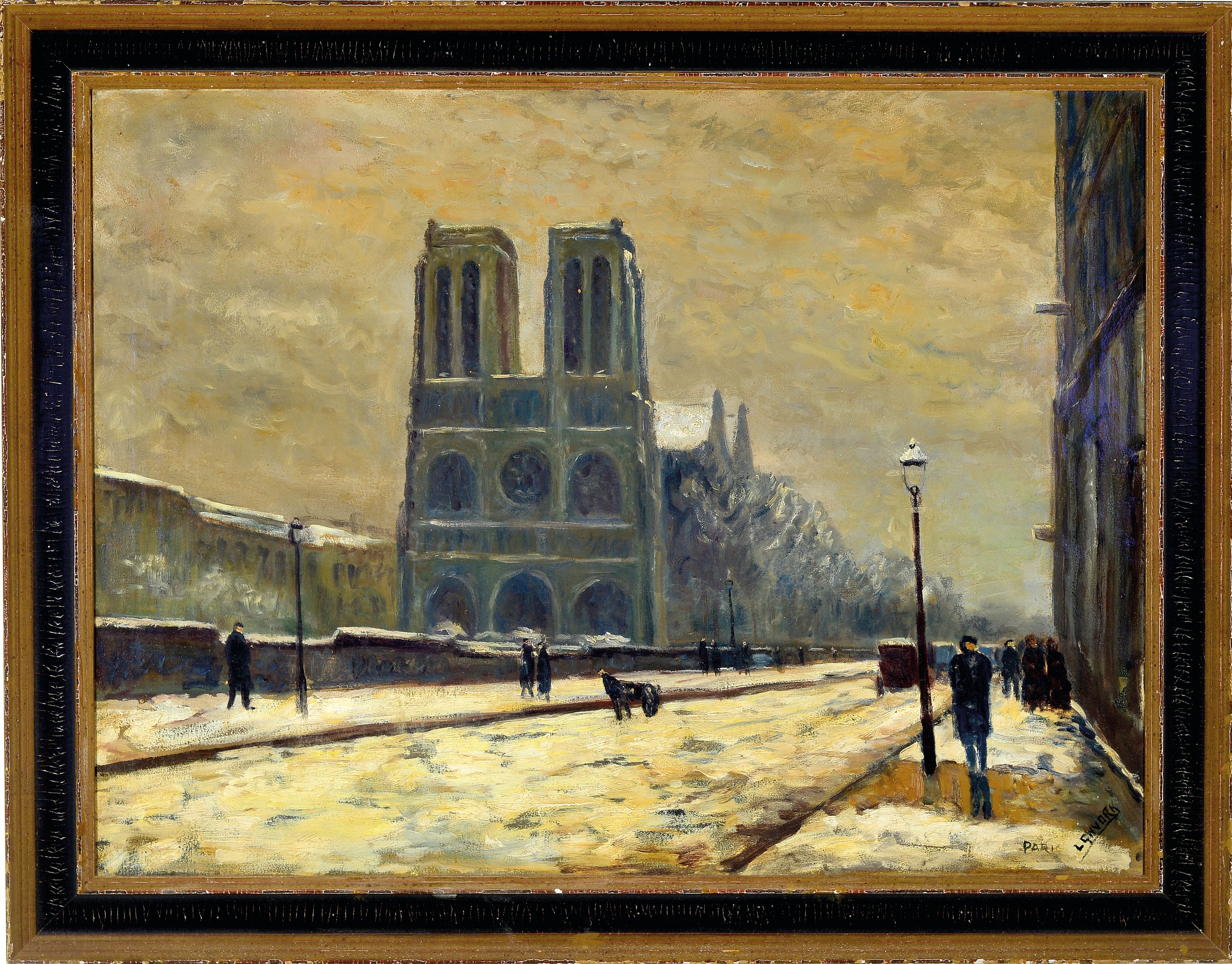 L. Gwvork, Künstler des 19./20.Jh., winterliche Ansicht aus Paris, Blick auf Notre Dame, rechts unten signiert, Öl/Lwd, 60x80 cm, rest., Rahmen 72x92 cm